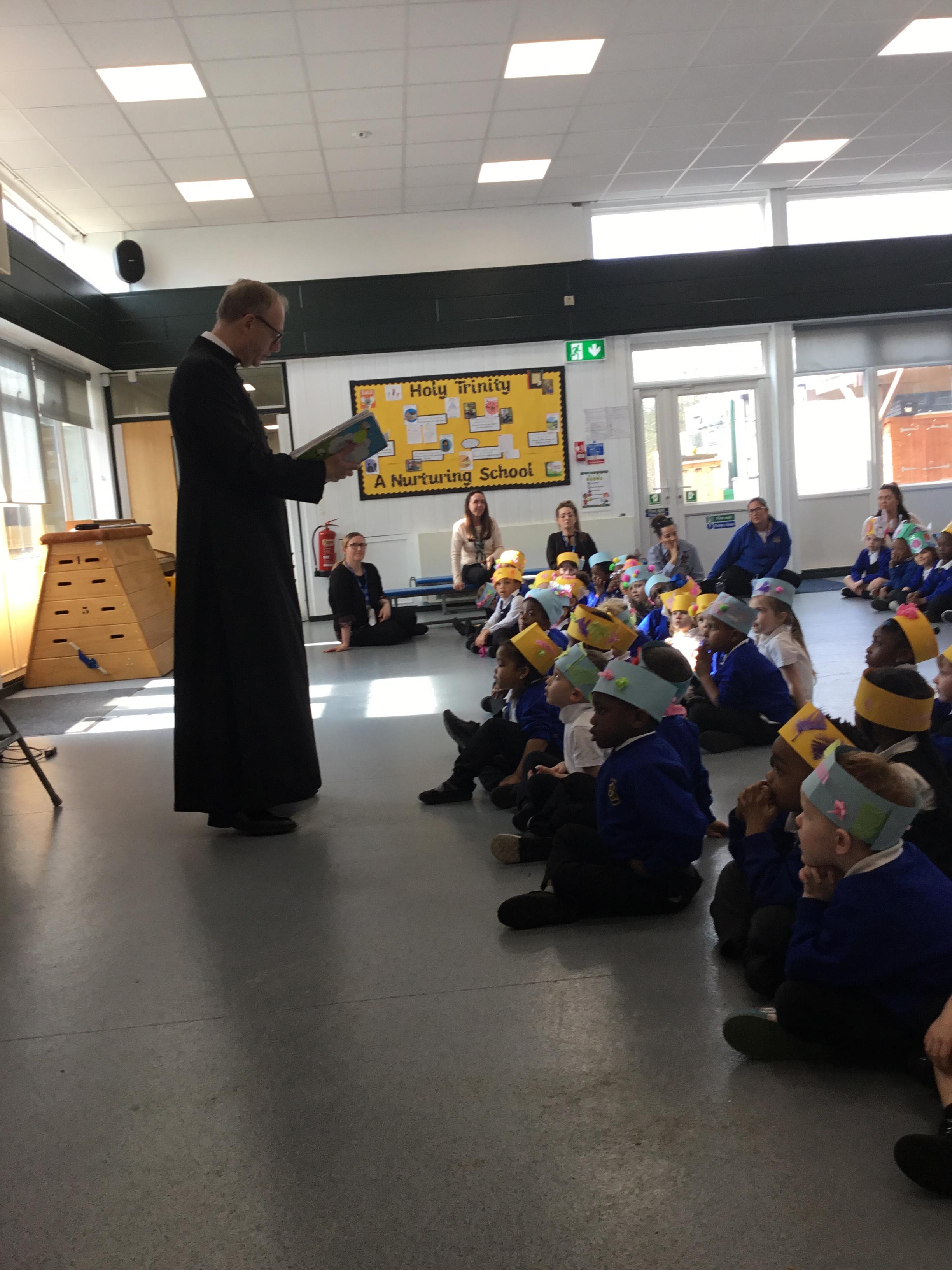This week we have been learning all about the Easter story. We had an assembly with Father Paul. He read us the Easter story and we talked about why we give and receive eggs at Easter time.  We showed Father Paul our wonderful Easter bonnets and sang him some of our favourite Easter songs.