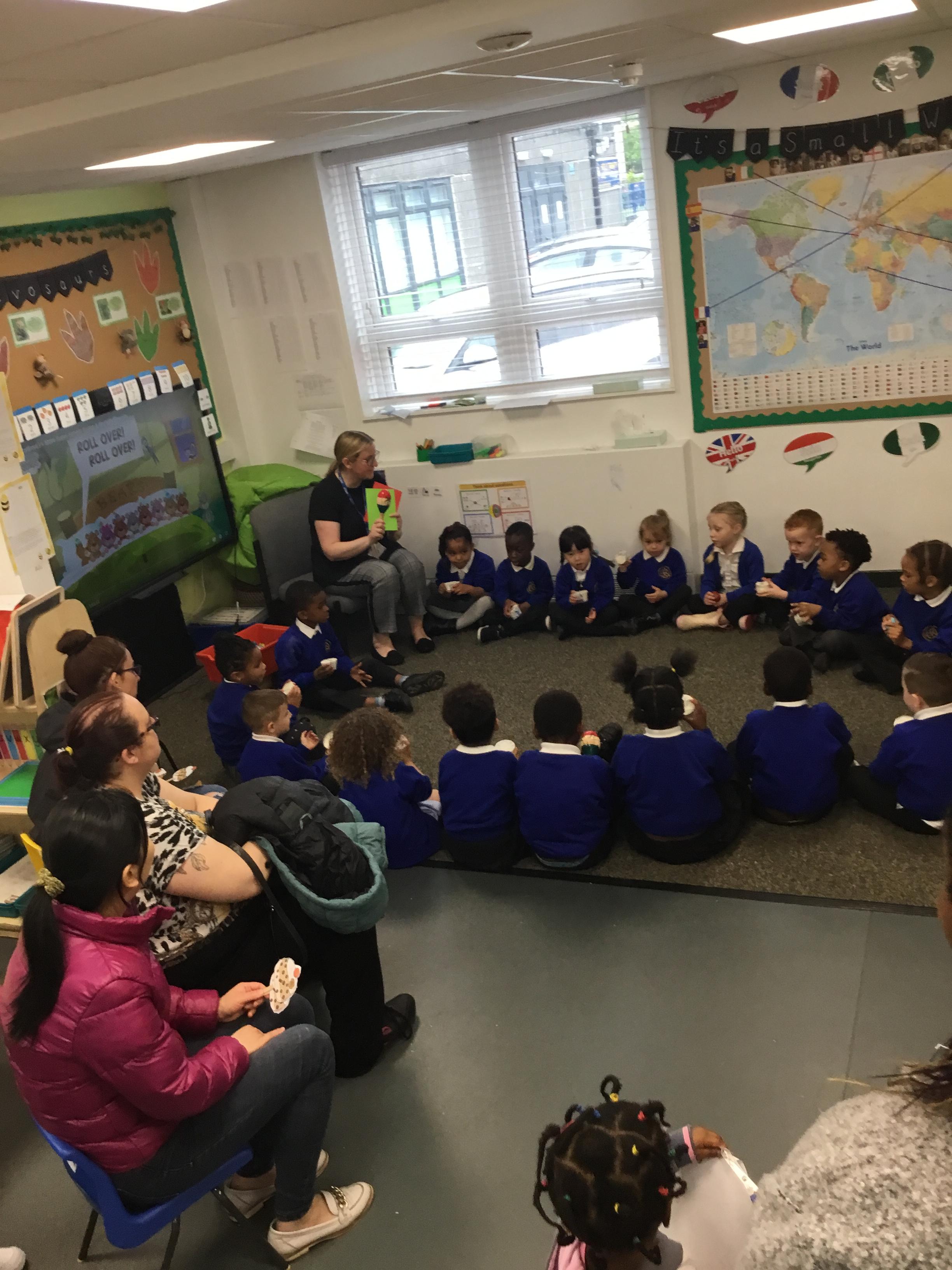 We has such a fun time at our Phase 1 phonics parents Stay and Play session. We made musical instruments, sang nursery rhymes and even had an African drumming session. Learning rhythm and rhyme are important steps in early reading. Please continue to read your child’s rhyming book with them each week. We change the books each Friday. Thank you to all the parents that attended our workshops.