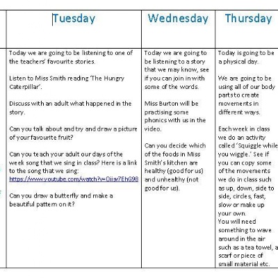 Click on the 'Video Resource' link below to listen to Miss Smith reading 'The Hungry Caterpillar'.