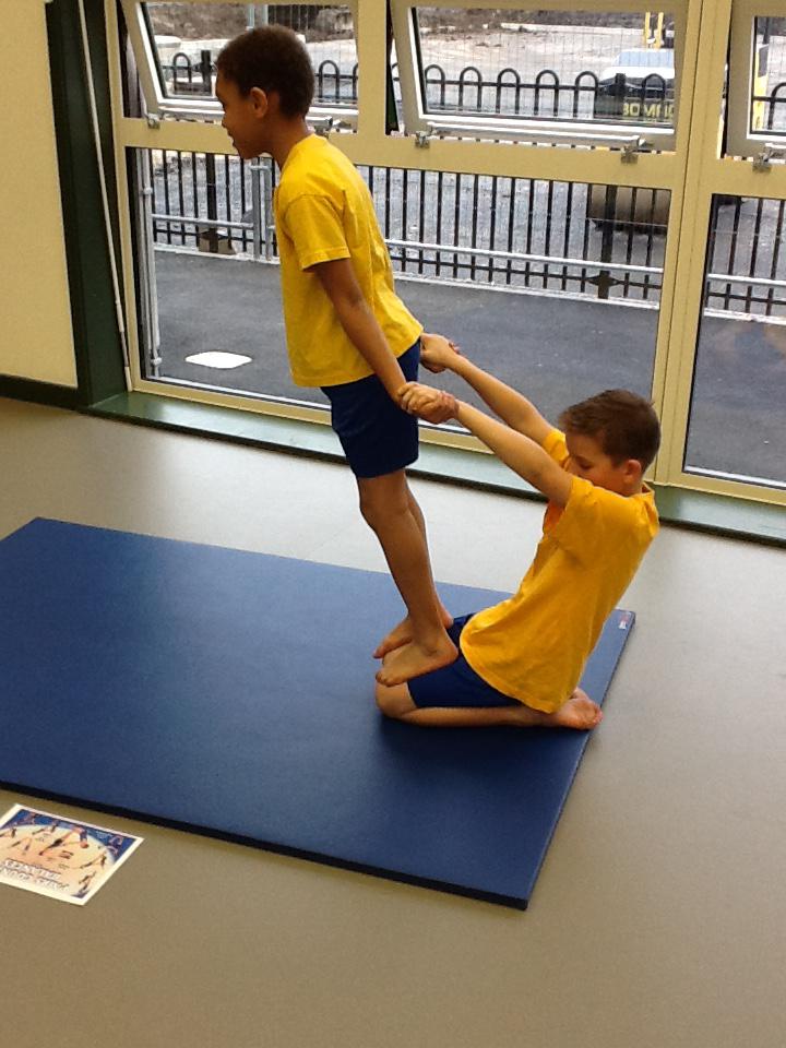 Year 5 have been doing gymnastics in PE this half term. They have been working on sequences containing balances and different types of travelling. Here is some of their work on partner and trio counter balances.