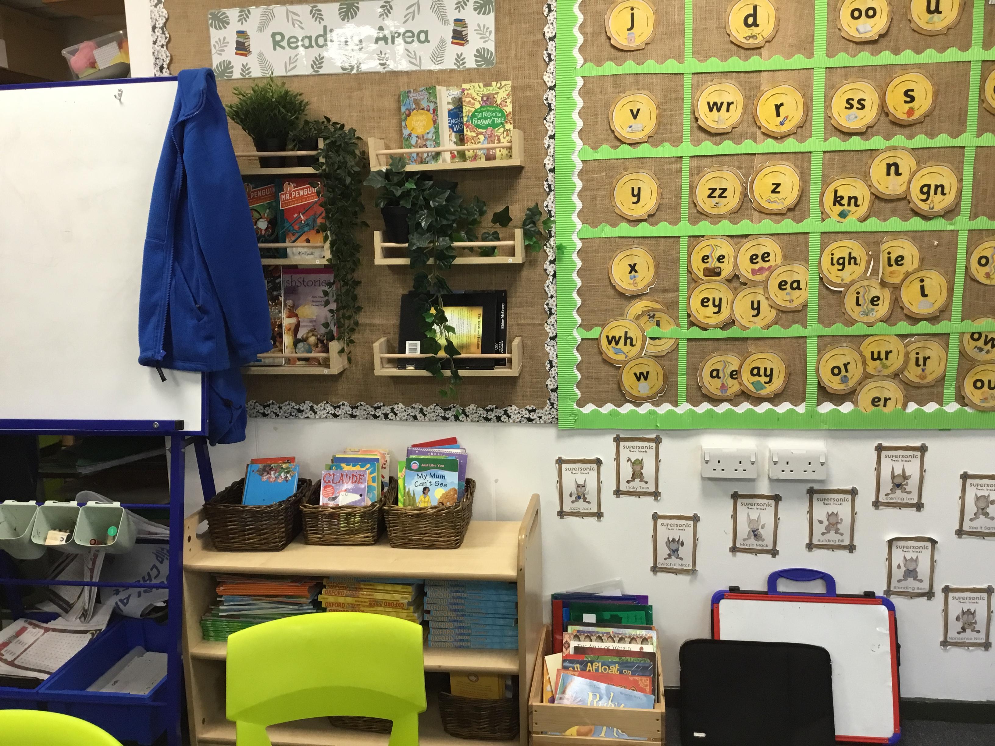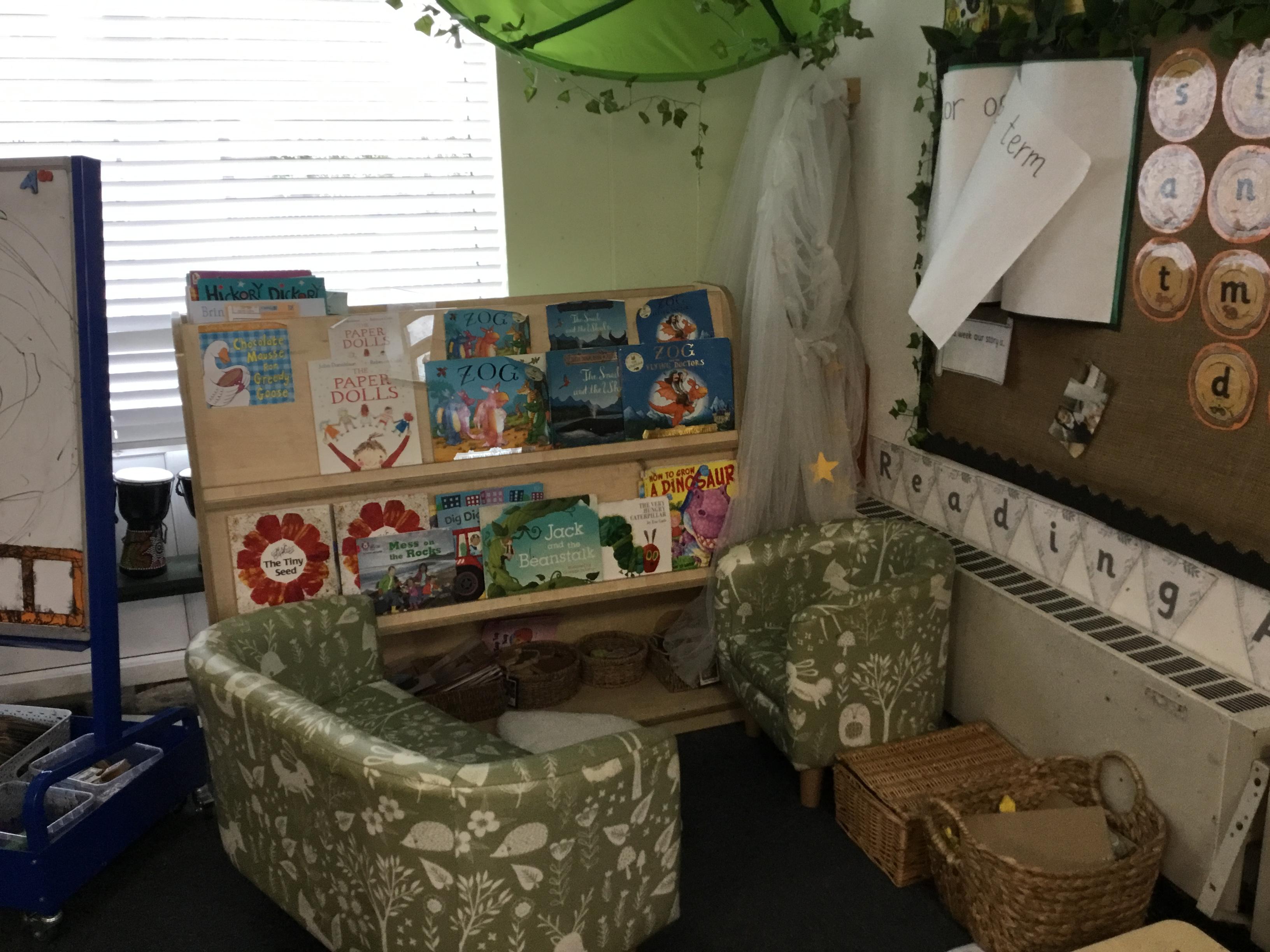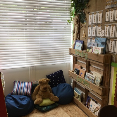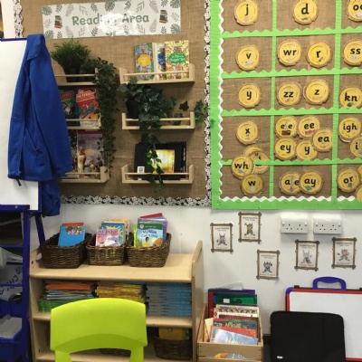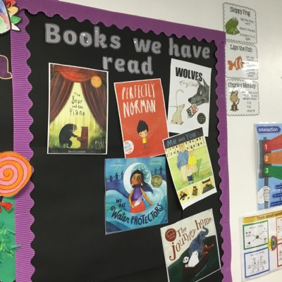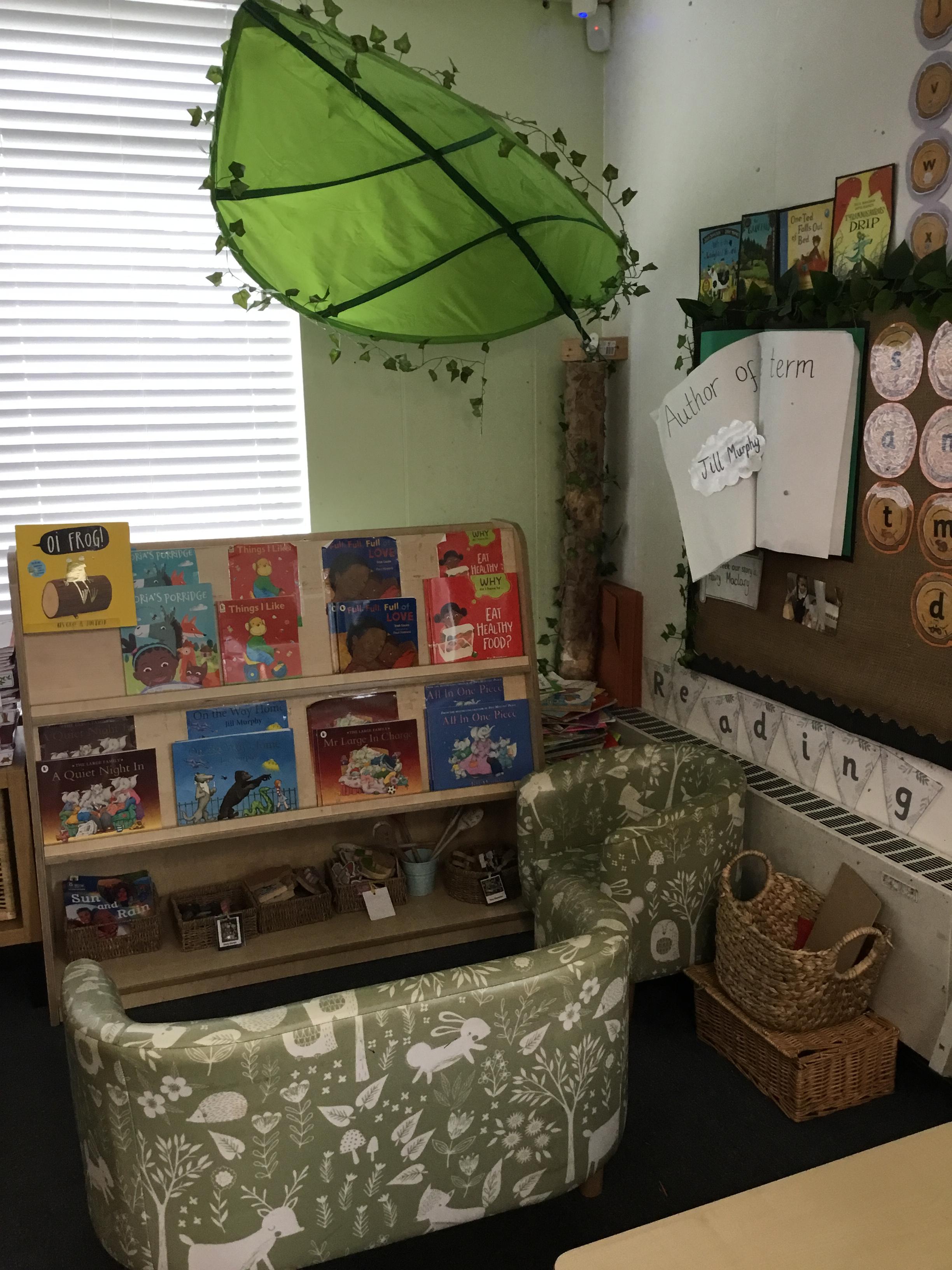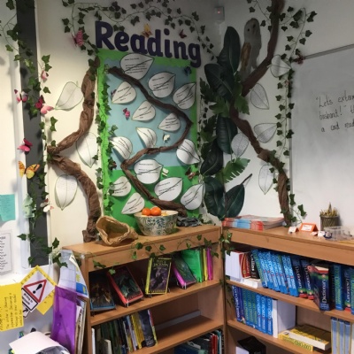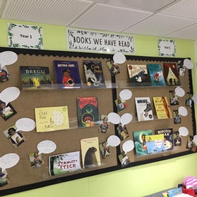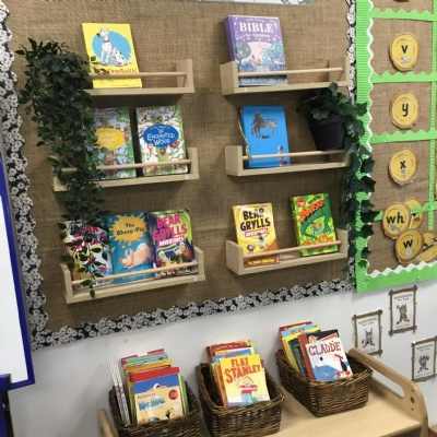 Reading for pleasure is encouraged across school. Whole class books are read by adults and each class has an area for reading. There are regular opportunities for books to be promoted either by themed days (such as World Book Day) or by visiting authors and library visits.