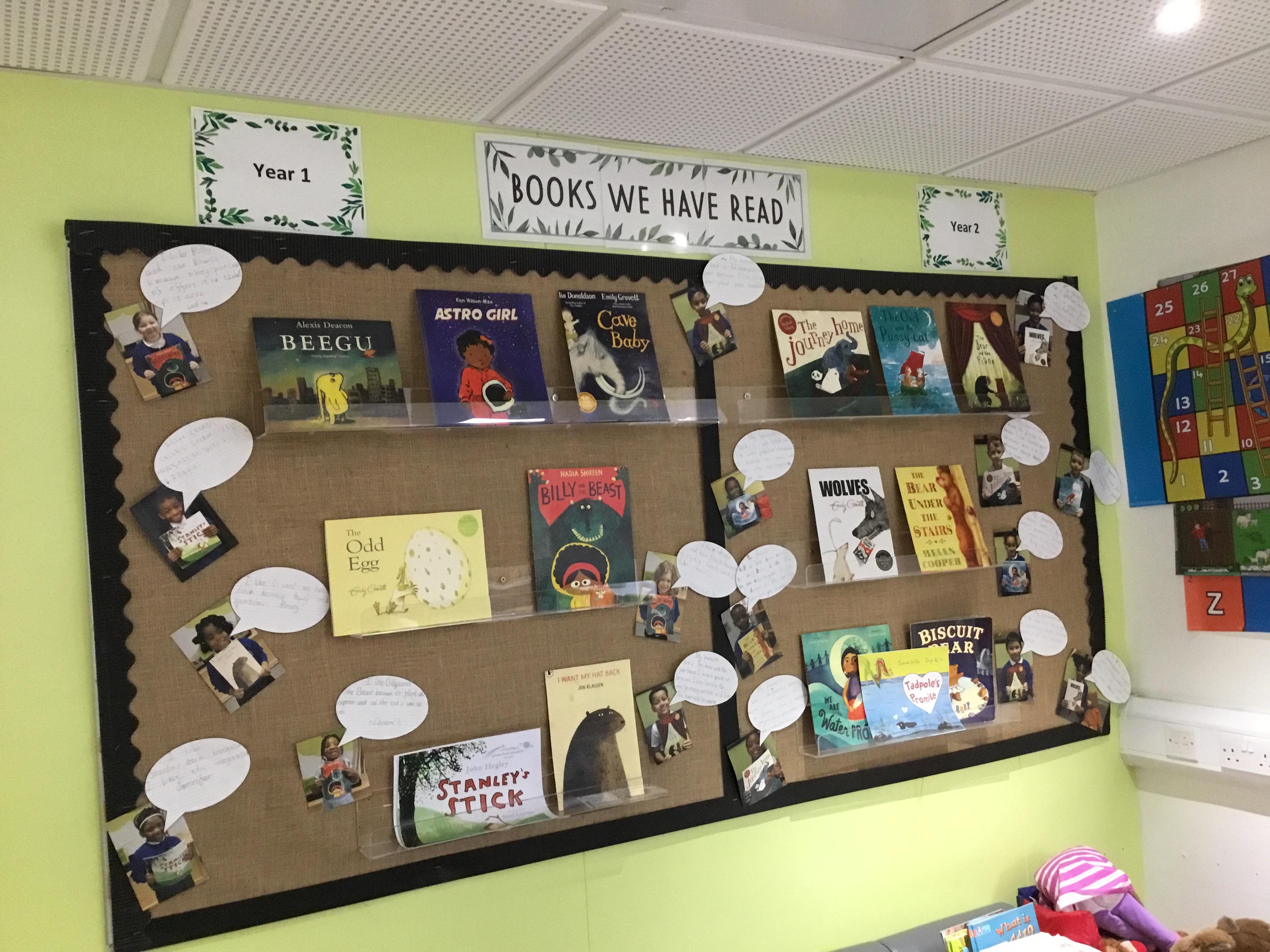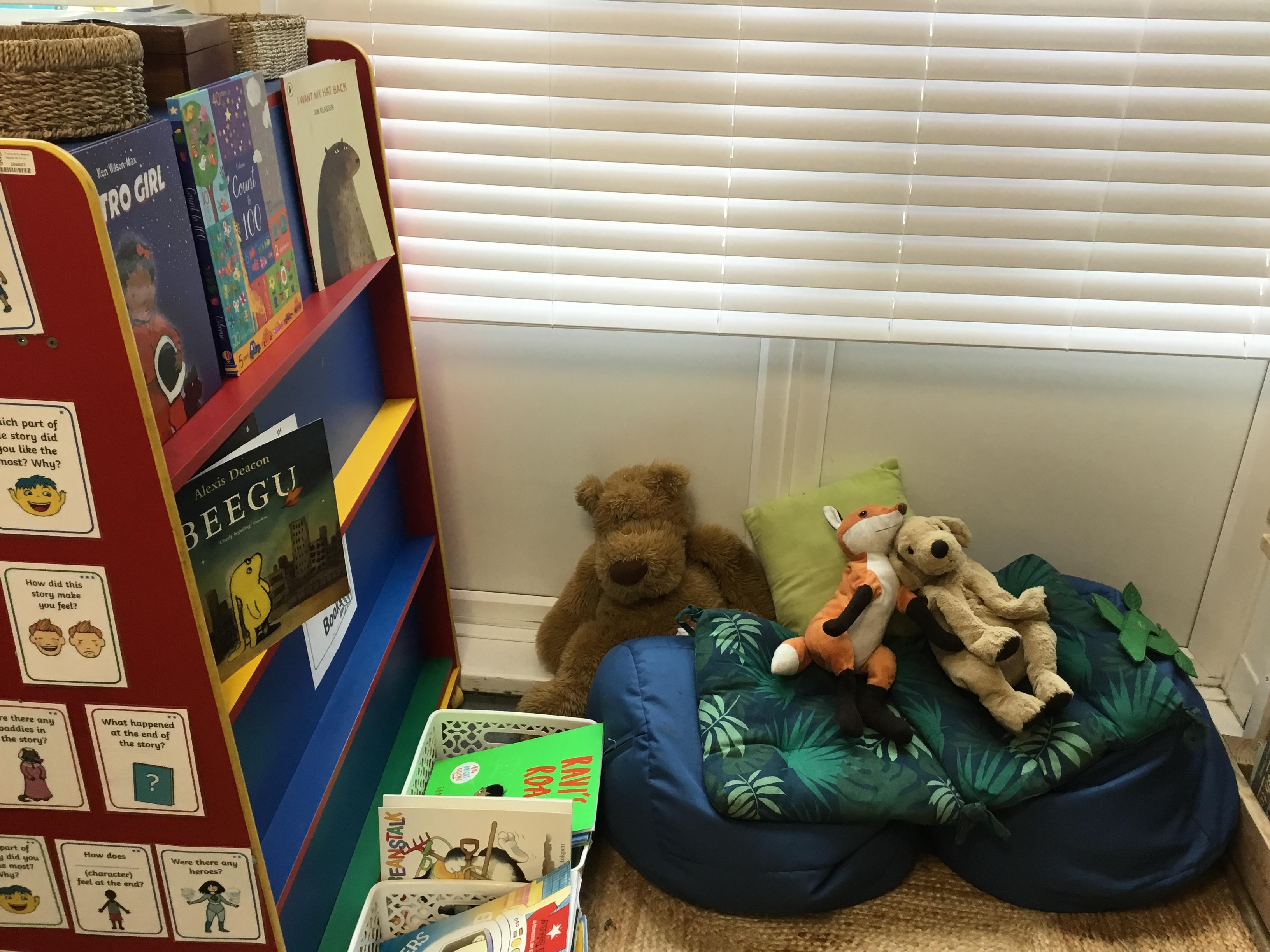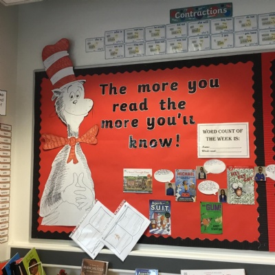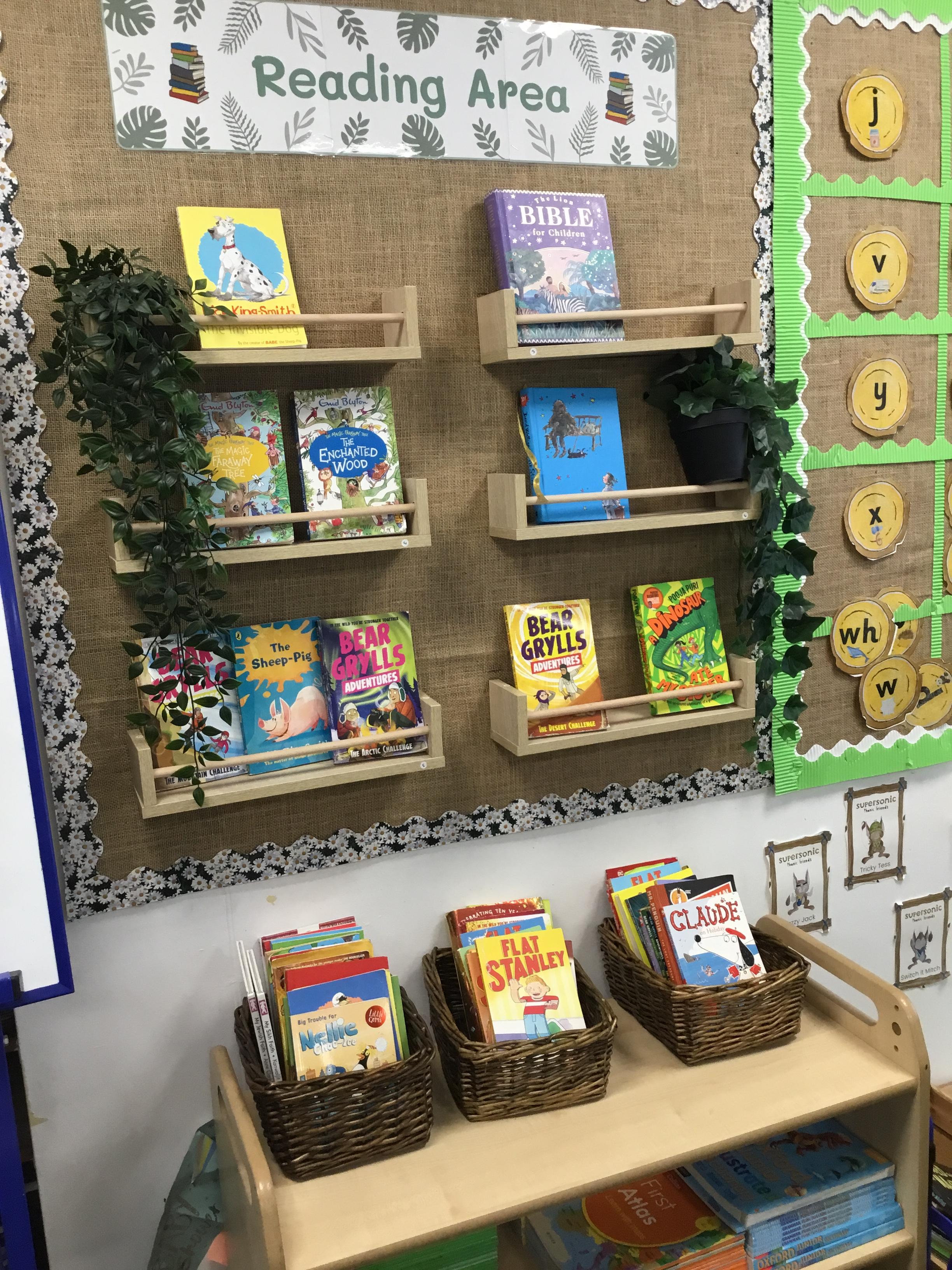 Reading for pleasure is encouraged across school. Whole class books are read by adults and each class has an area for reading. There are regular opportunities for books to be promoted either by themed days (such as World Book Day) or by visiting authors and library visits.