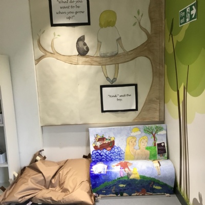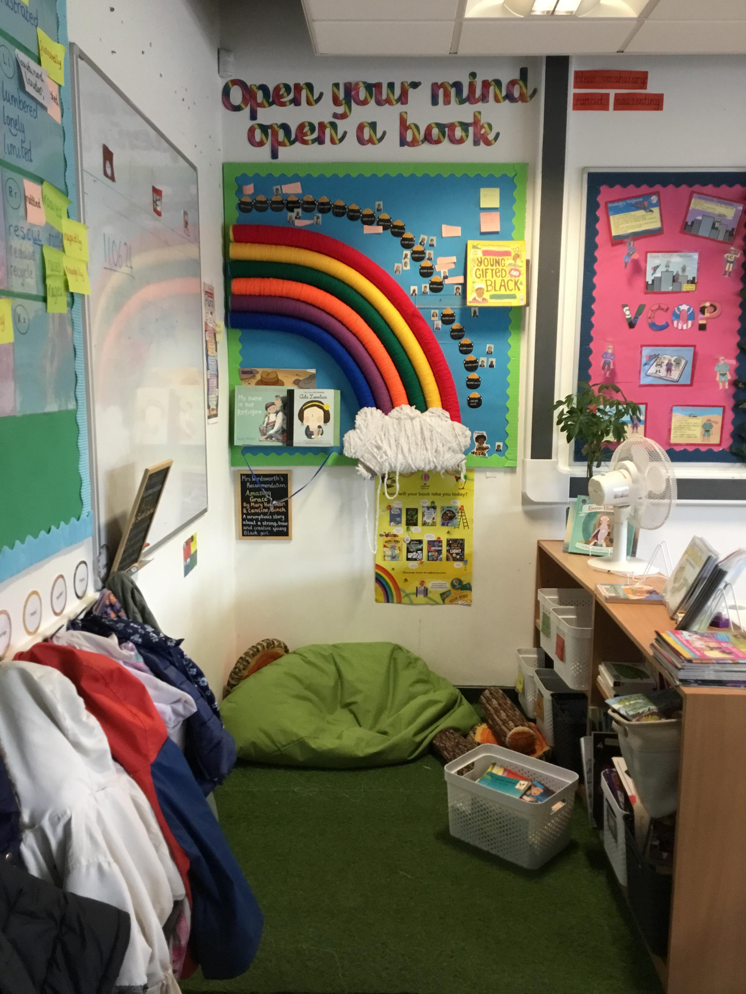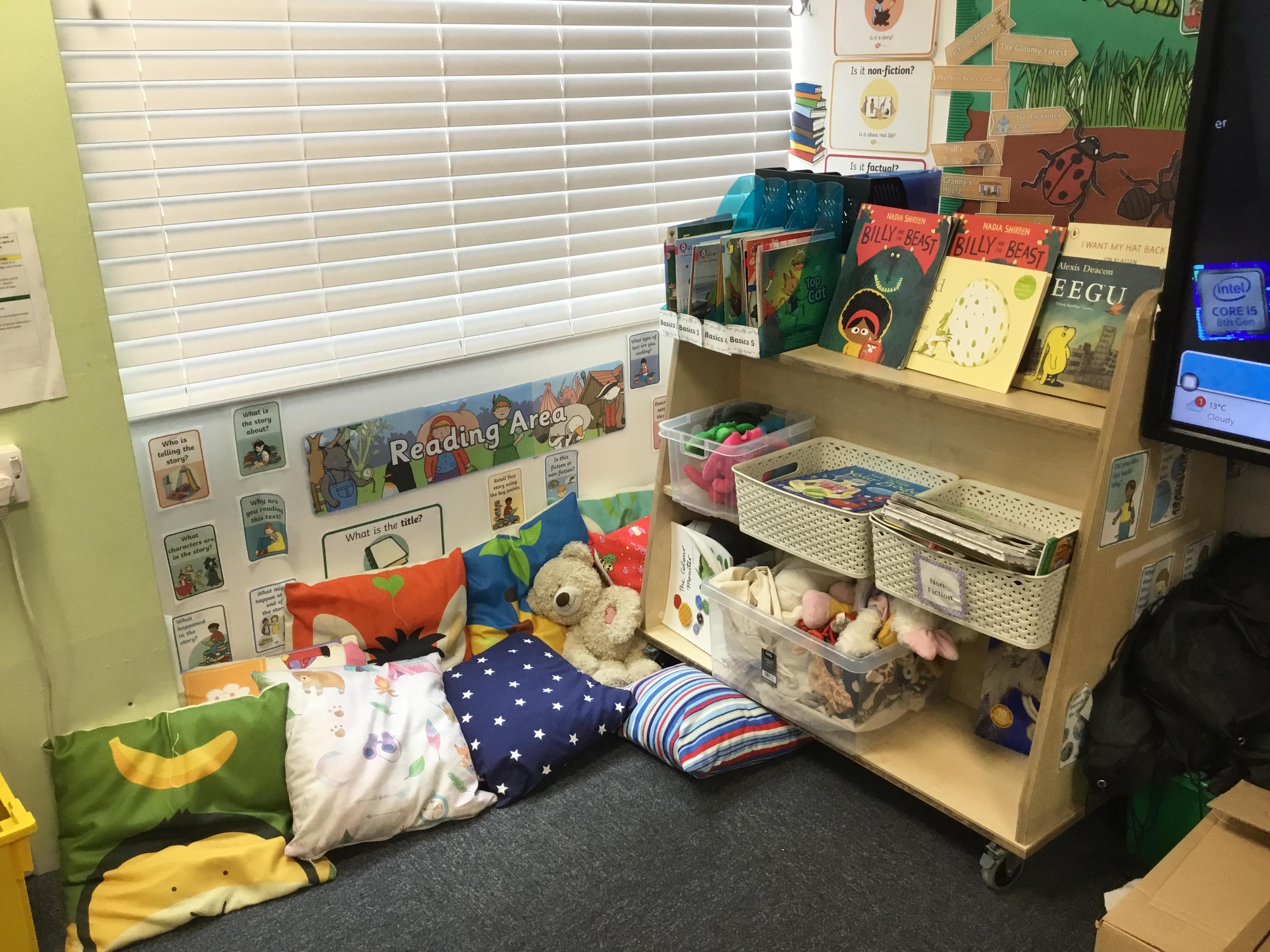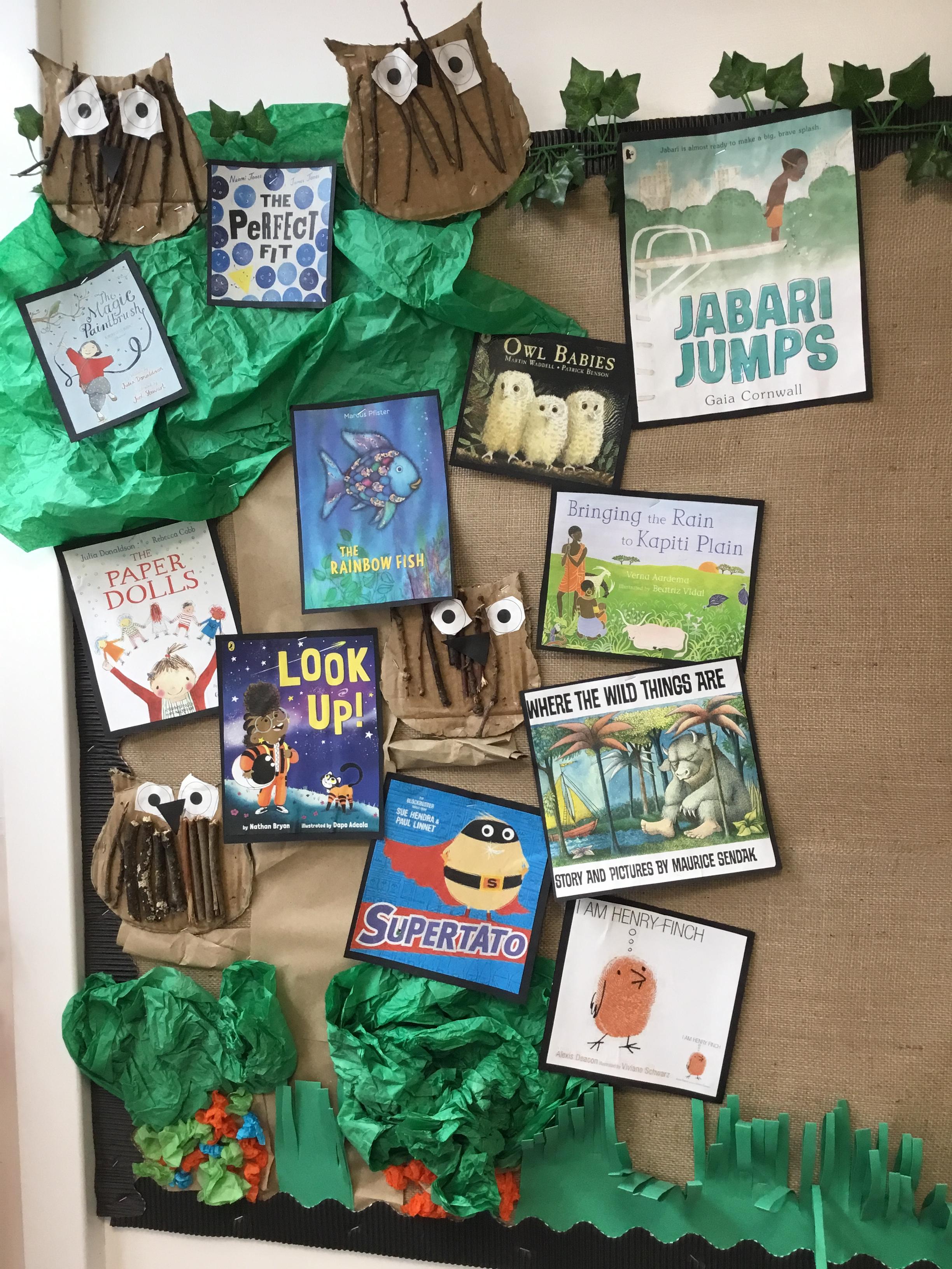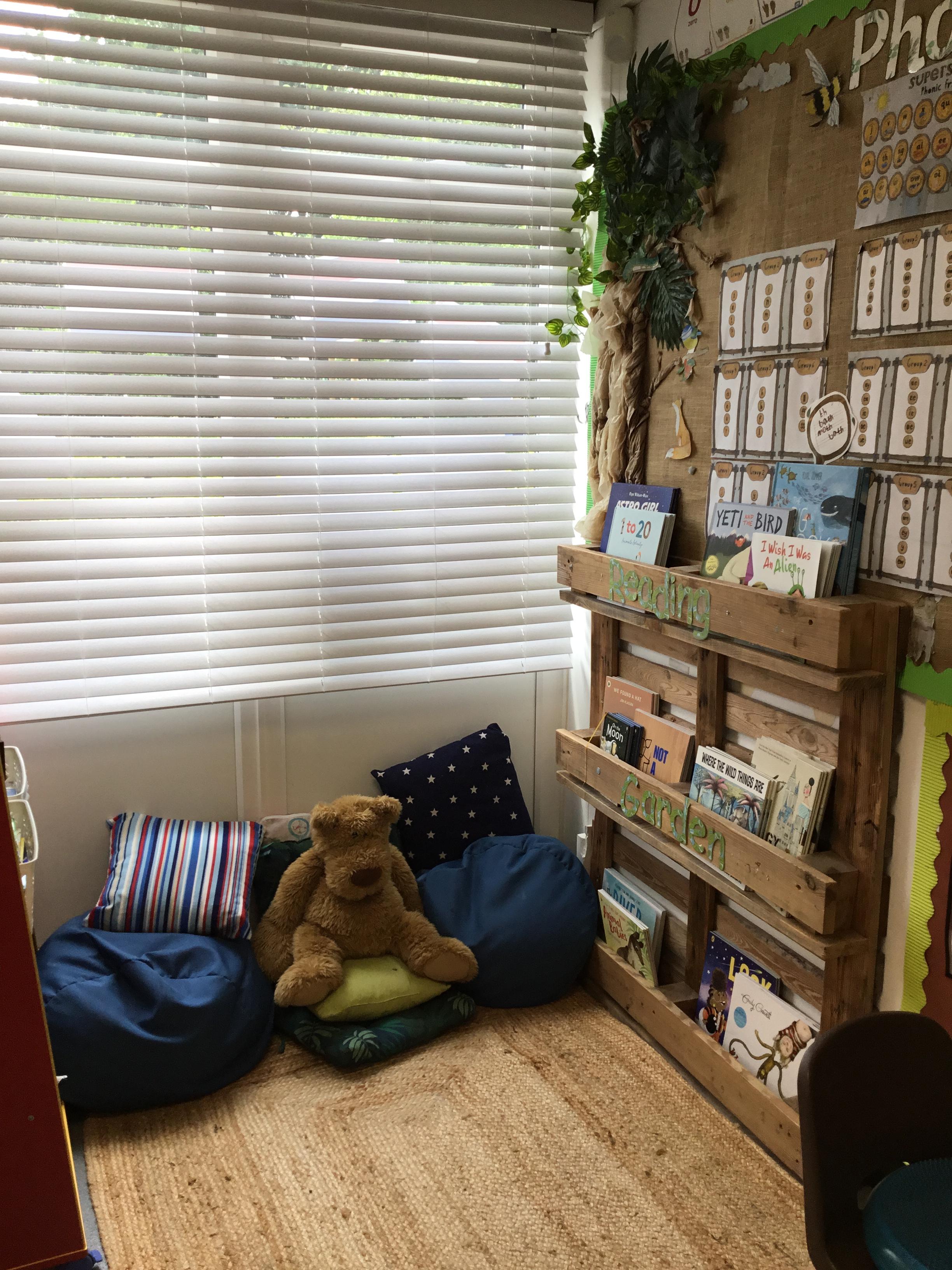 Reading for pleasure is encouraged across school. Whole class books are read by adults and each class has an area for reading. There are regular opportunities for books to be promoted either by themed days (such as World Book Day) or by visiting authors and library visits.