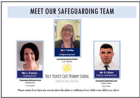 Holy Trinity CE Primary School aims to create and maintain a safe learning environment where all children and adults feel safe, secure and valued and know they will be listened to and taken seriously.