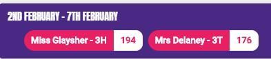 Well done to 3T for winning the last battle before half term. I have set another battle for this week! Come on 3H! It was a close battle last time!