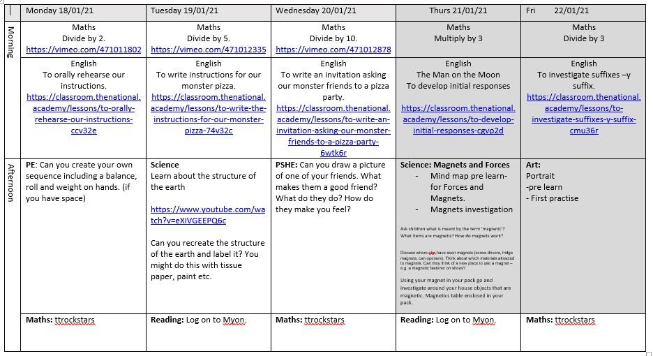You need to do this alongside a little bit of your task pack (every day) that has been sent home to you. A bit like how at school we will do English and Maths in the morning and then Science or Geography in the afternoon. You will complete the English and Maths set here in the morning and your task pack in the afternoon (but the bonus of being at home is you can do it in any order you like!!)