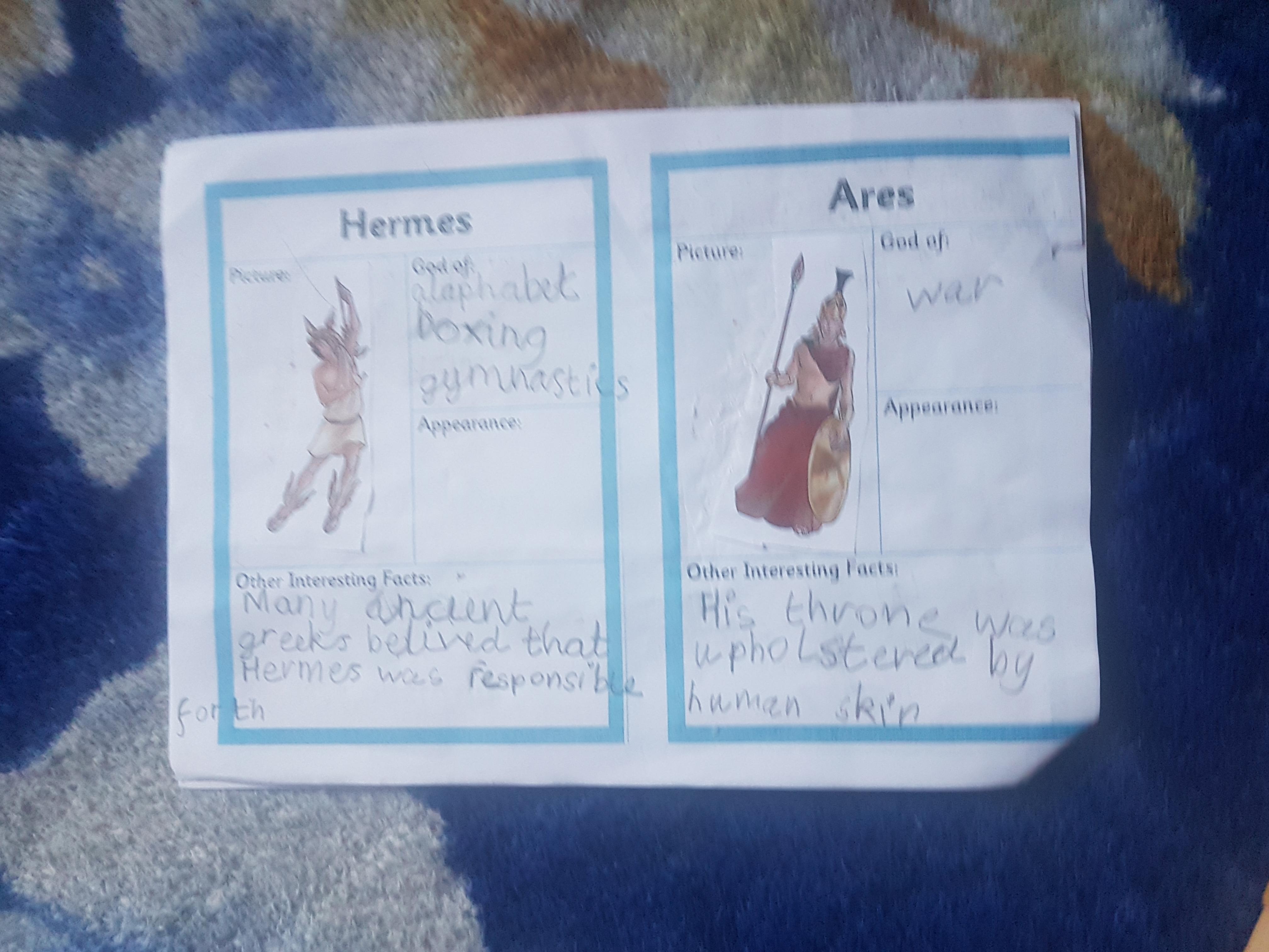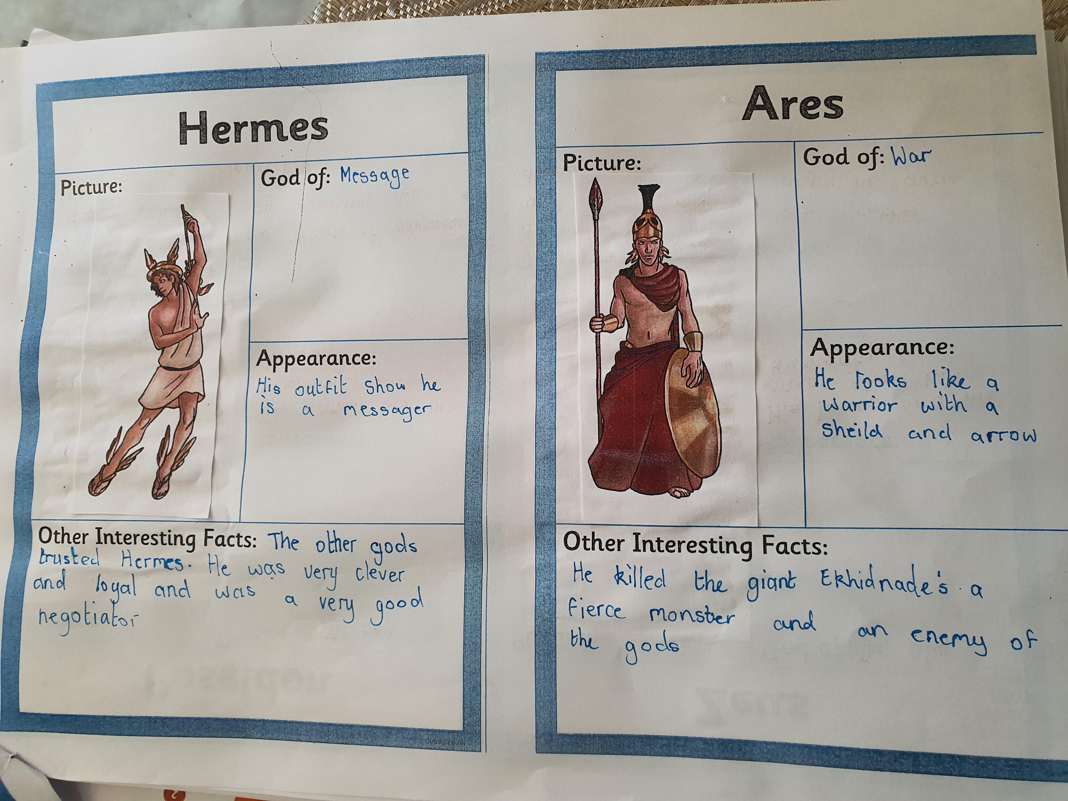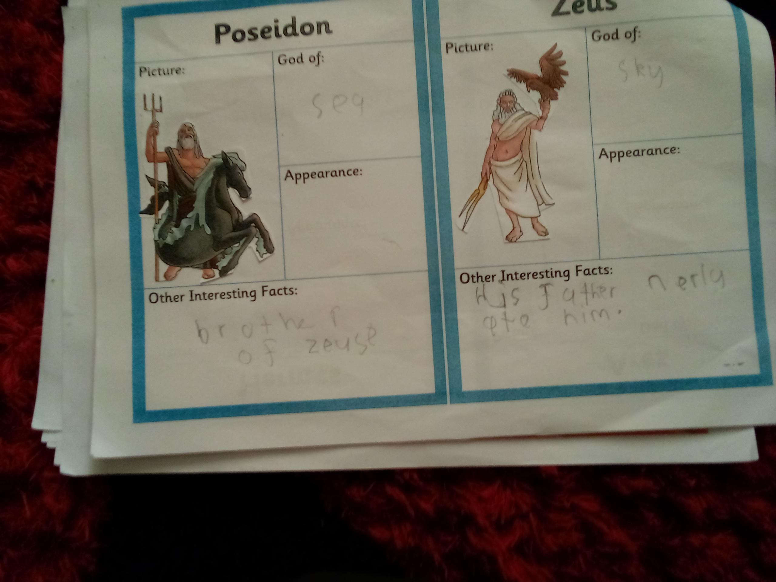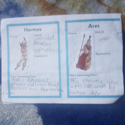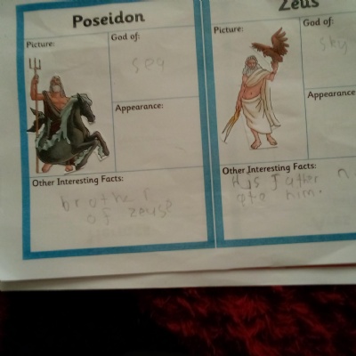 2) Then you need to read through the information on your sheets and then fill in the information for each of the Ancient Greek Gods and Goddesses. Also add the correct picture.