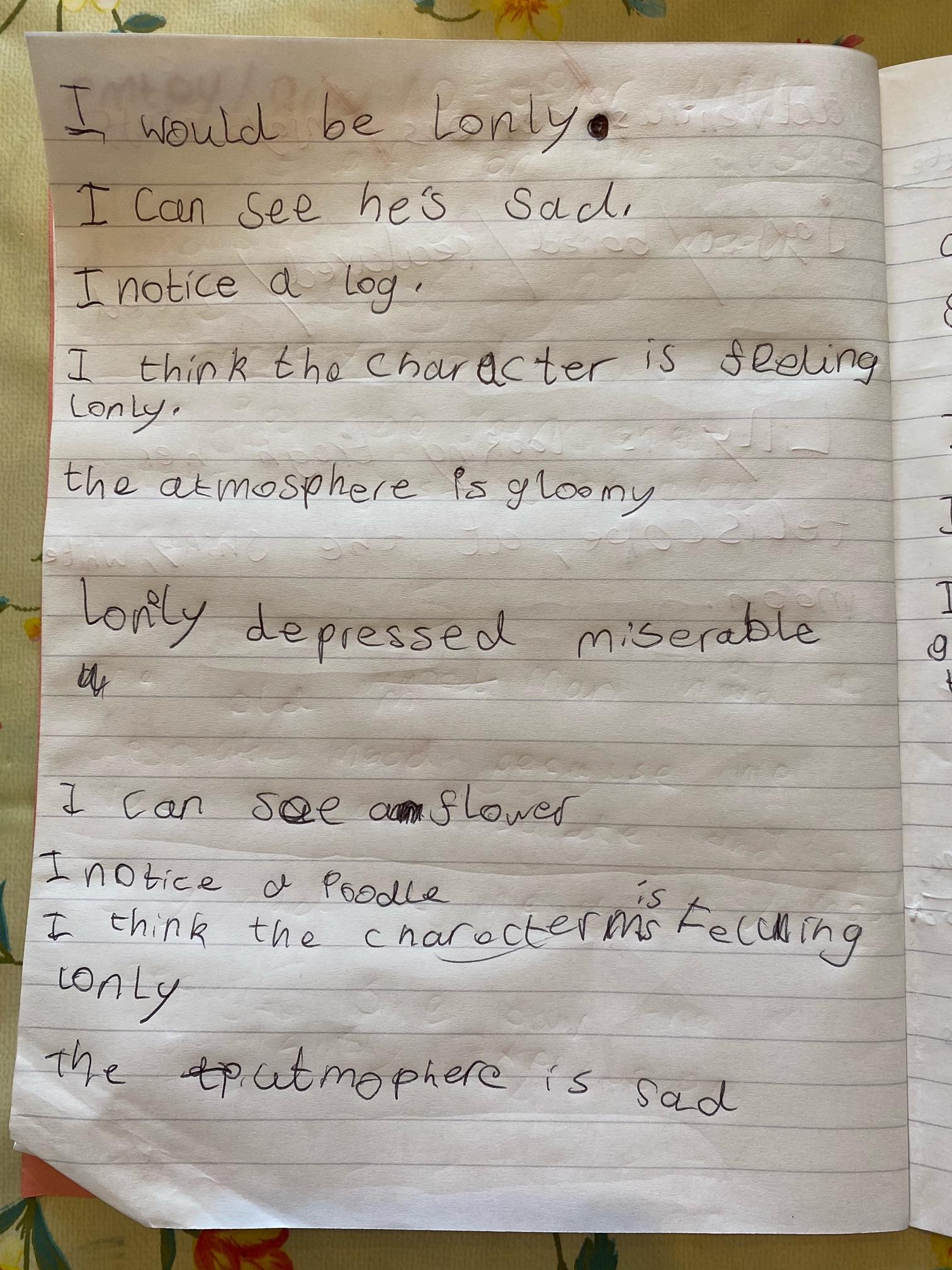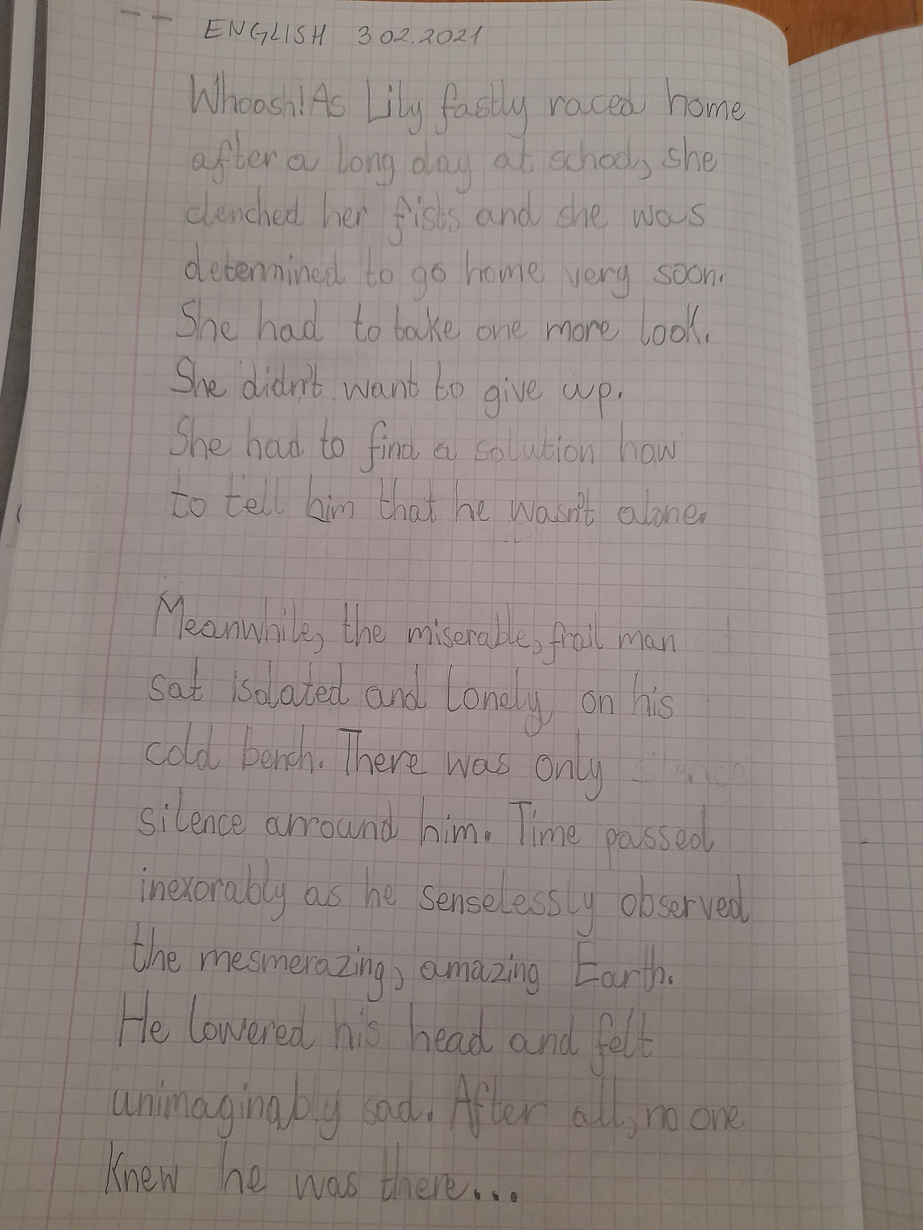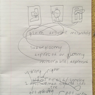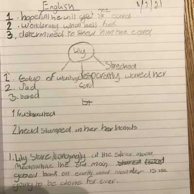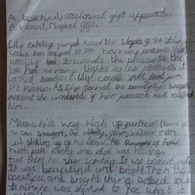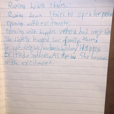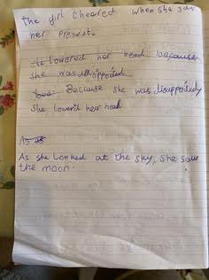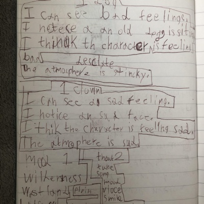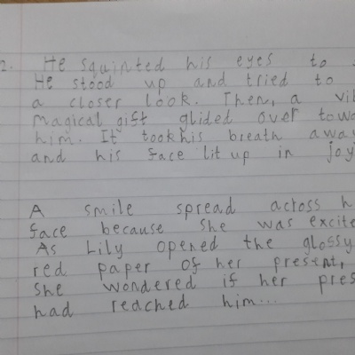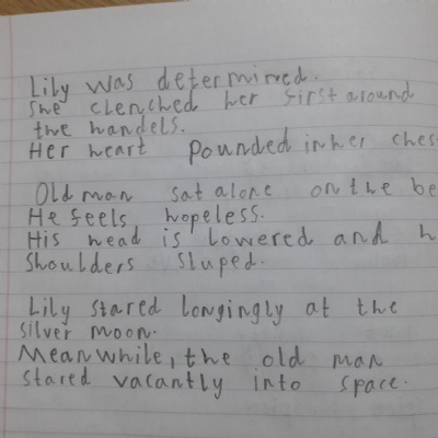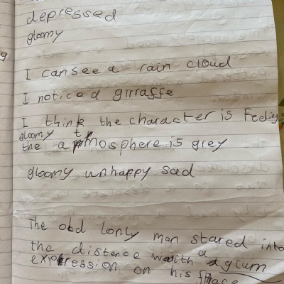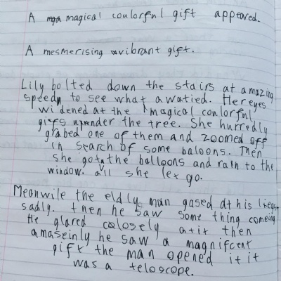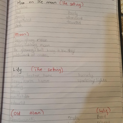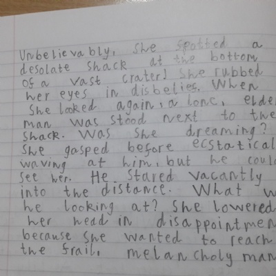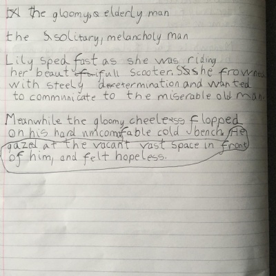 Think about what you put on your story map and what adjectives and adverbs you had chosen. Here is Miss Glaysher's.