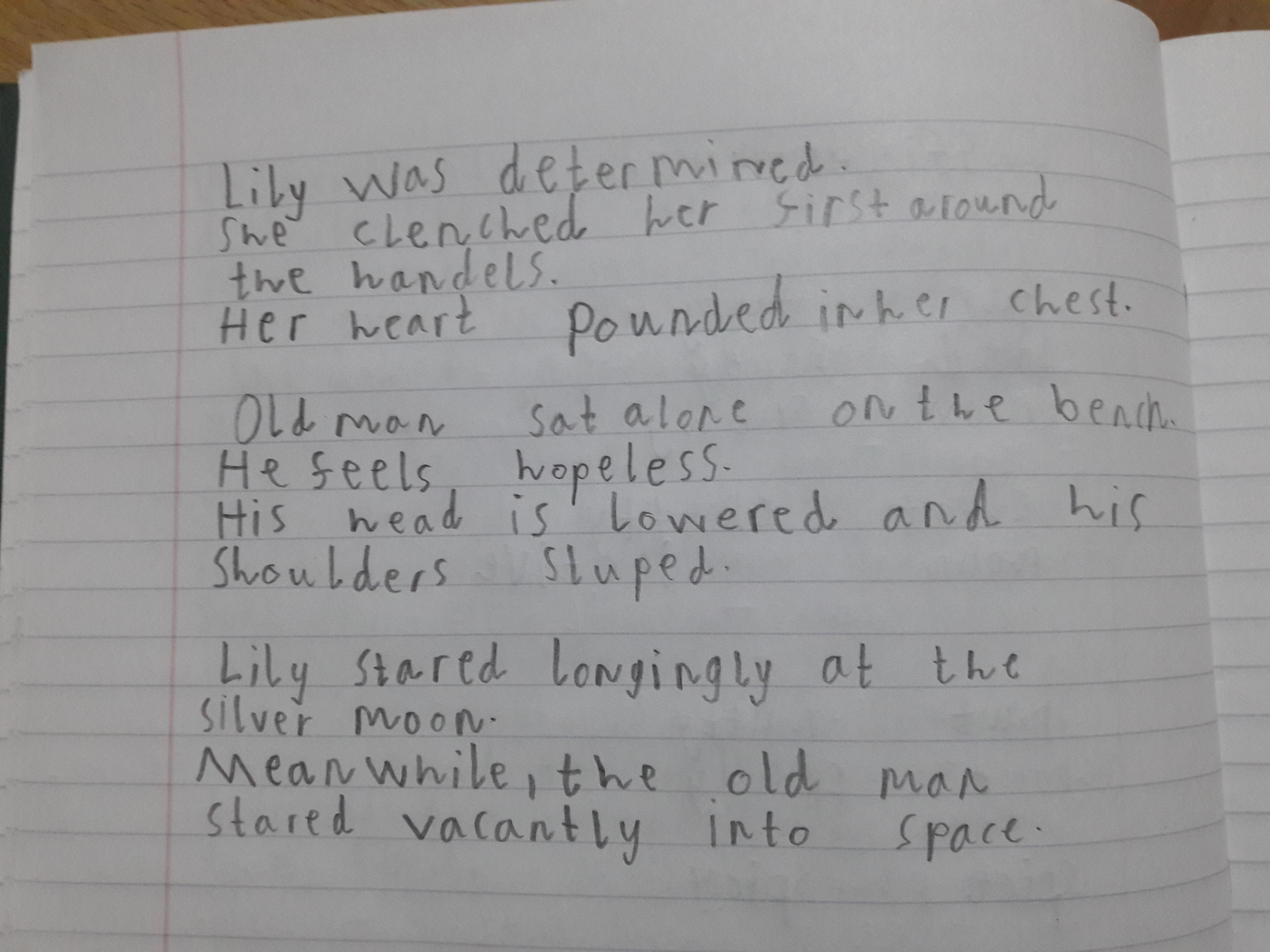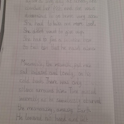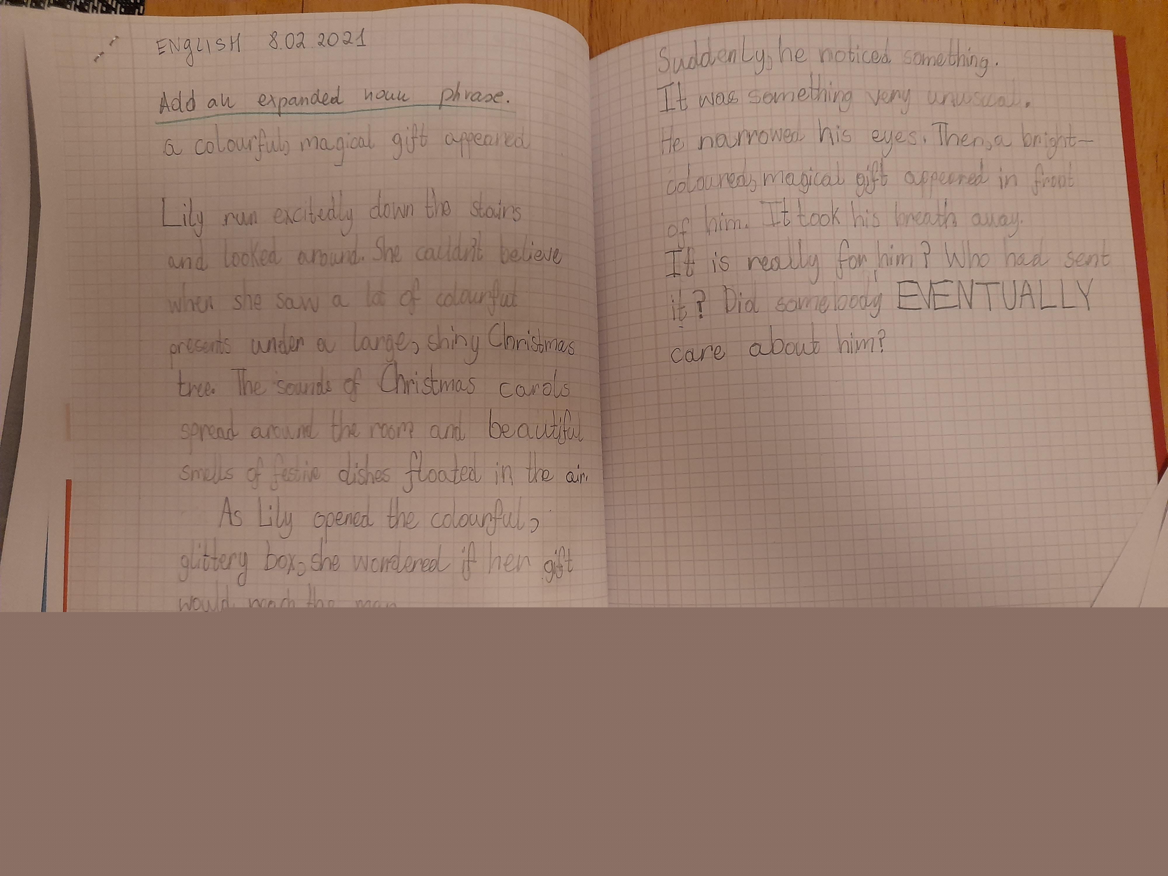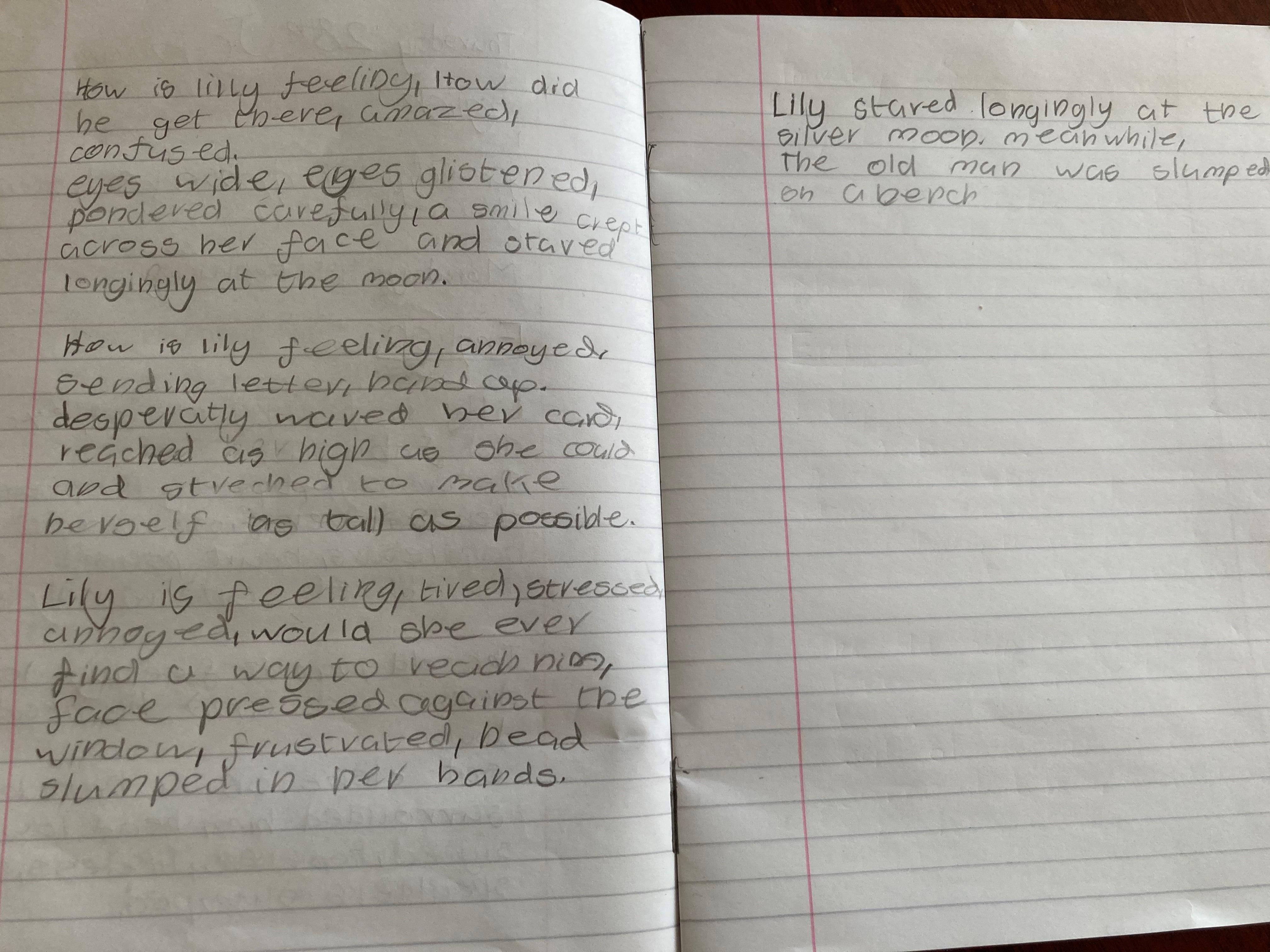 Think about what you put on your story map and what adjectives and adverbs you had chosen. Here is Miss Glaysher's.