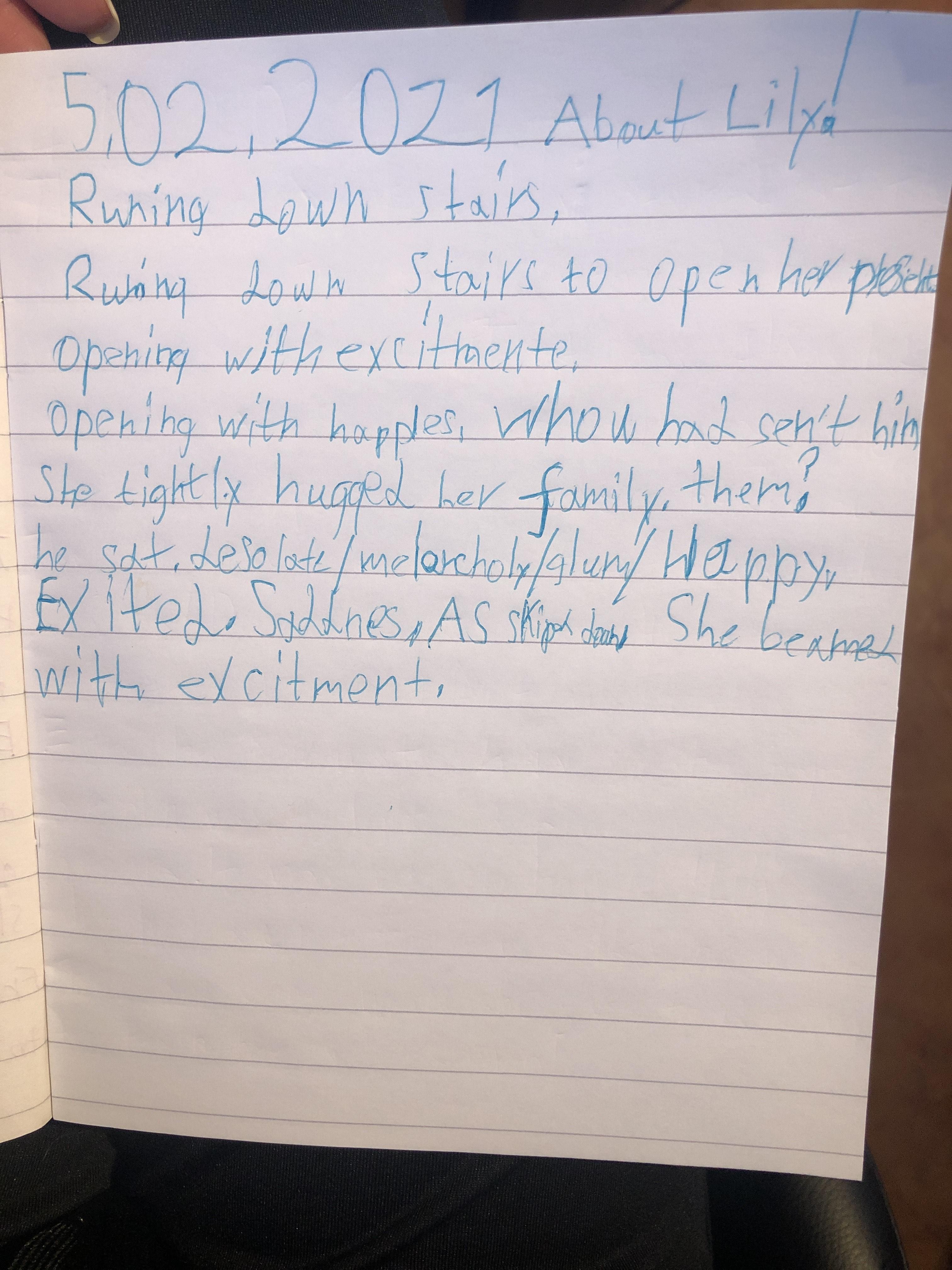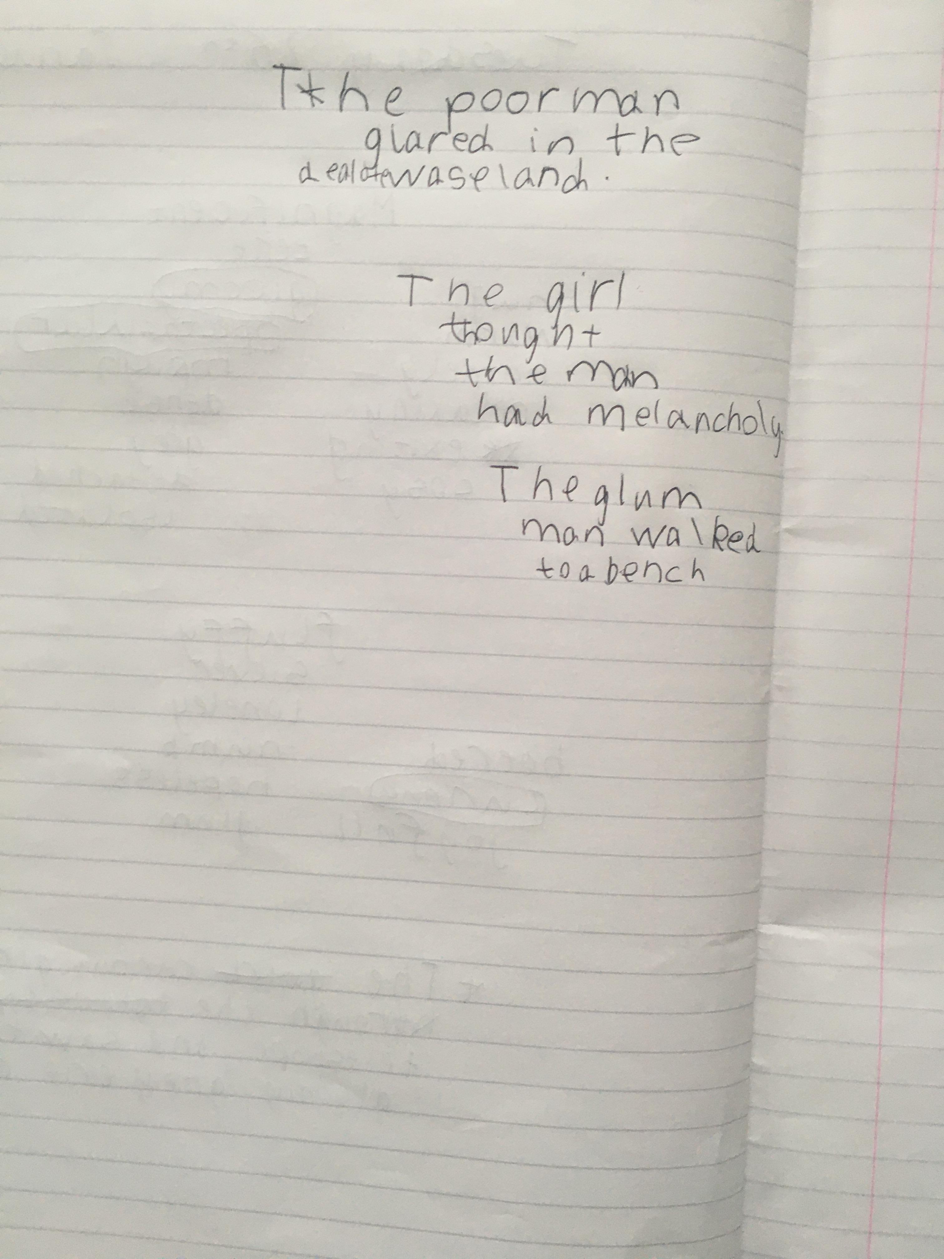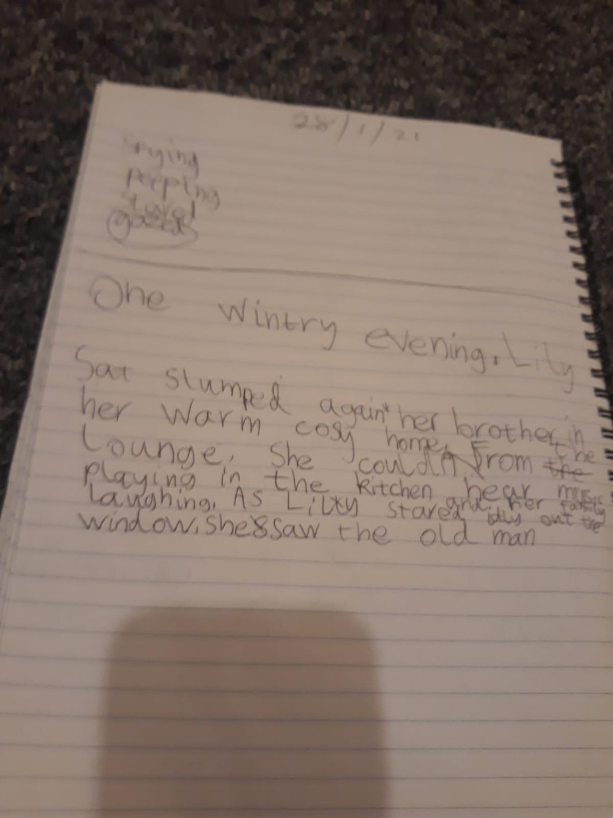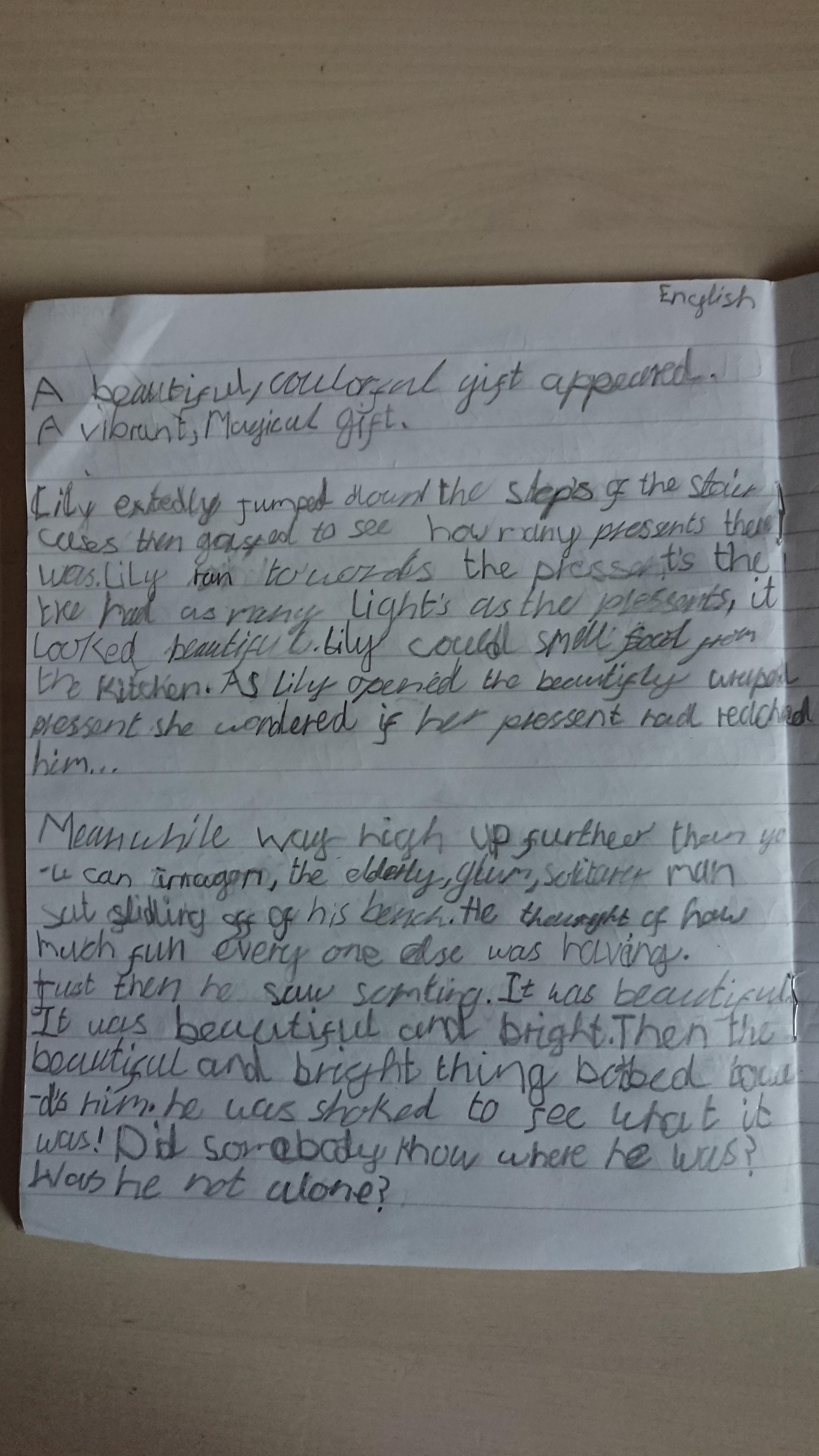 Think about what you put on your story map and what adjectives and adverbs you had chosen. Here is Miss Glaysher's.
