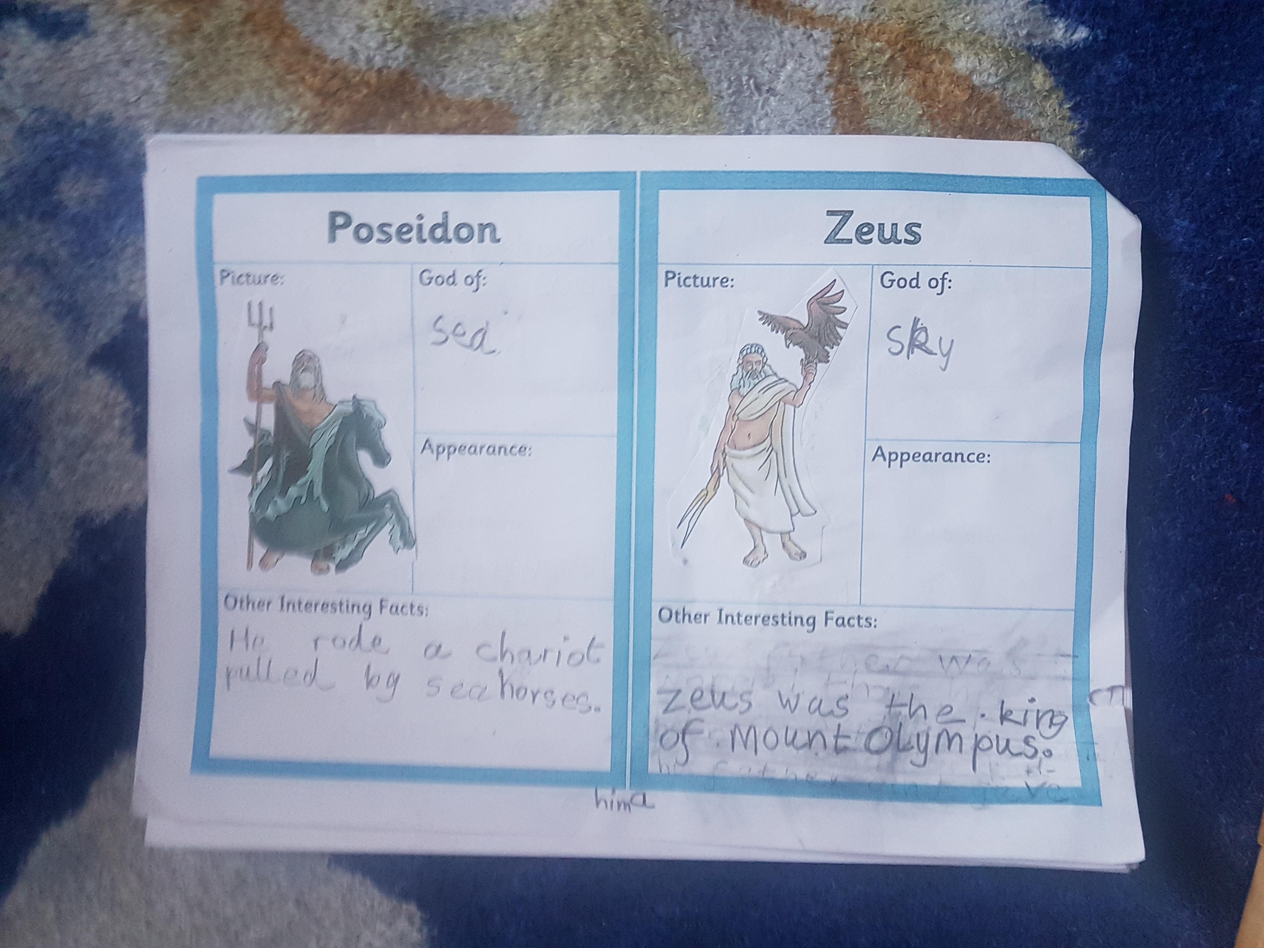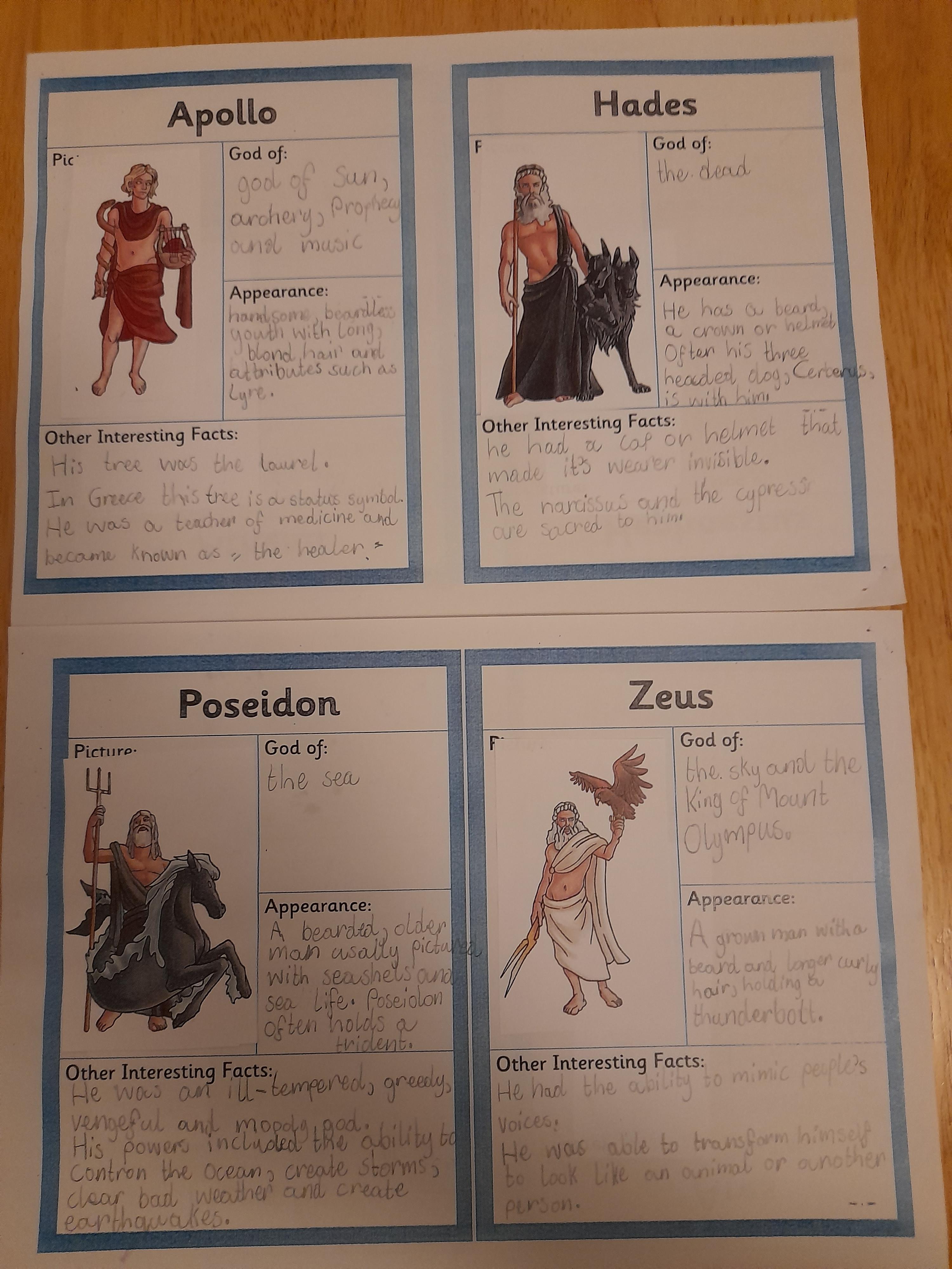 Today we are looking at the Ancient Greek Gods and Goddesses.