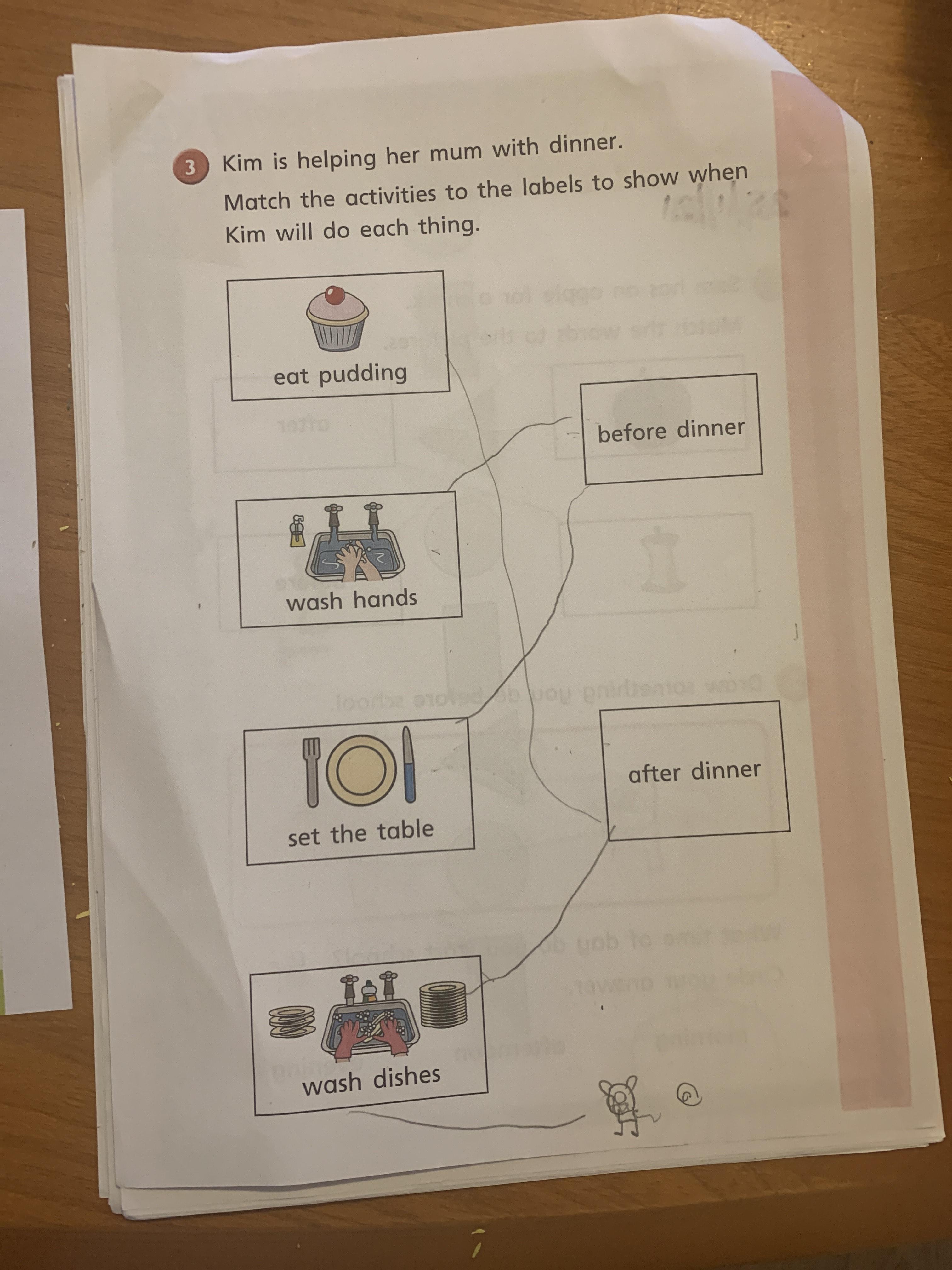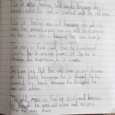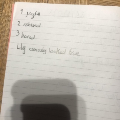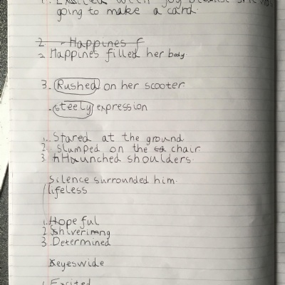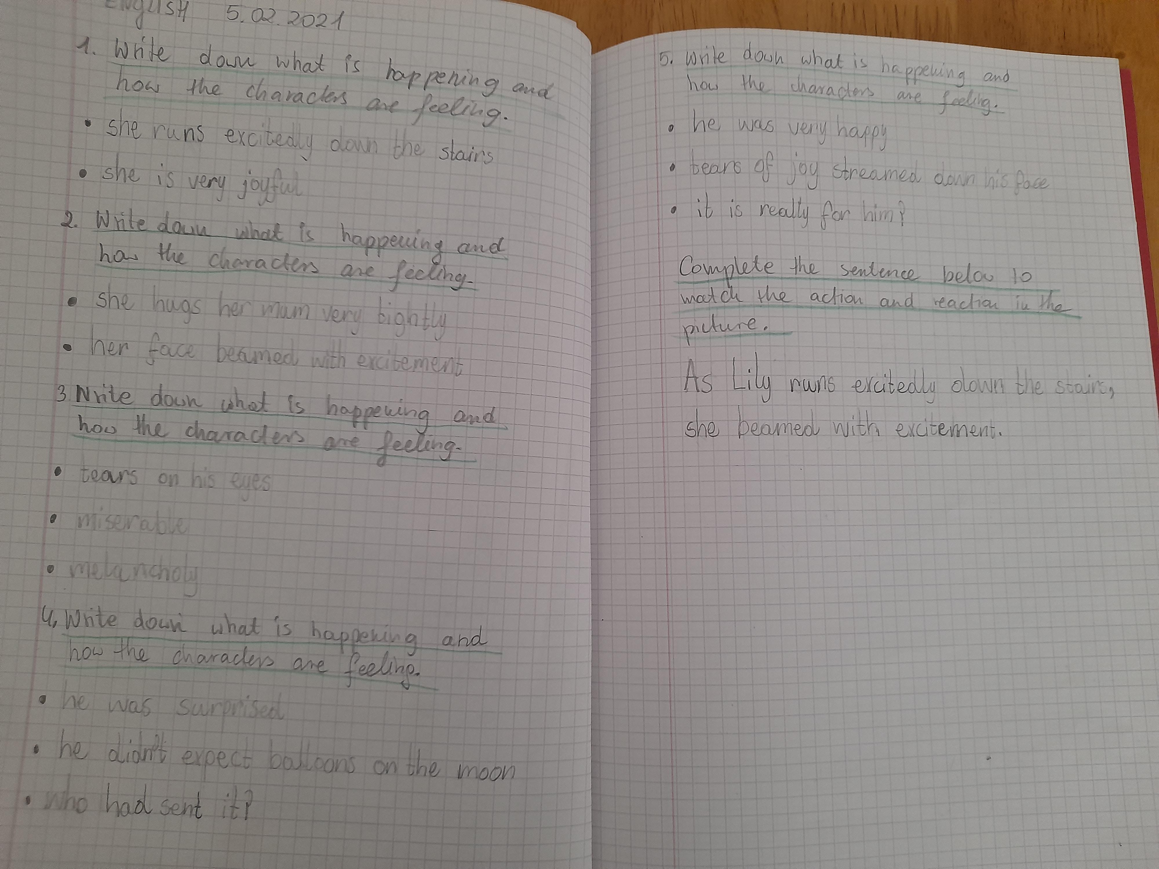 You can send us a photograph of your table showing the action and feeling words for image 4,5 and 6 that you have come up with.