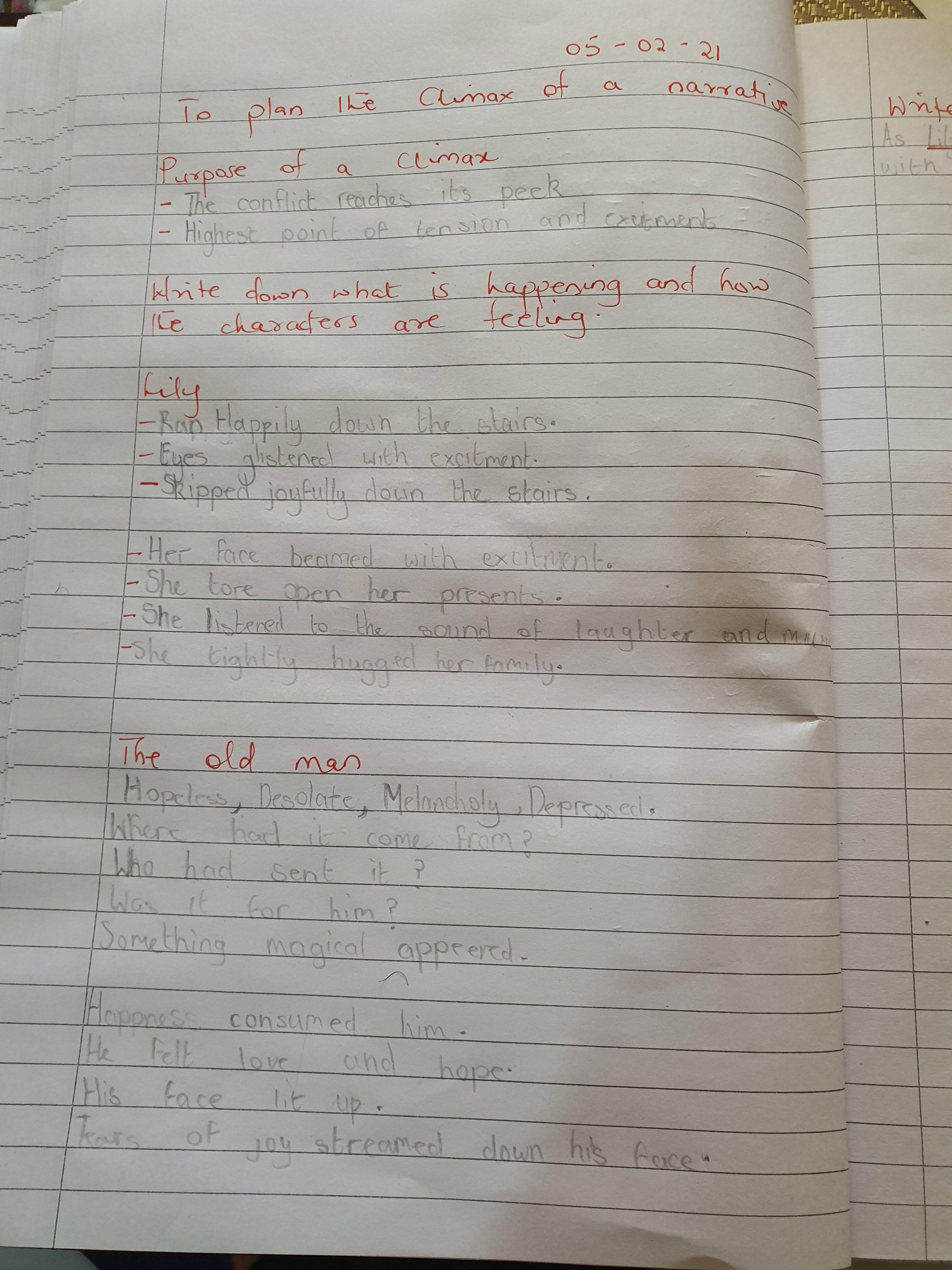 Today you will be editing your work on the climax of the story.