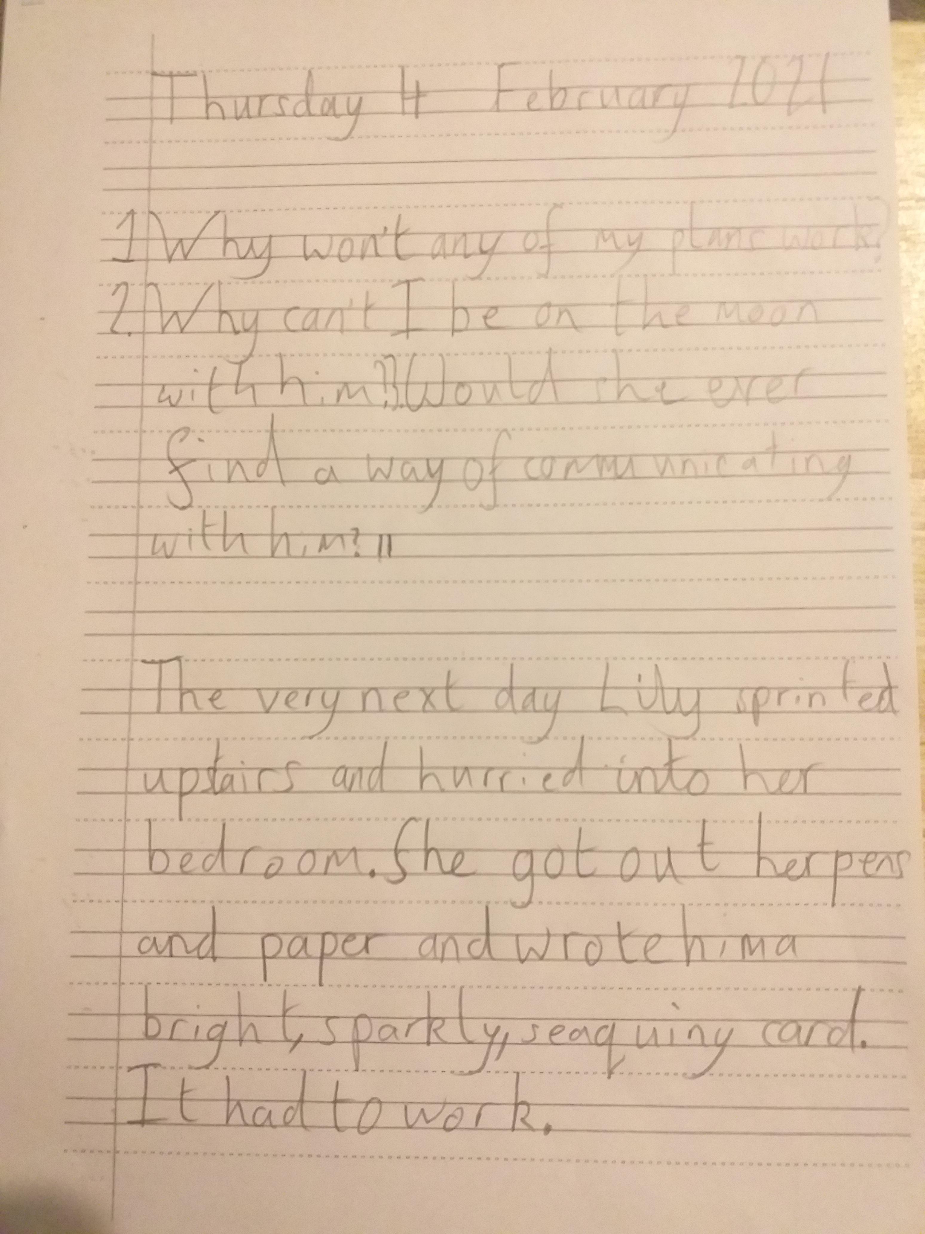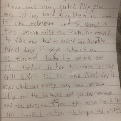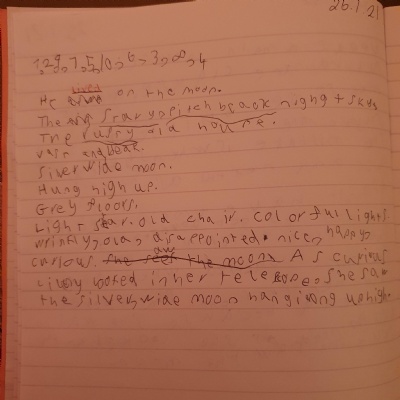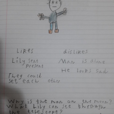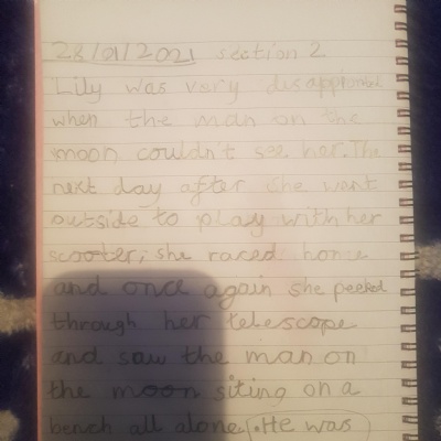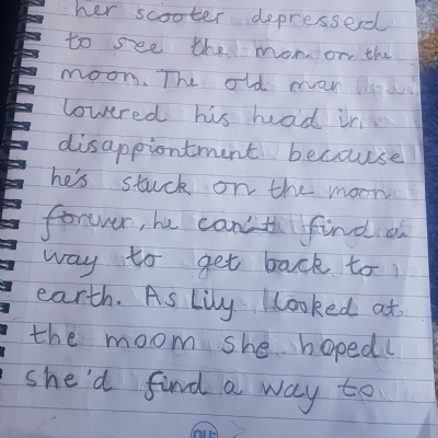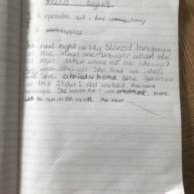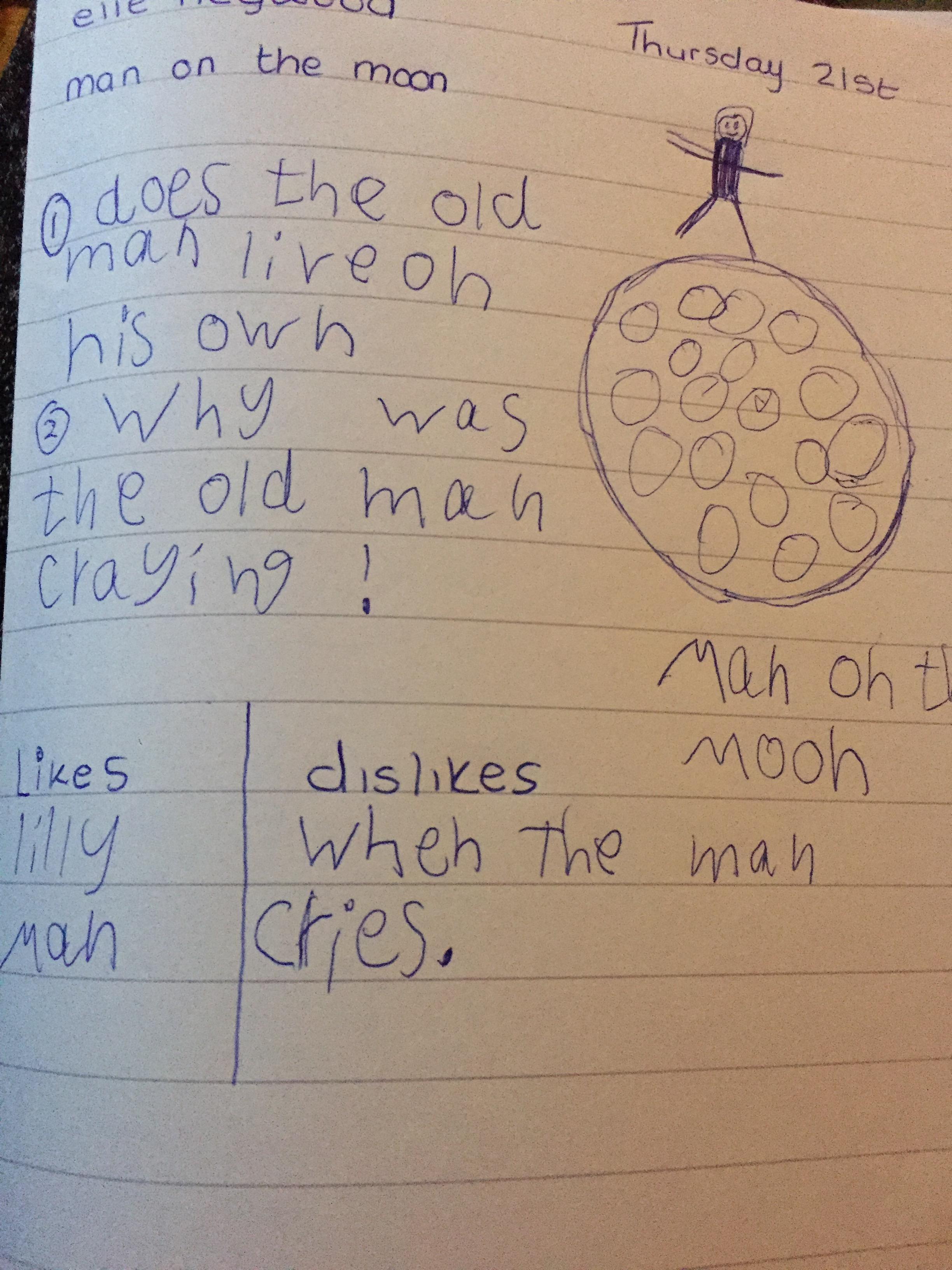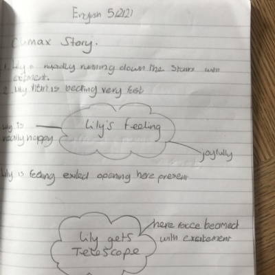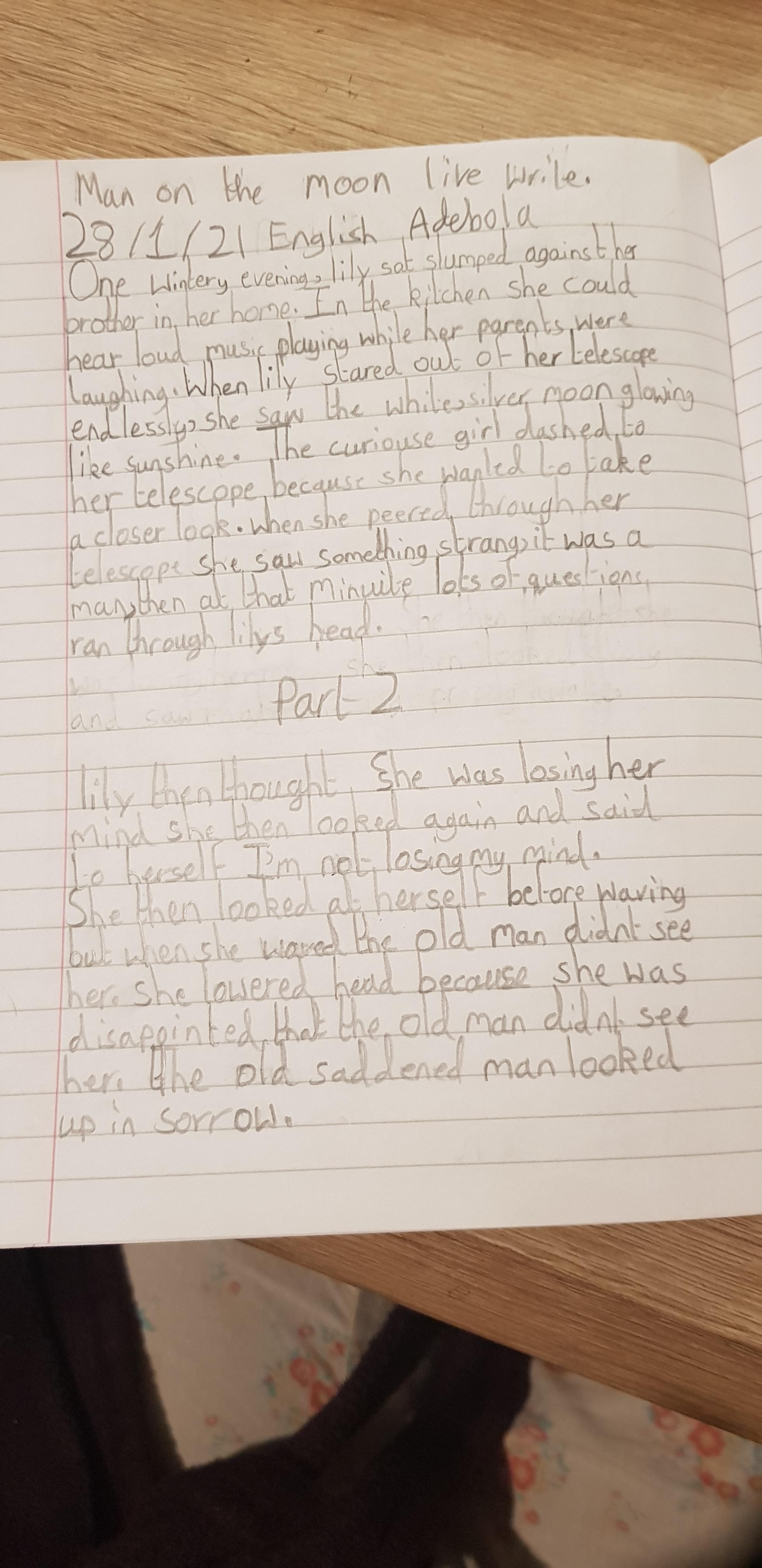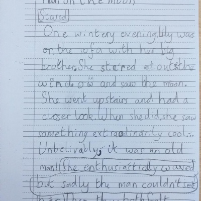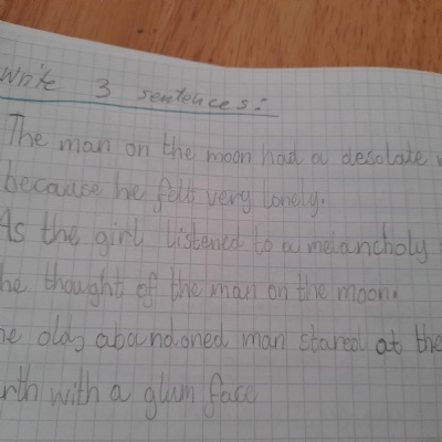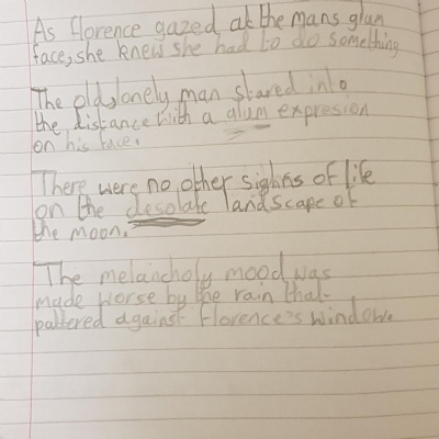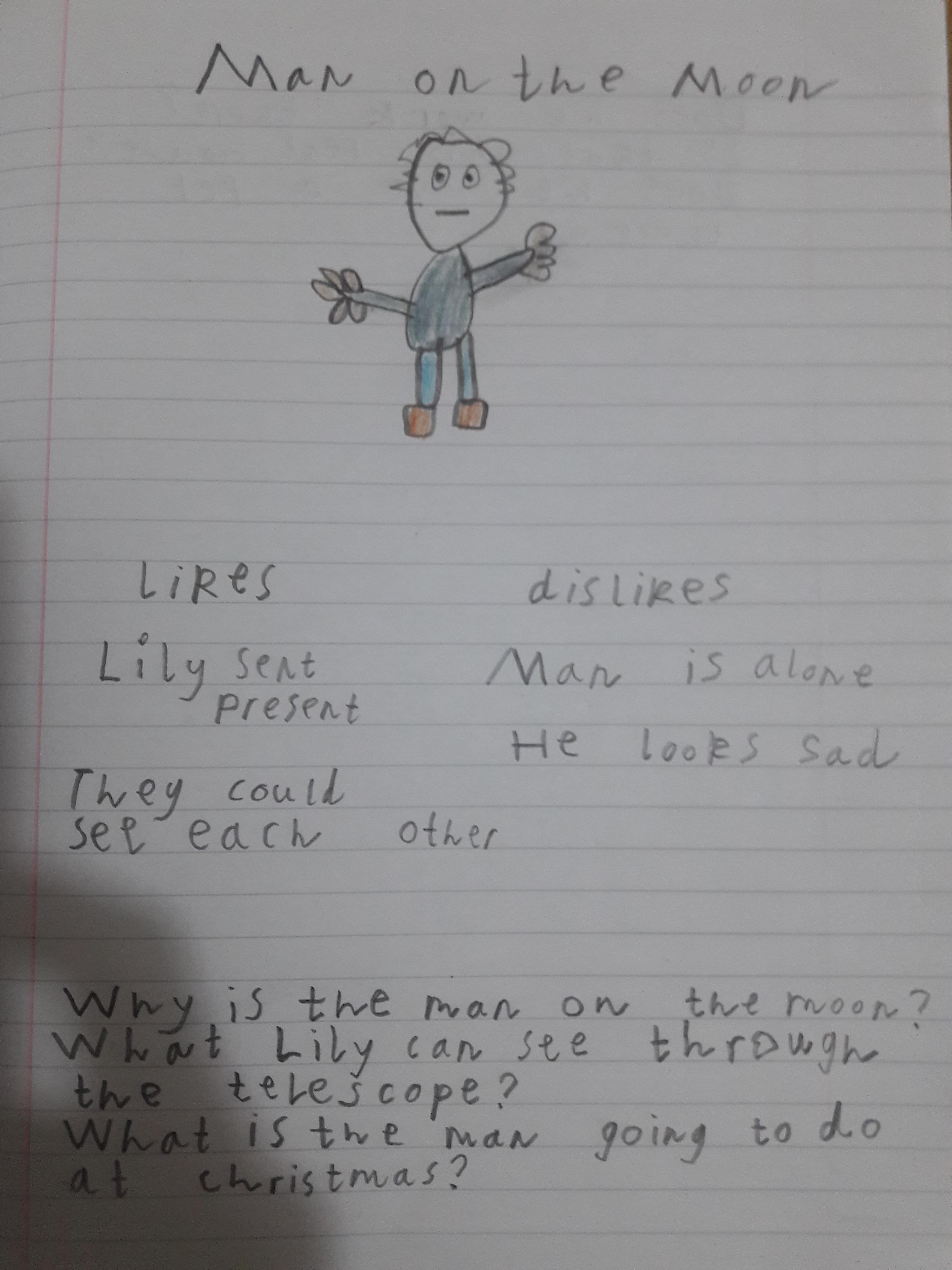 You are continuing with the Man on the Moon work. Today you will be writing the climax of the story. Your stories so far have been great so keep it up!