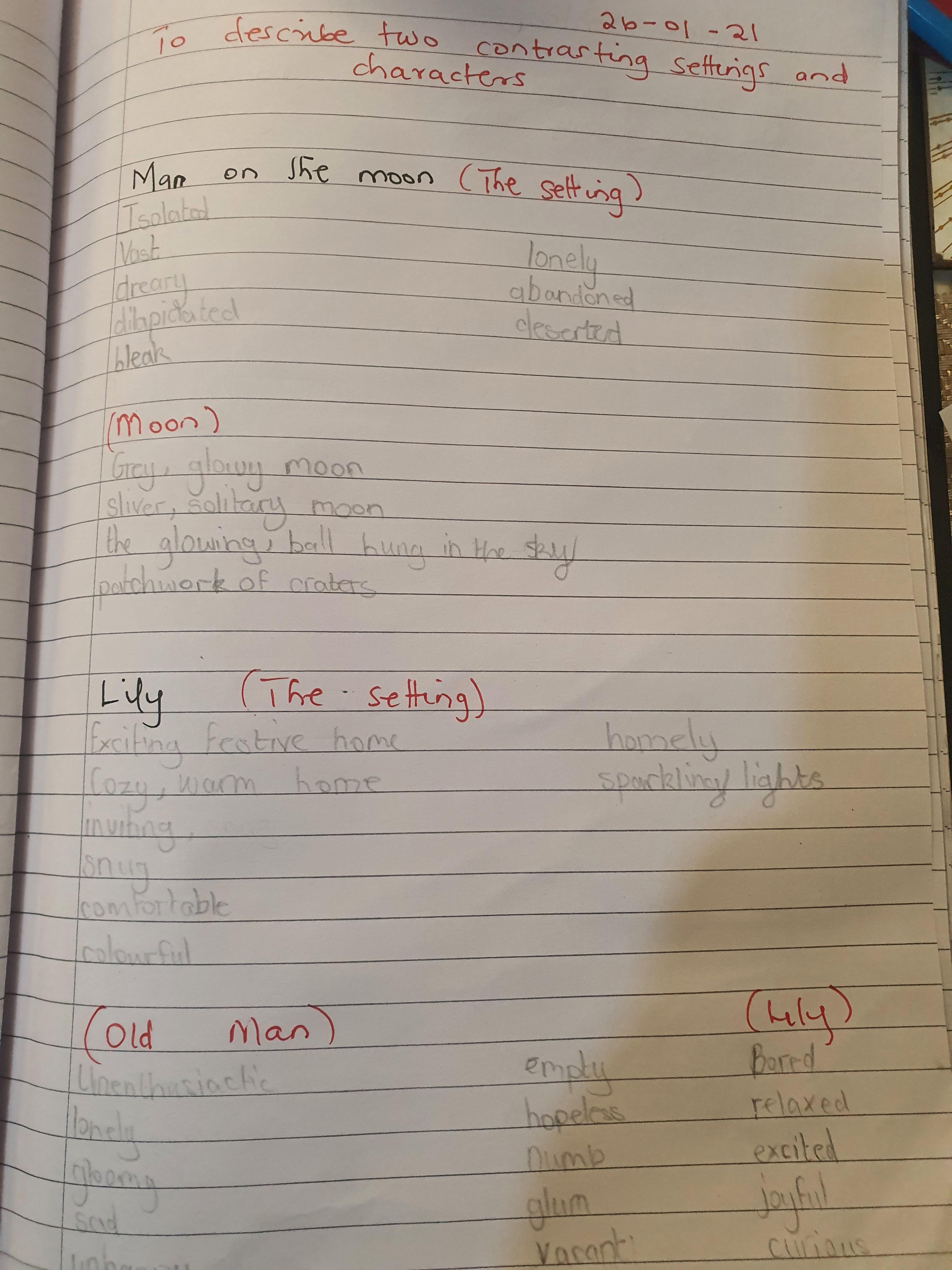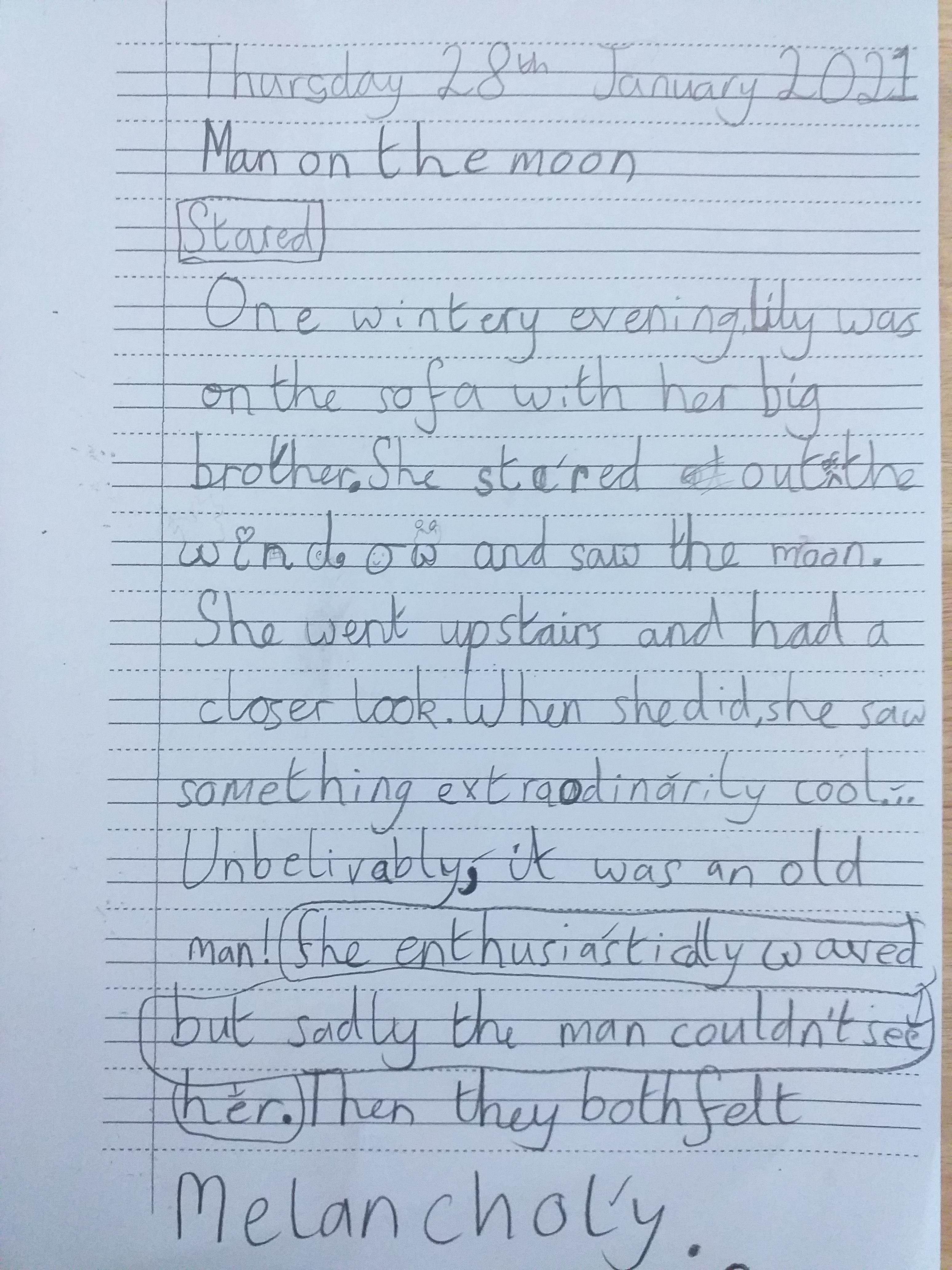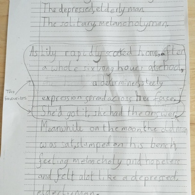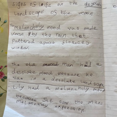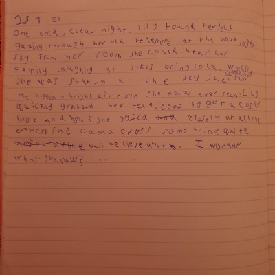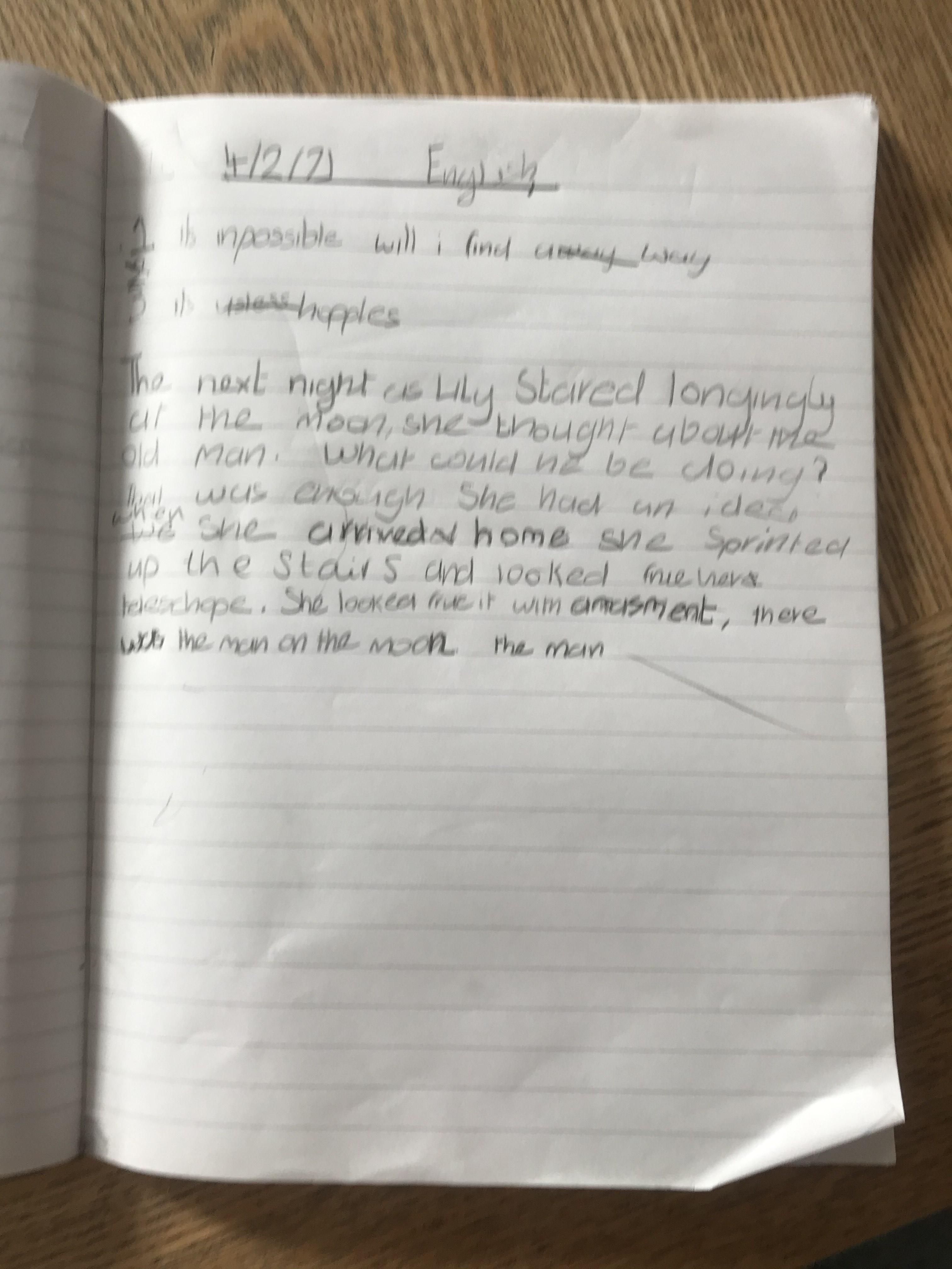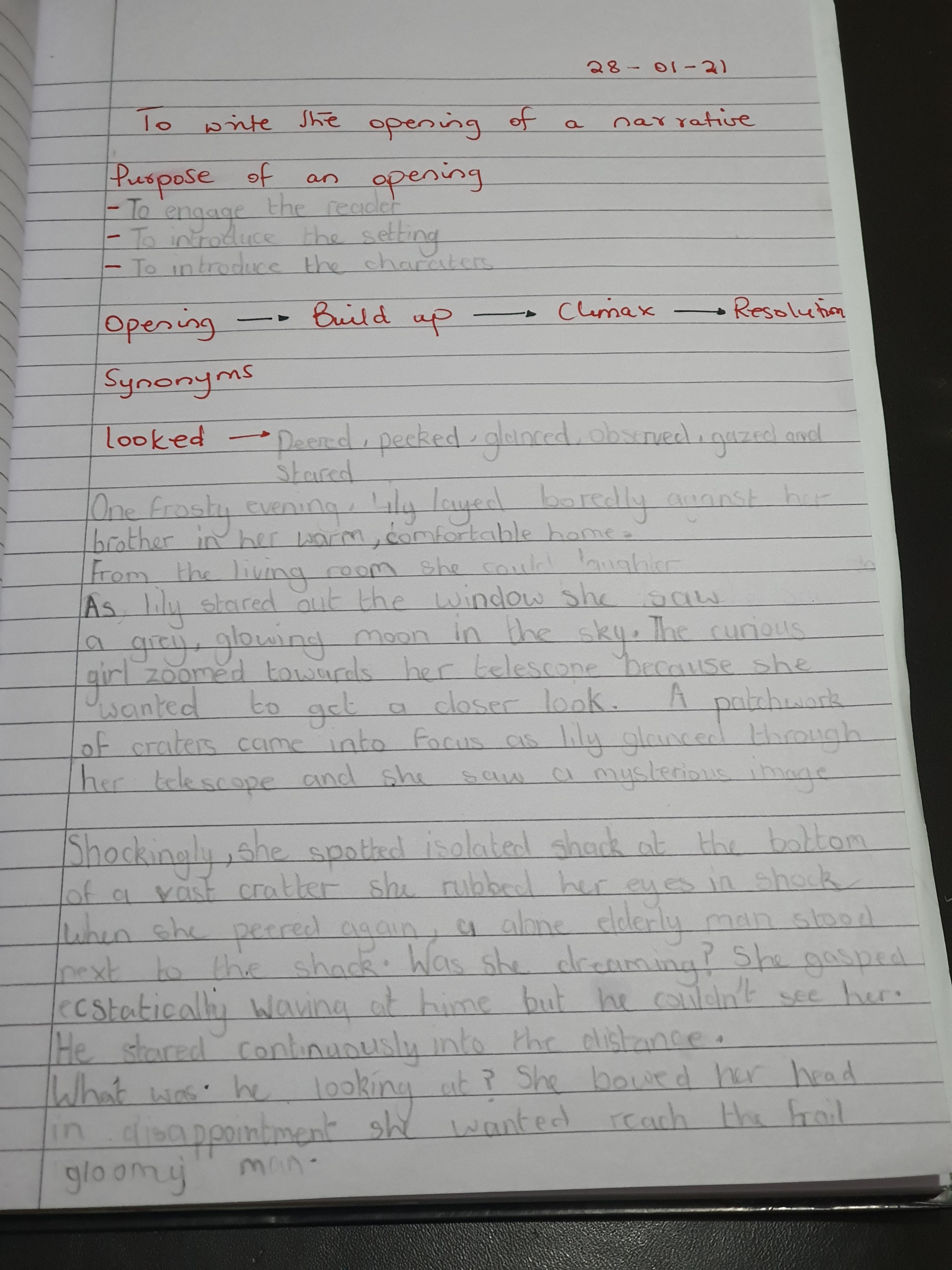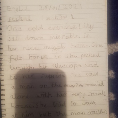 You are continuing with the Man on the Moon work. Today you will be writing the climax of the story. Your stories so far have been great so keep it up!
