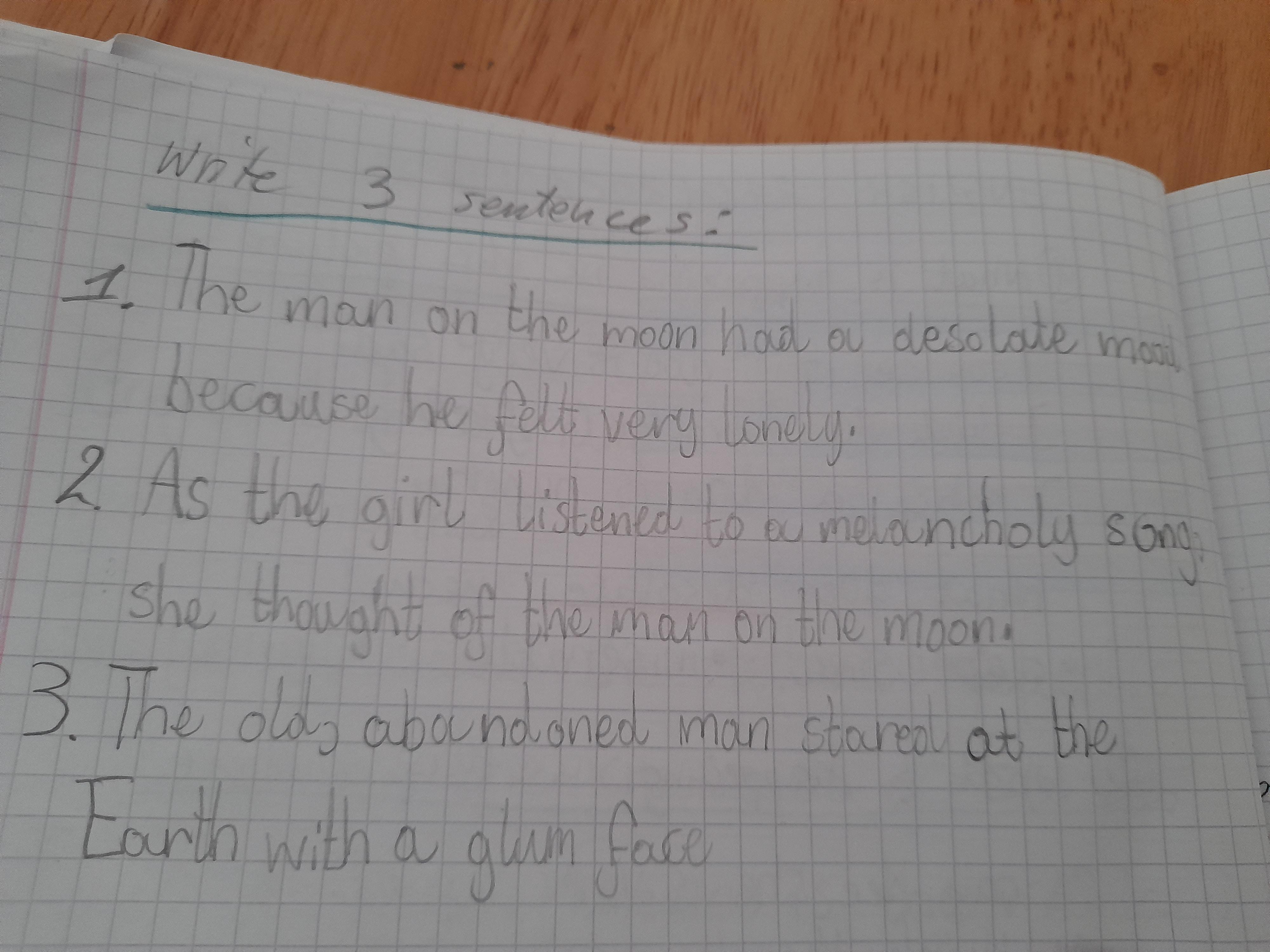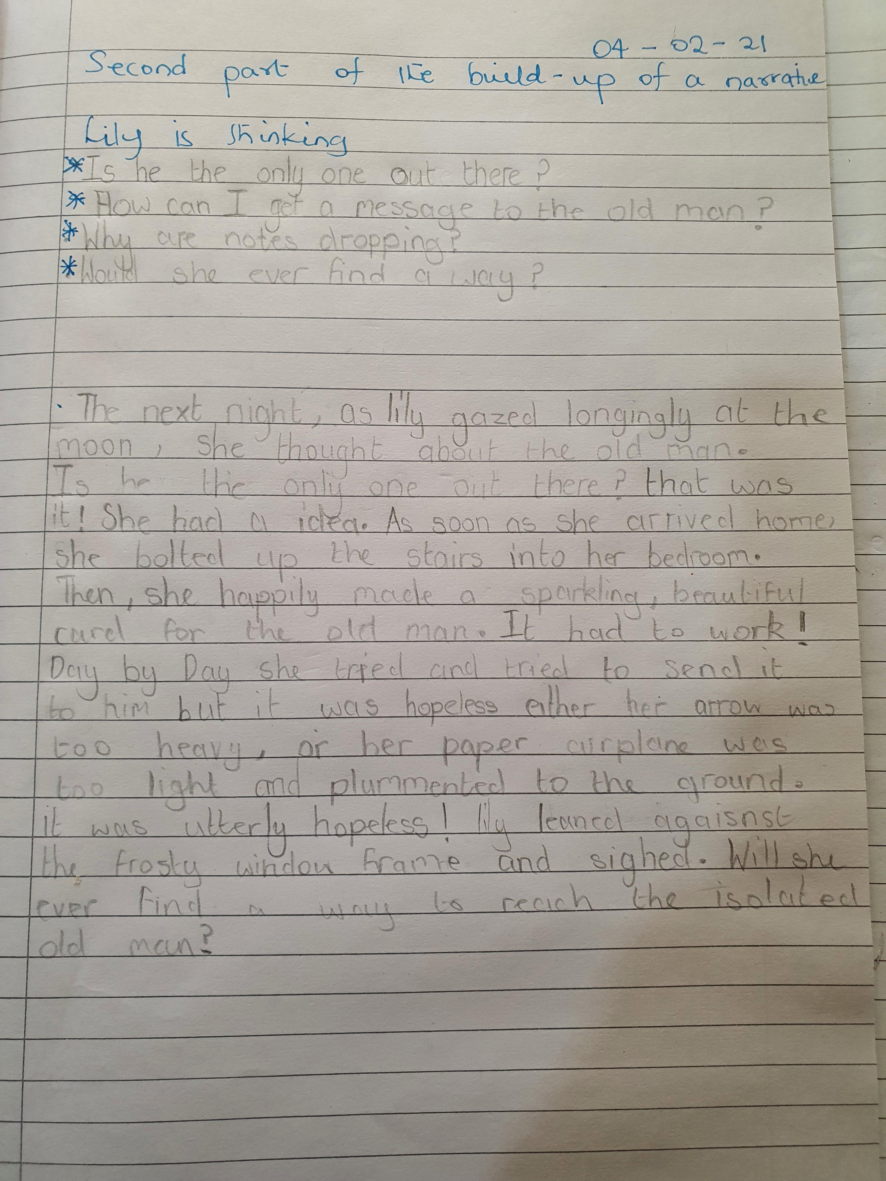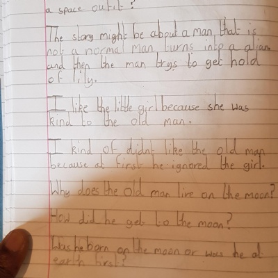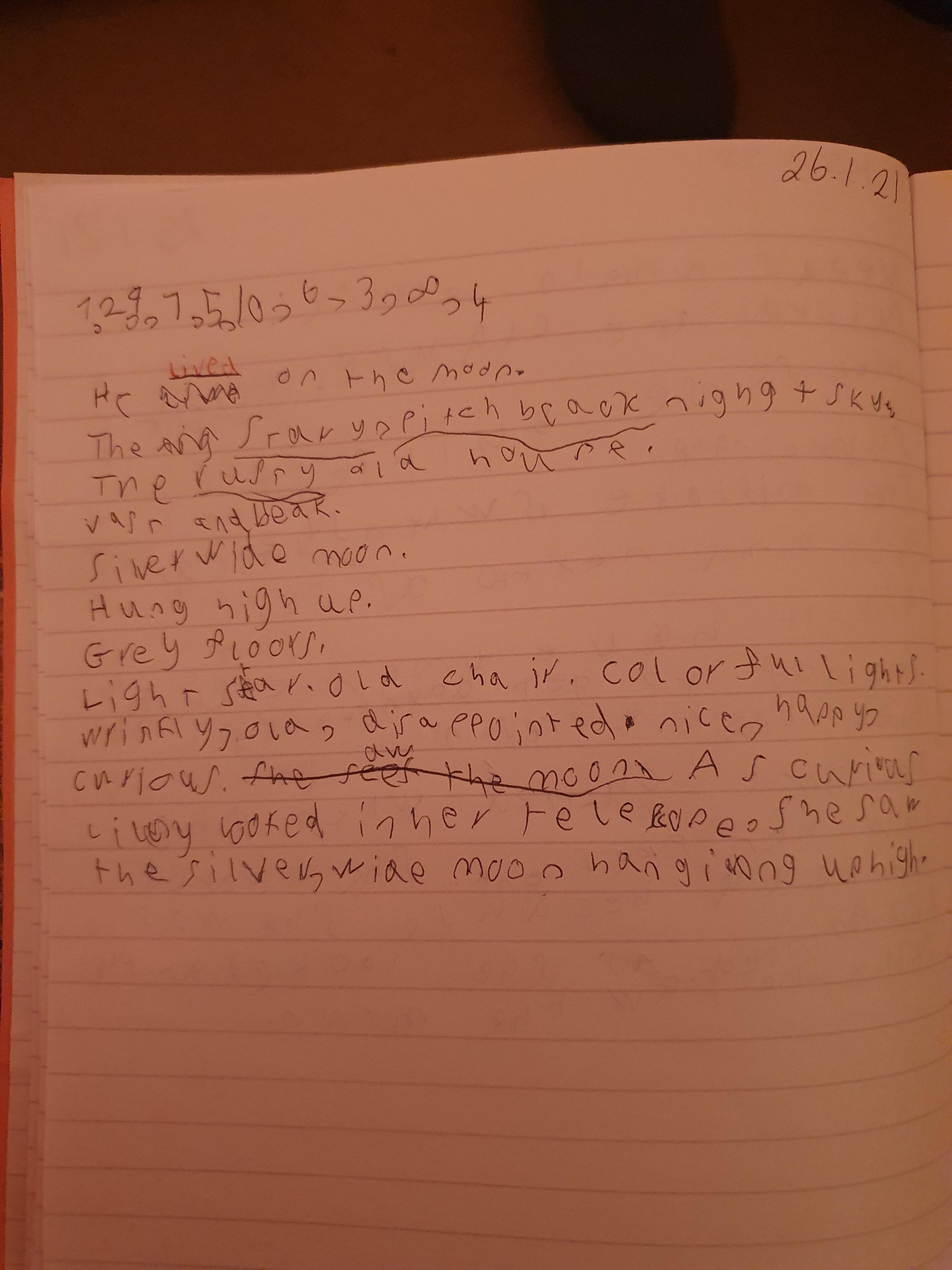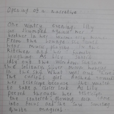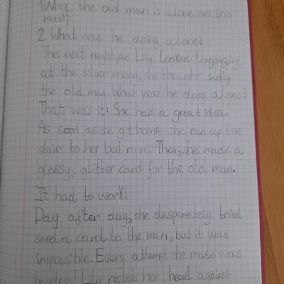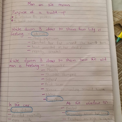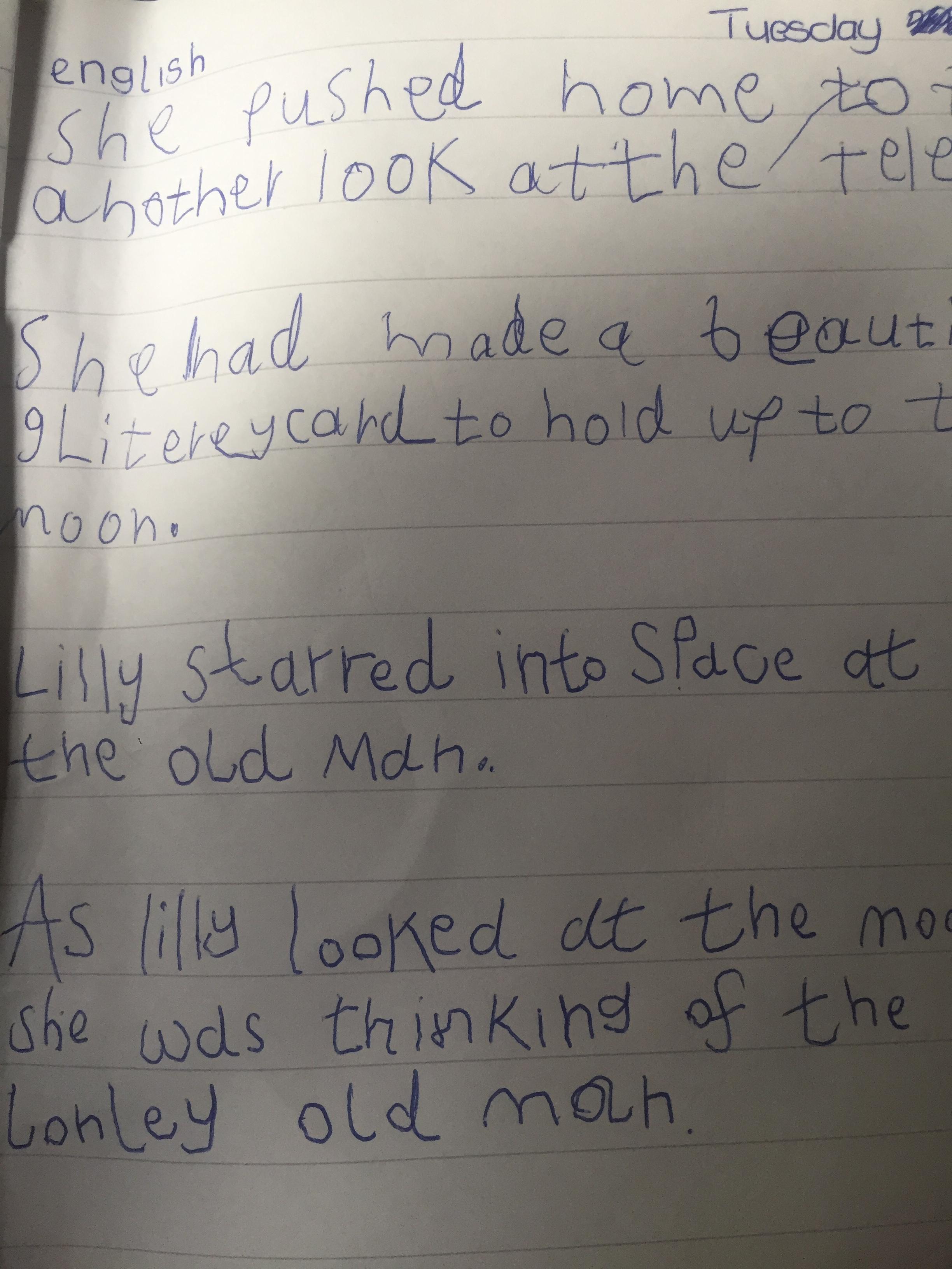 You are continuing with the Man on the Moon work. Today you will be writing the climax of the story. Your stories so far have been great so keep it up!