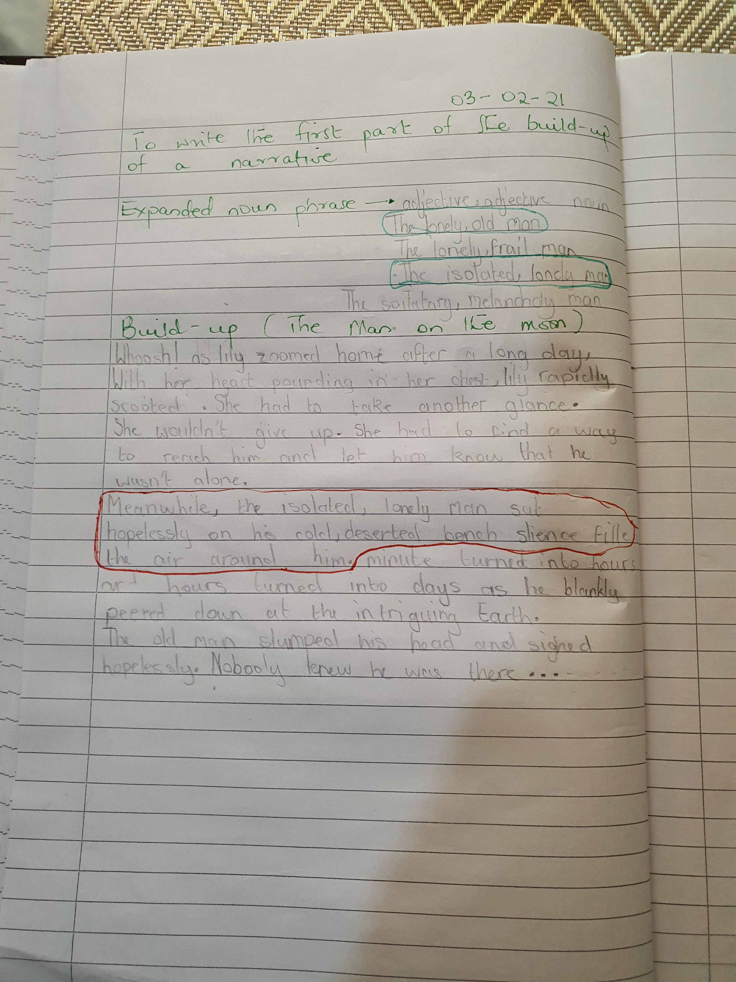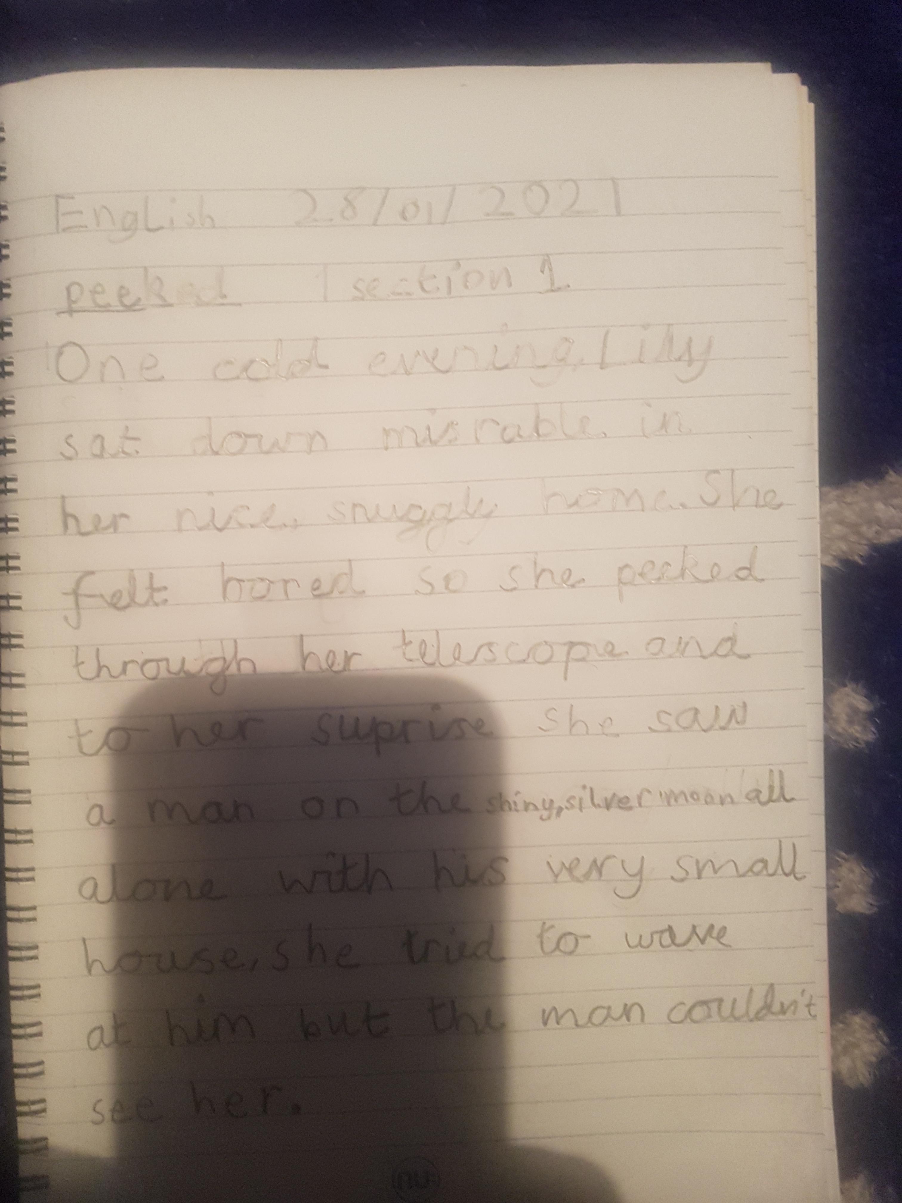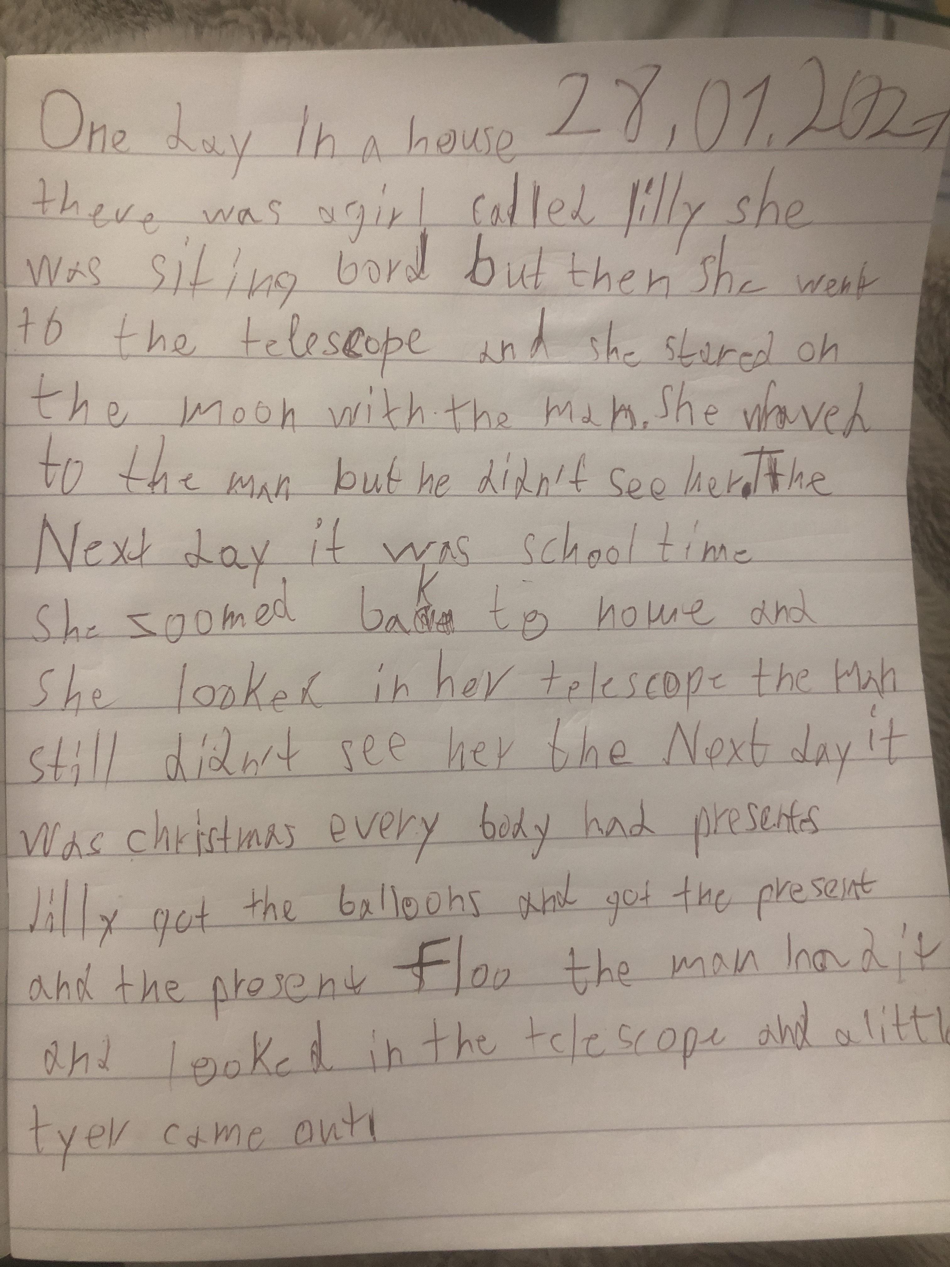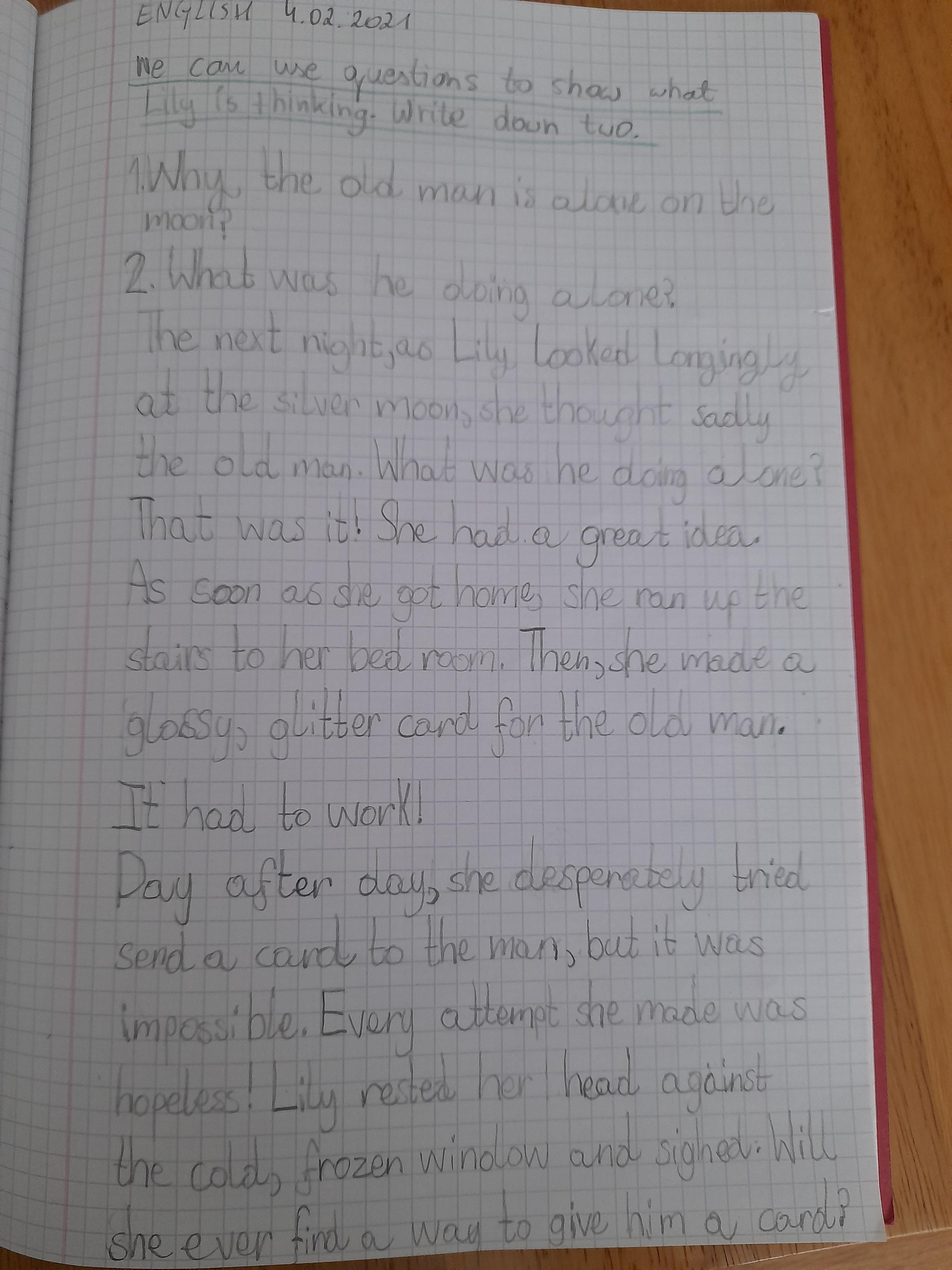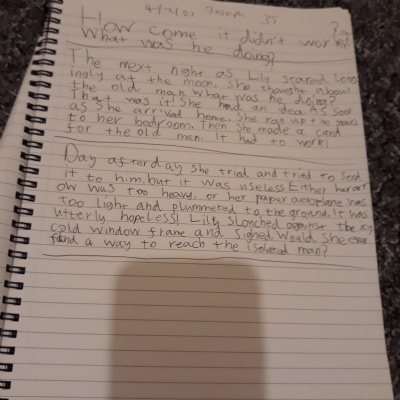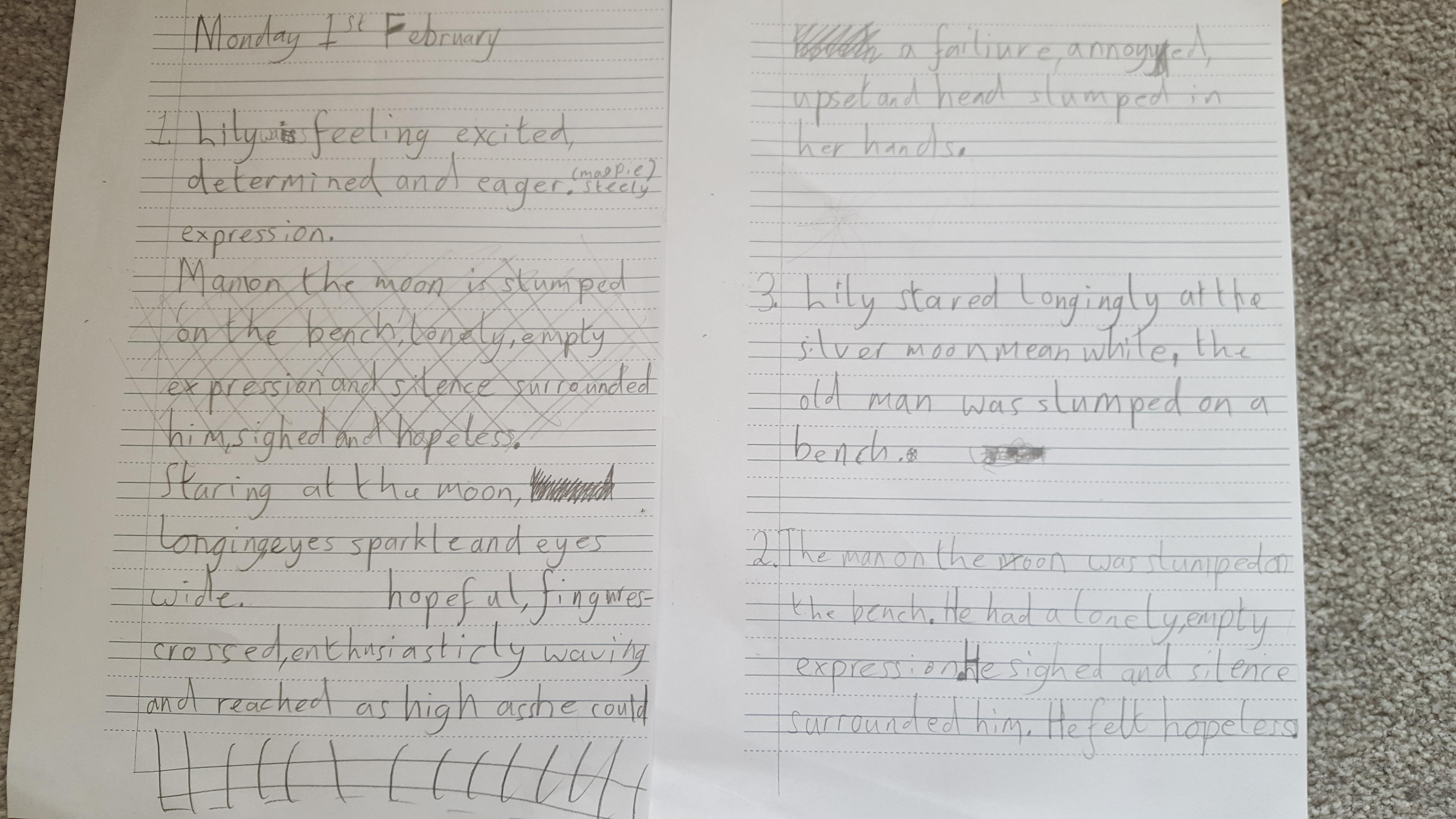 You are continuing with the Man on the Moon work. Today you will be writing the climax of the story. Your stories so far have been great so keep it up!