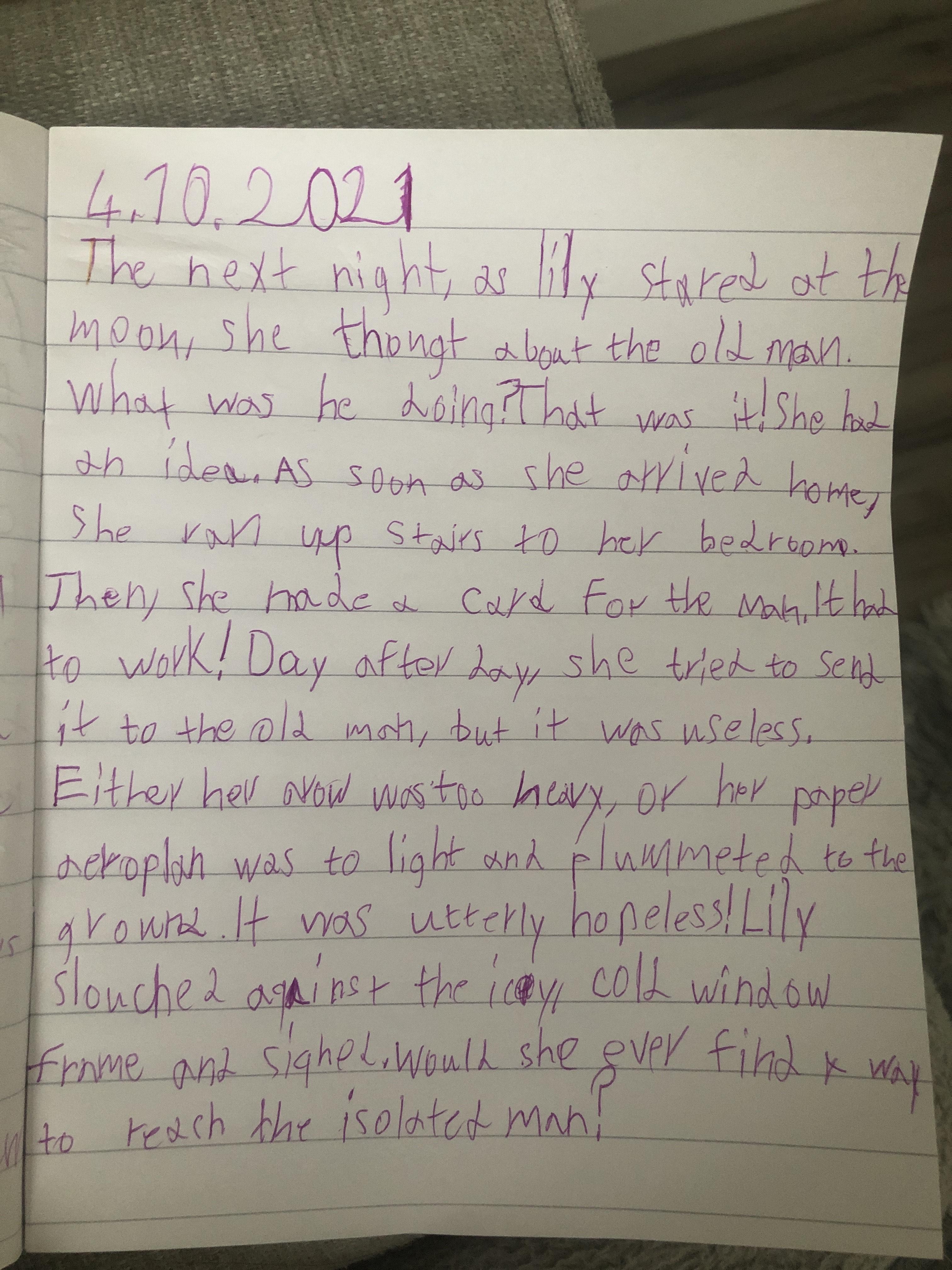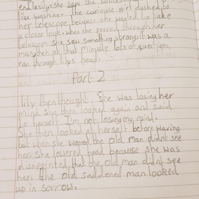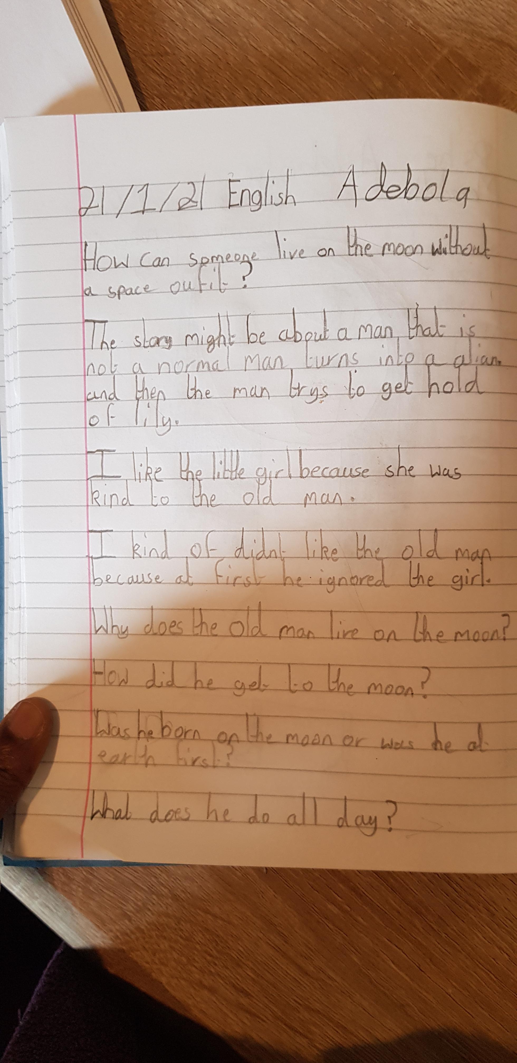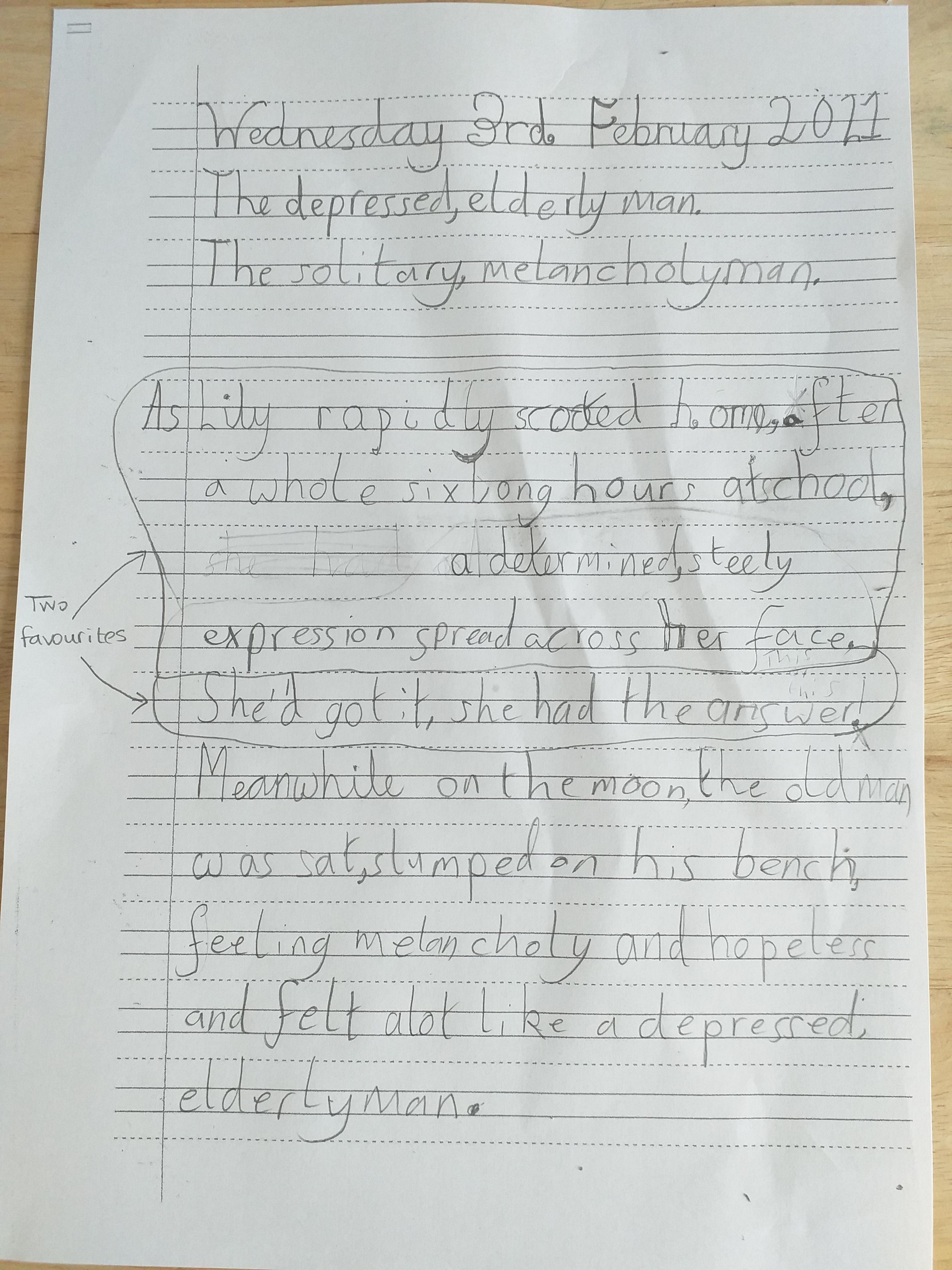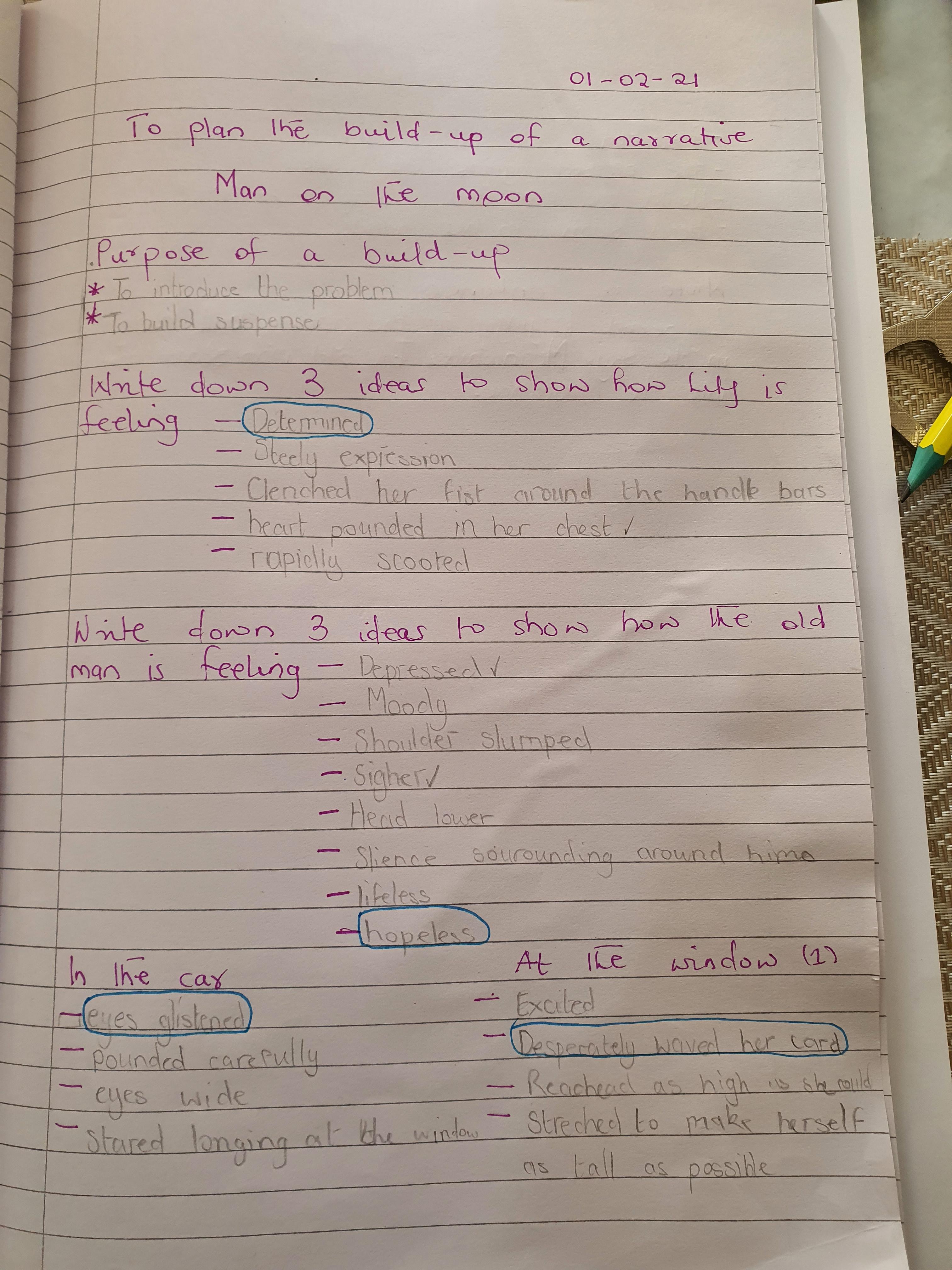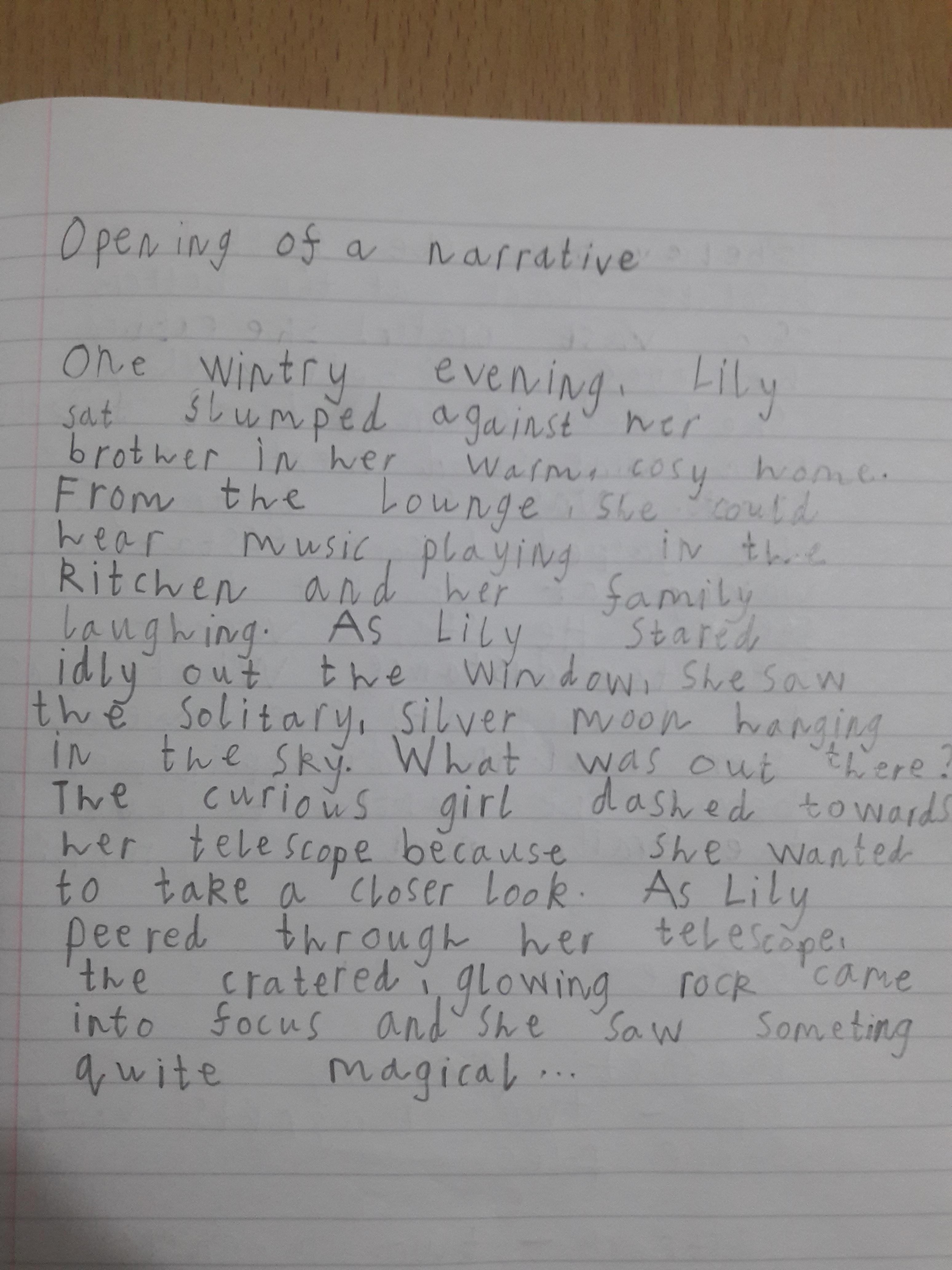 You are continuing with the Man on the Moon work. Today you will be writing the climax of the story. Your stories so far have been great so keep it up!