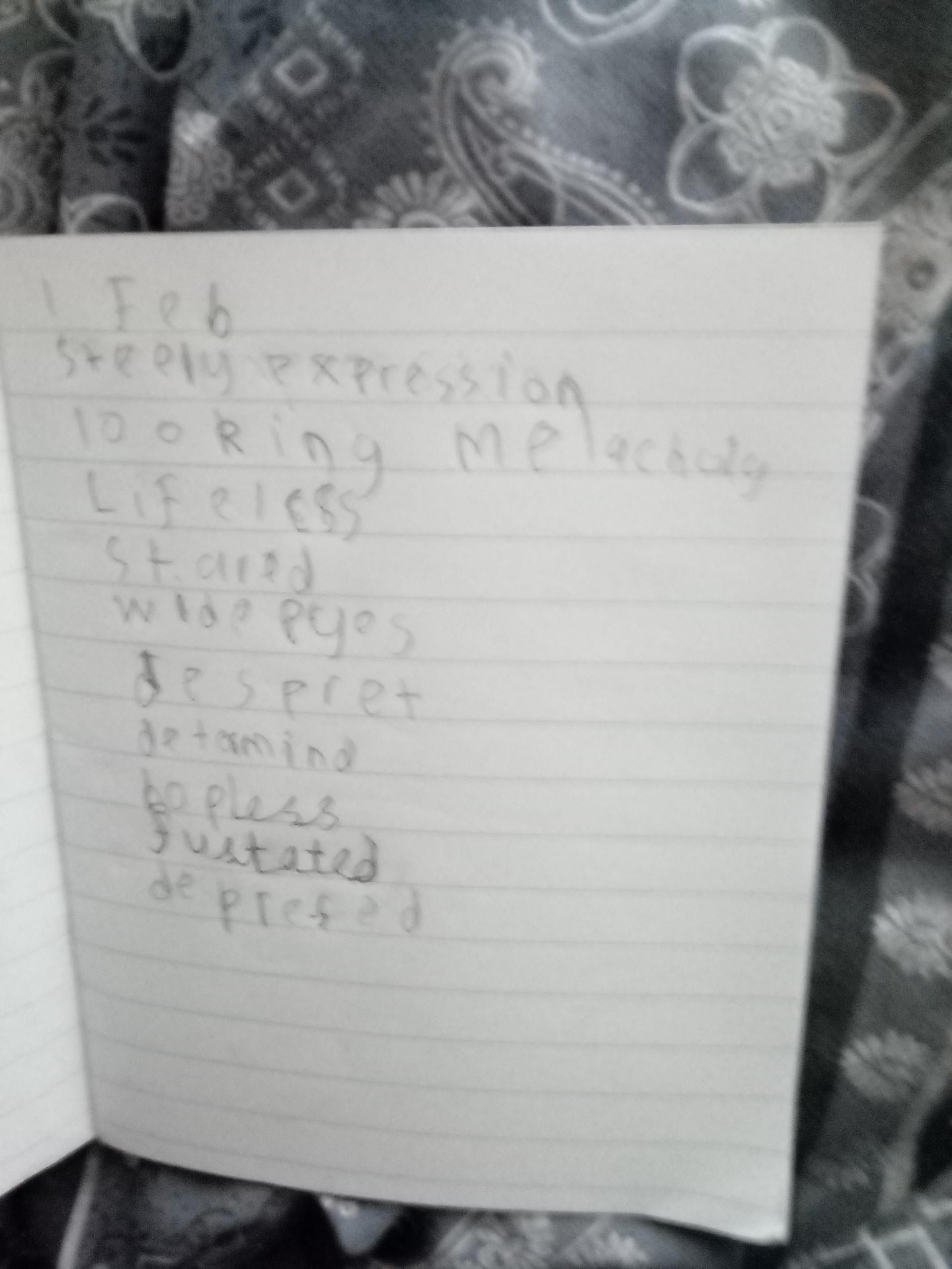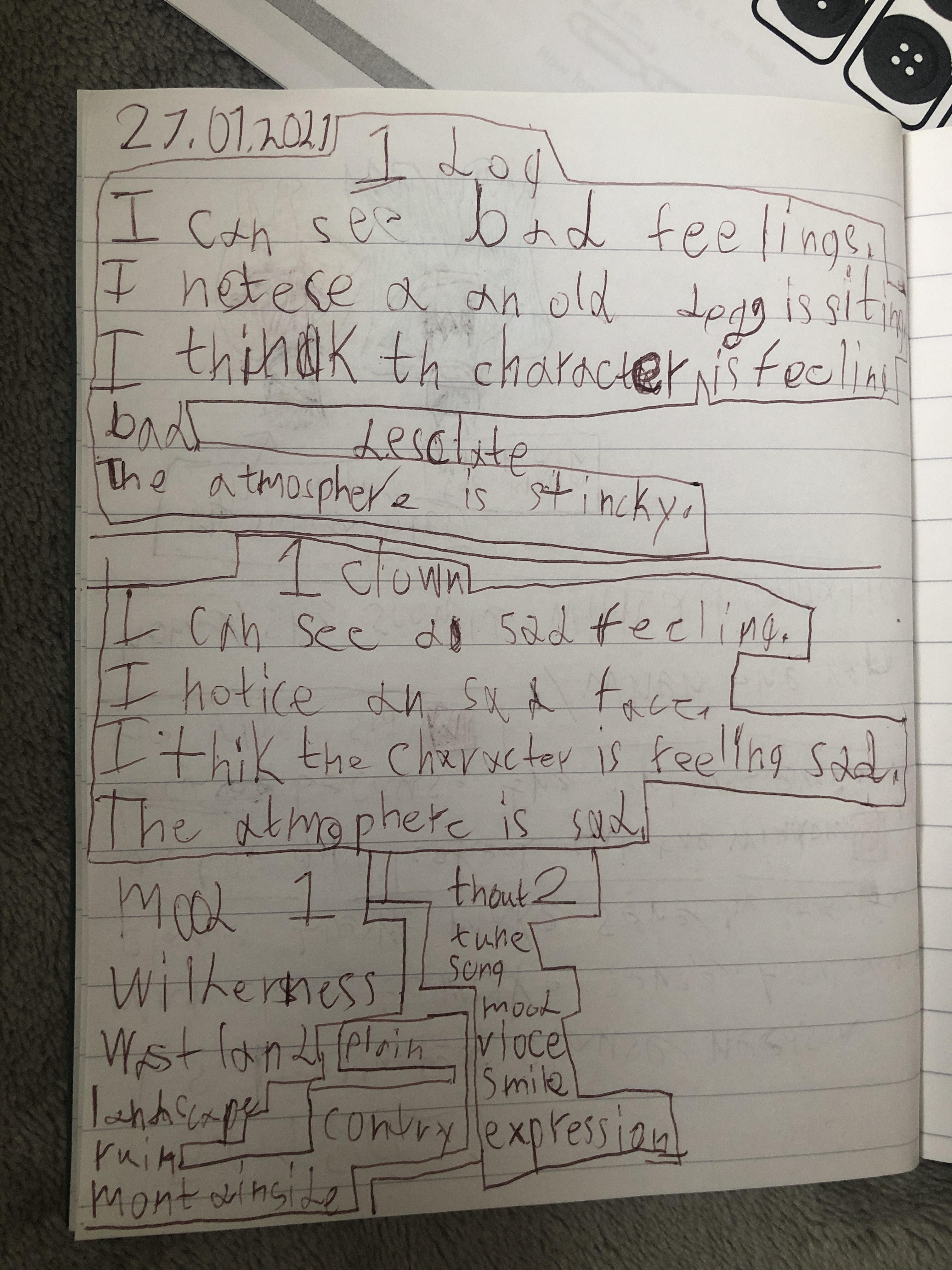 Please send us a picture of your sketch of the setting which has those amazing adjectives on it.