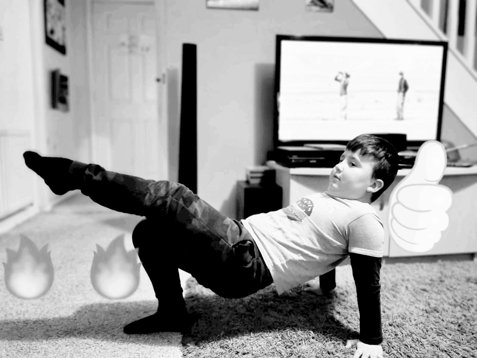 4) Hold a 3 point balance for 3 seconds ( 3 body parts touching the floor)