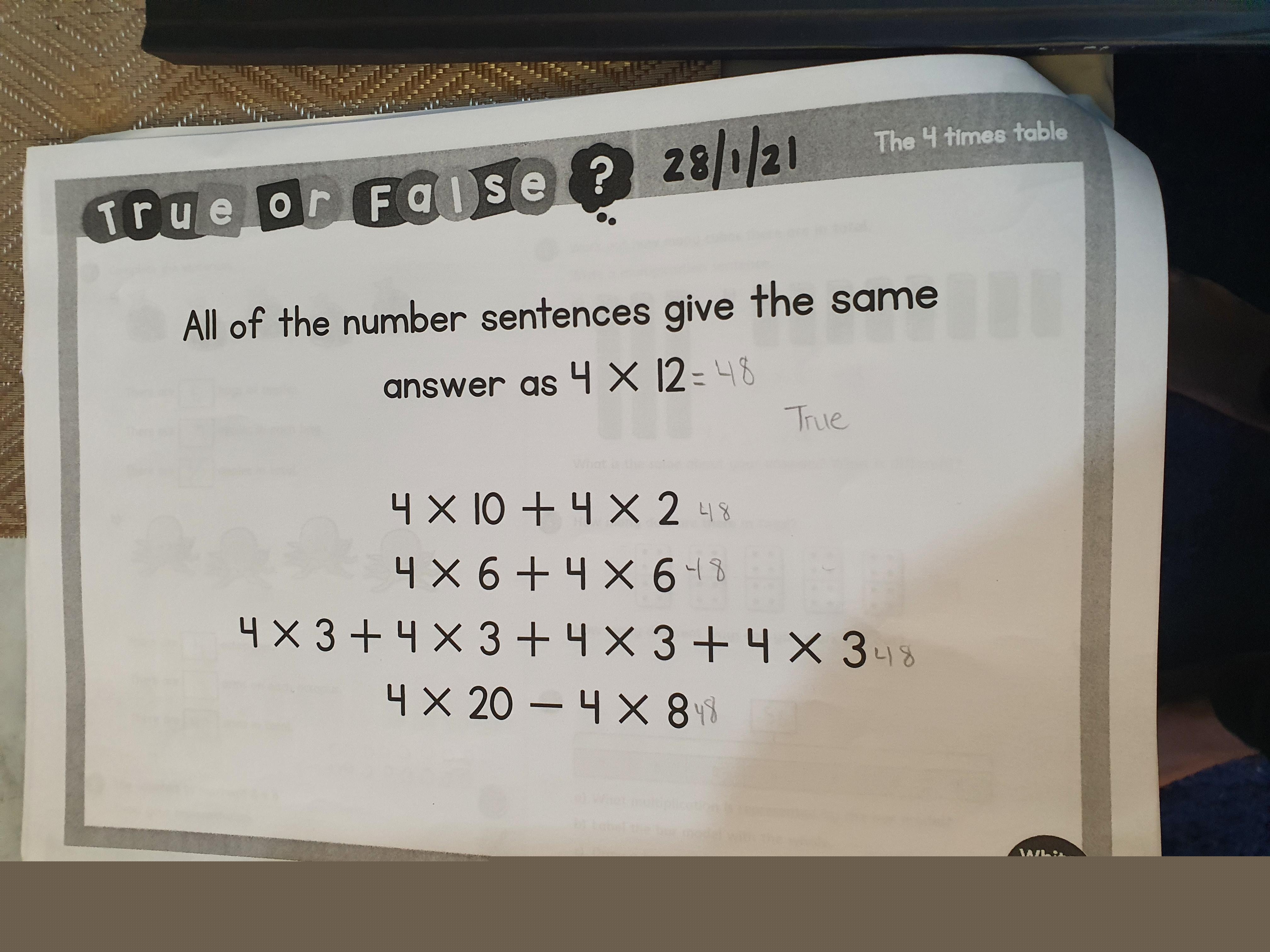 Now answer the True and False question below (remembering to prove your answer) then complete the worksheet that should be in your pack. I have put a copy of it below so you know which one it is.