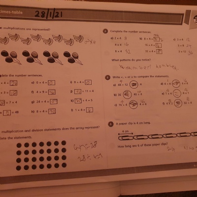 You should be getting a new set of maths sheets today or Monday for next weeks maths lessons. For those of you who have siblings in school they may be passed on via them.