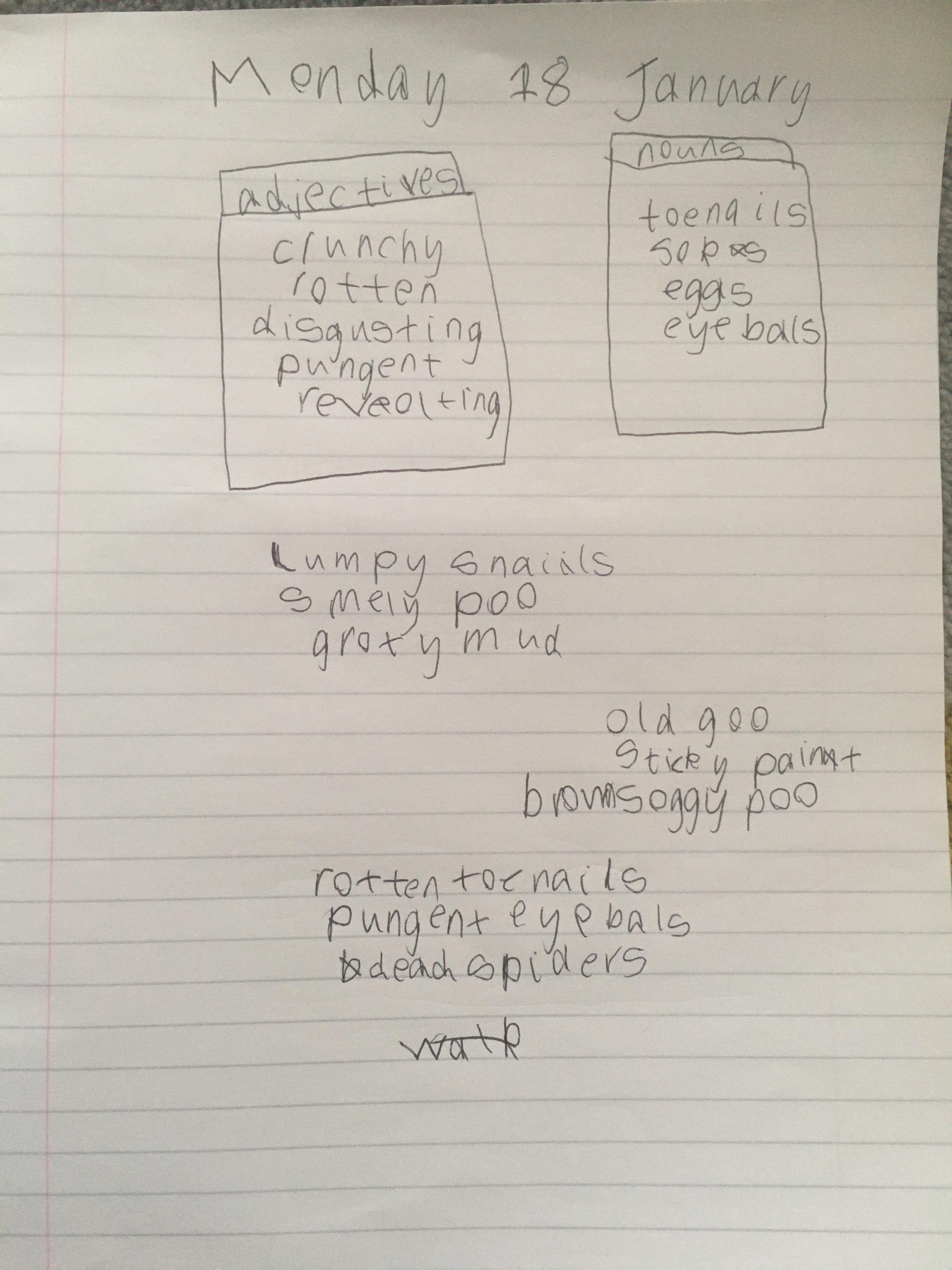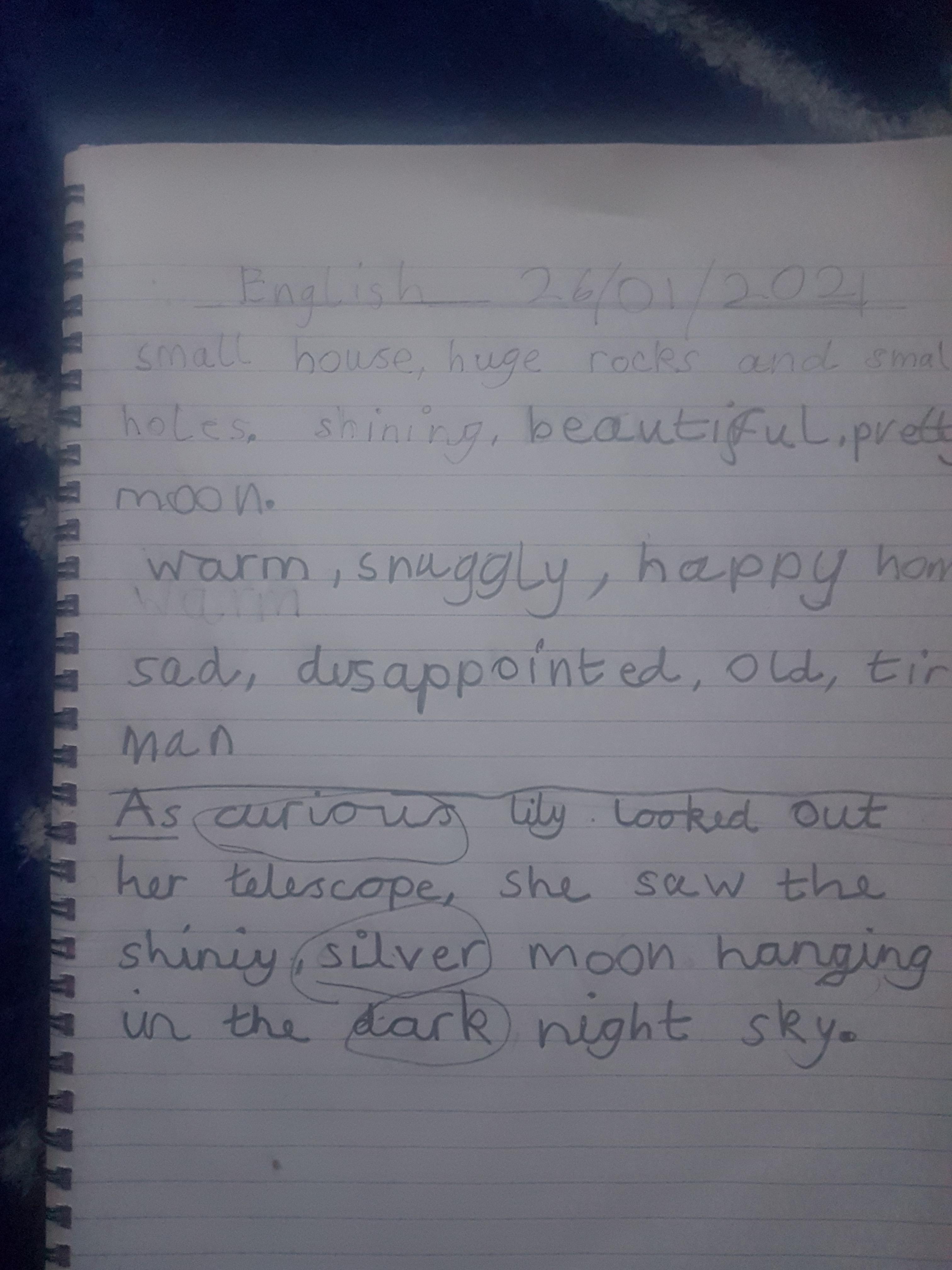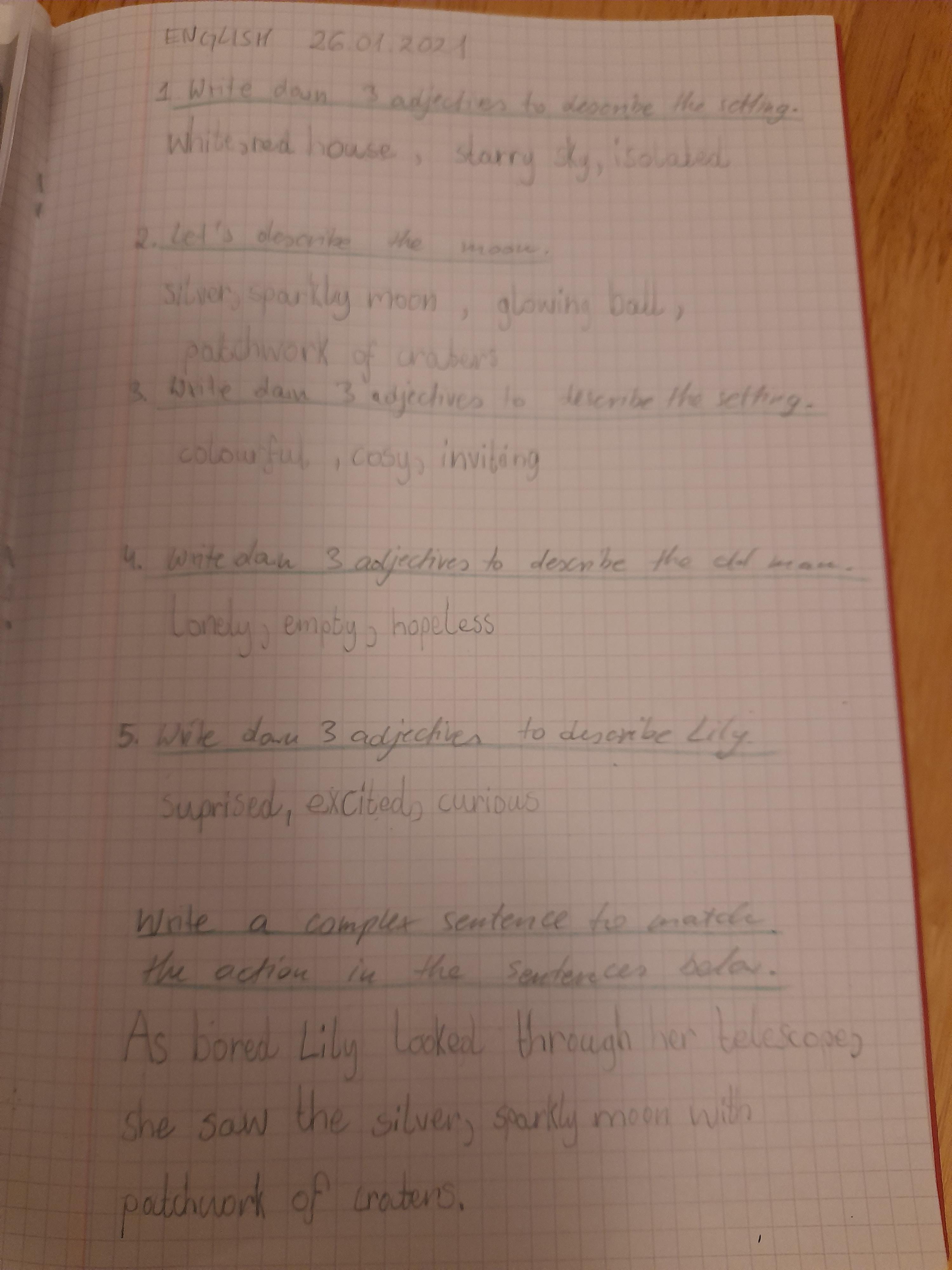 Remember to send us your work as we love receiving your emails so we can see how you are finding the work! Today you can send us your adjectives and also your adjective, adjective, noun sentences.