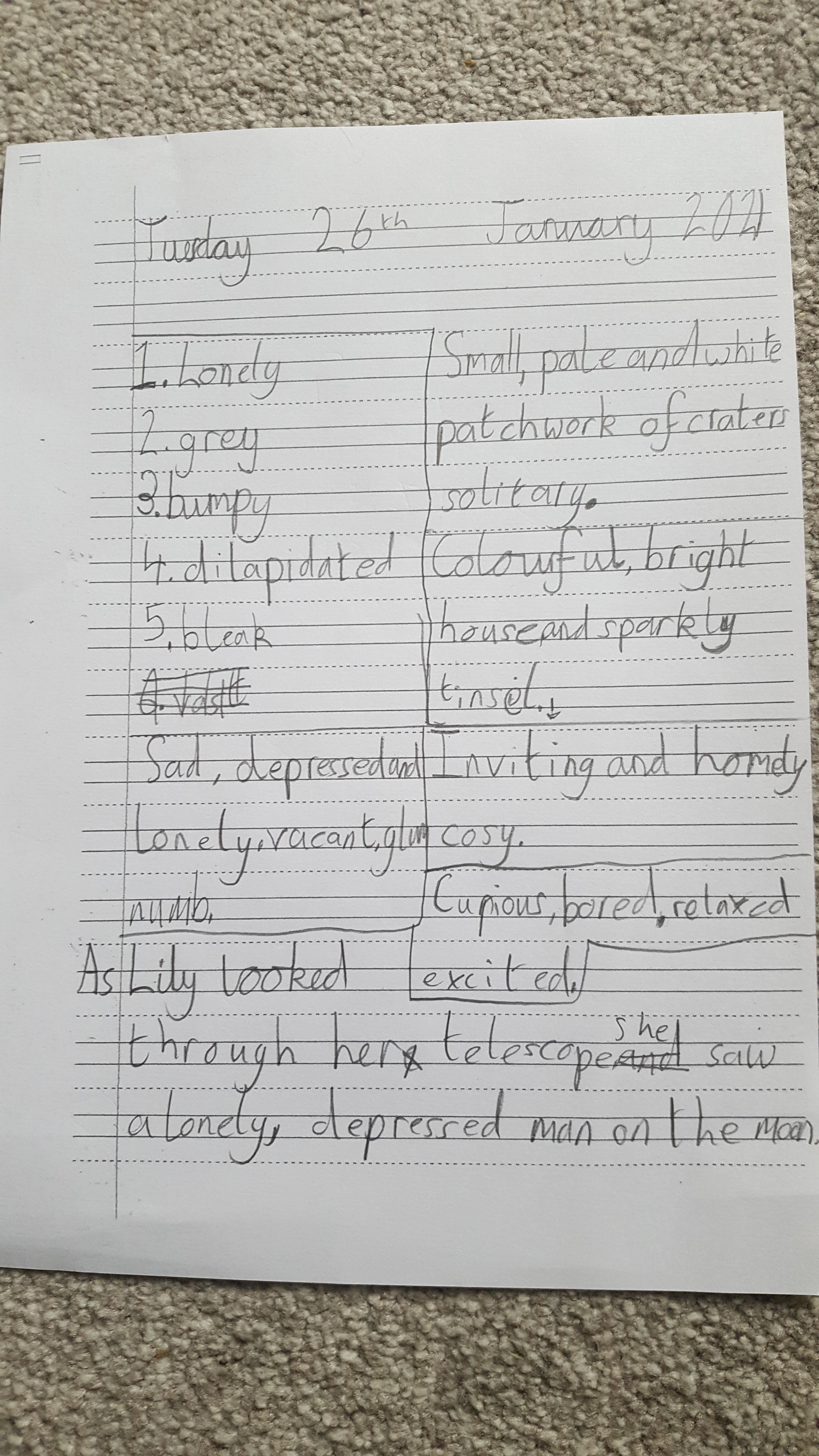 Today in English you will be looking at vocabulary and which words can add effect to our writing.