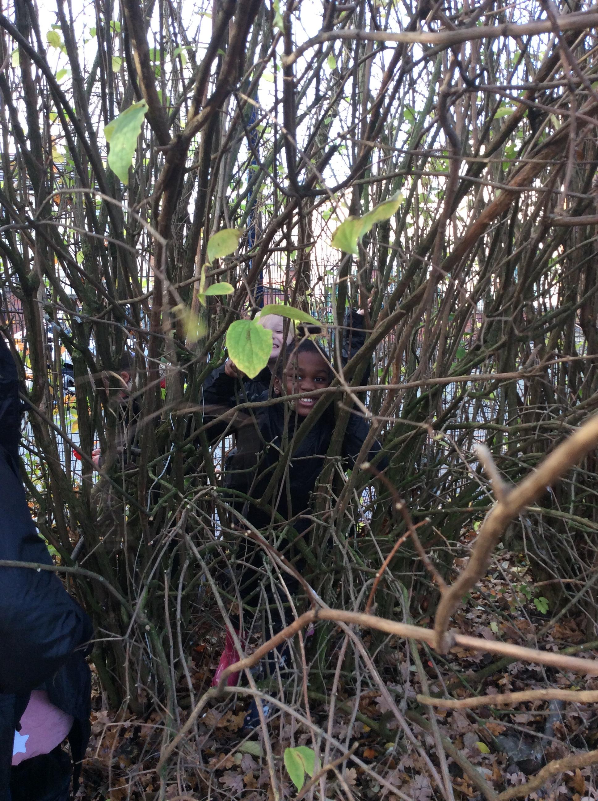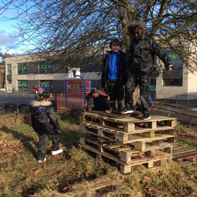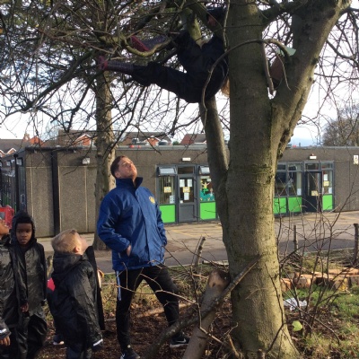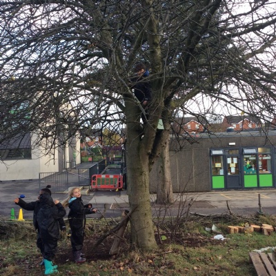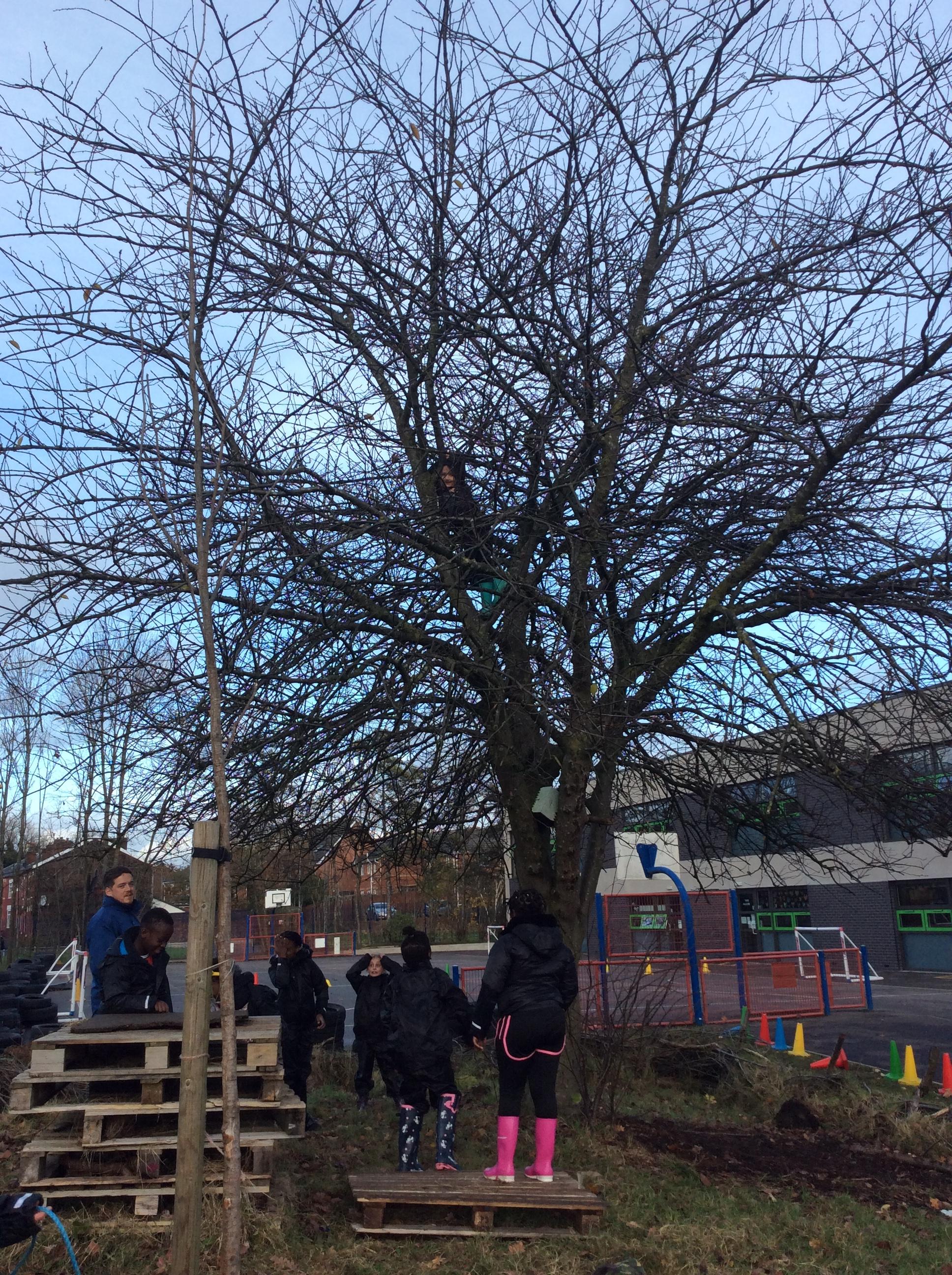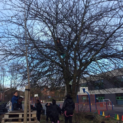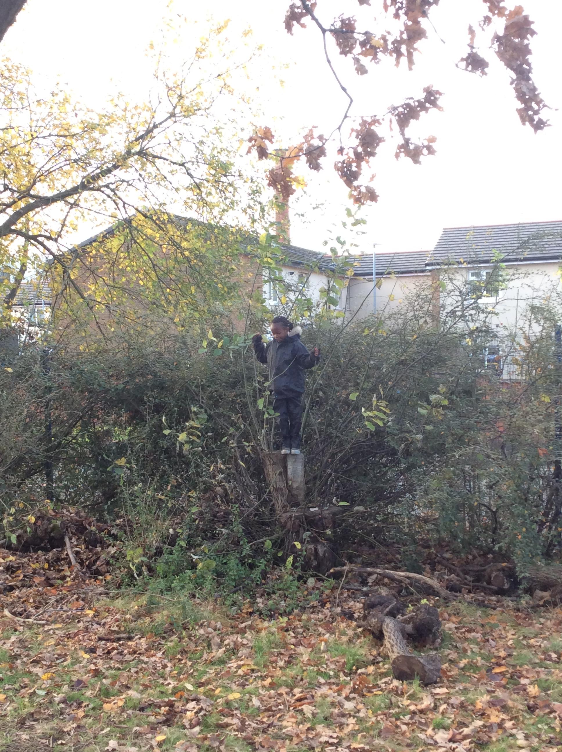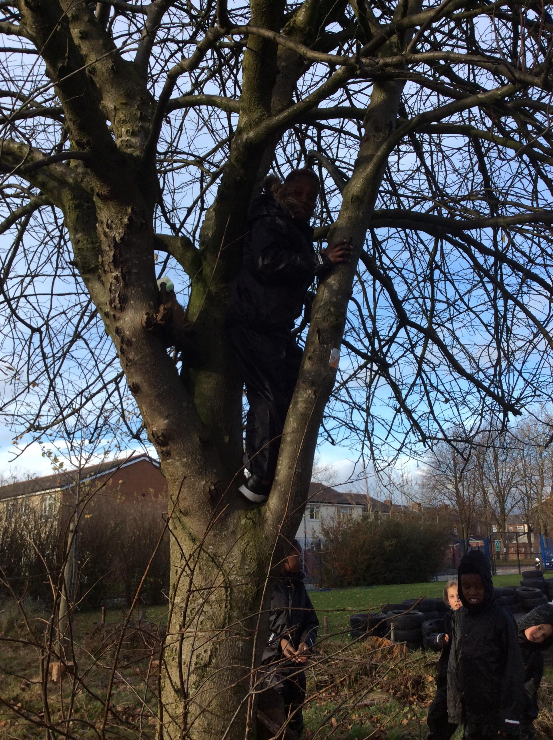 This week we had our first Forest School session outside in the Forest School area (in between the 2 playgrounds). We had a great time and already started developing a range of skills. We had to investigate, adapt and explore the area and how we could use the resources. We also had to develop our team work skills and physical skills. We climbed trees, built shelters, made dens in the bushes and a few us even got chance to use the saw.