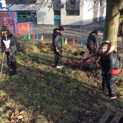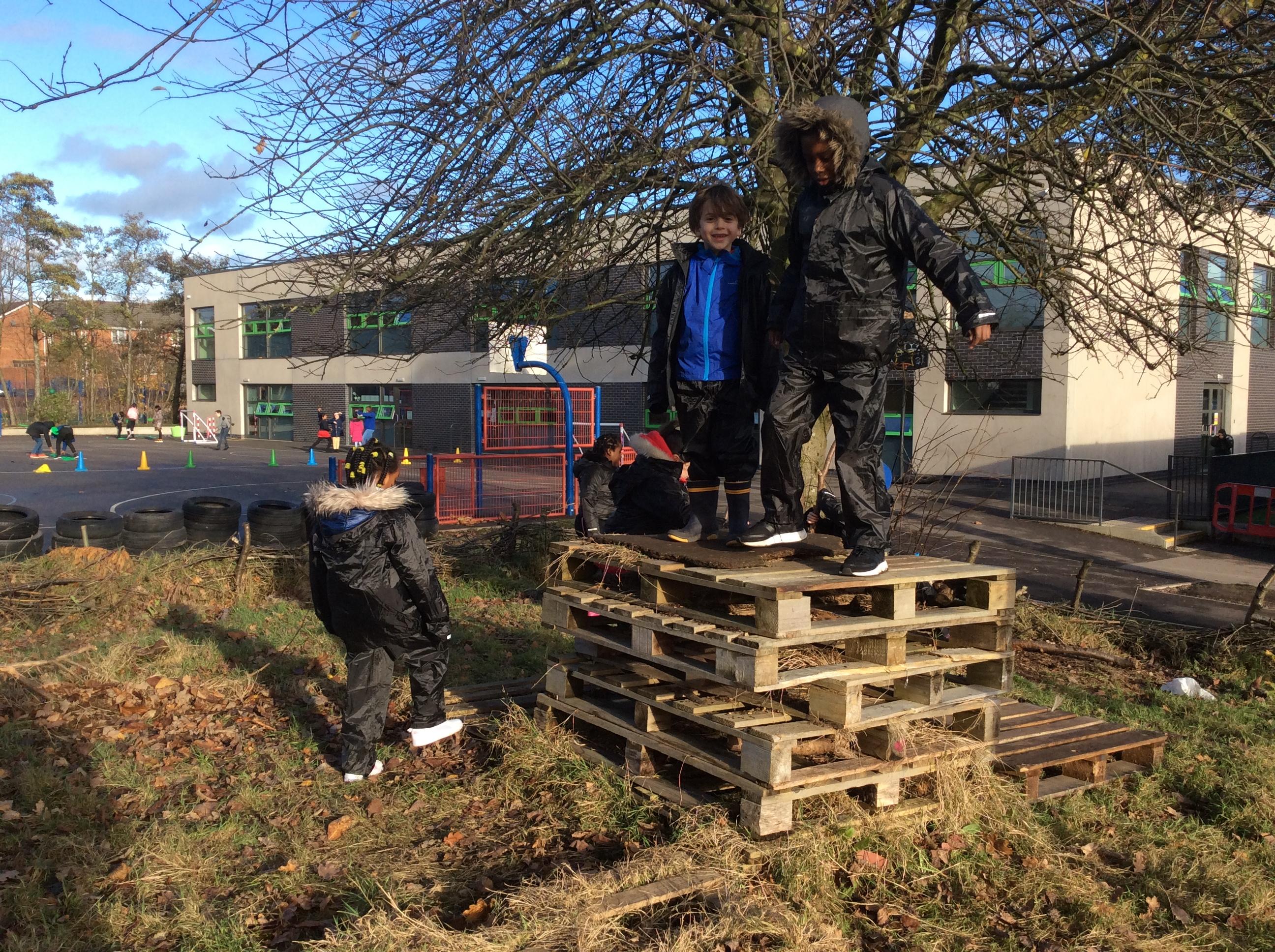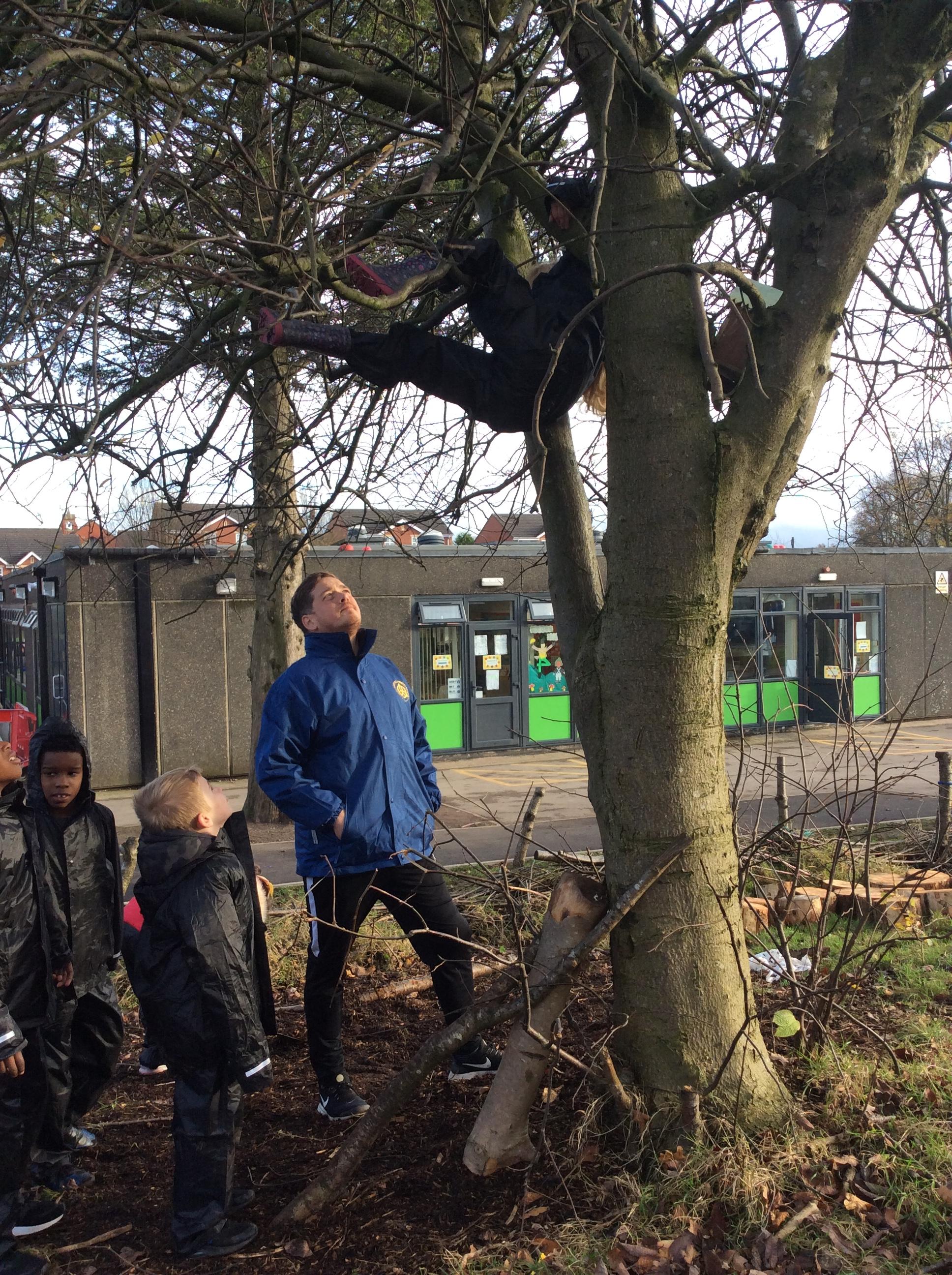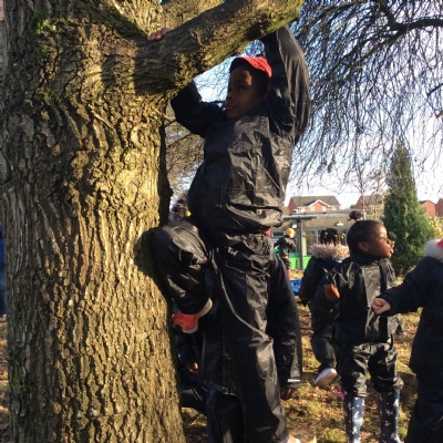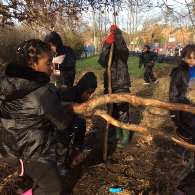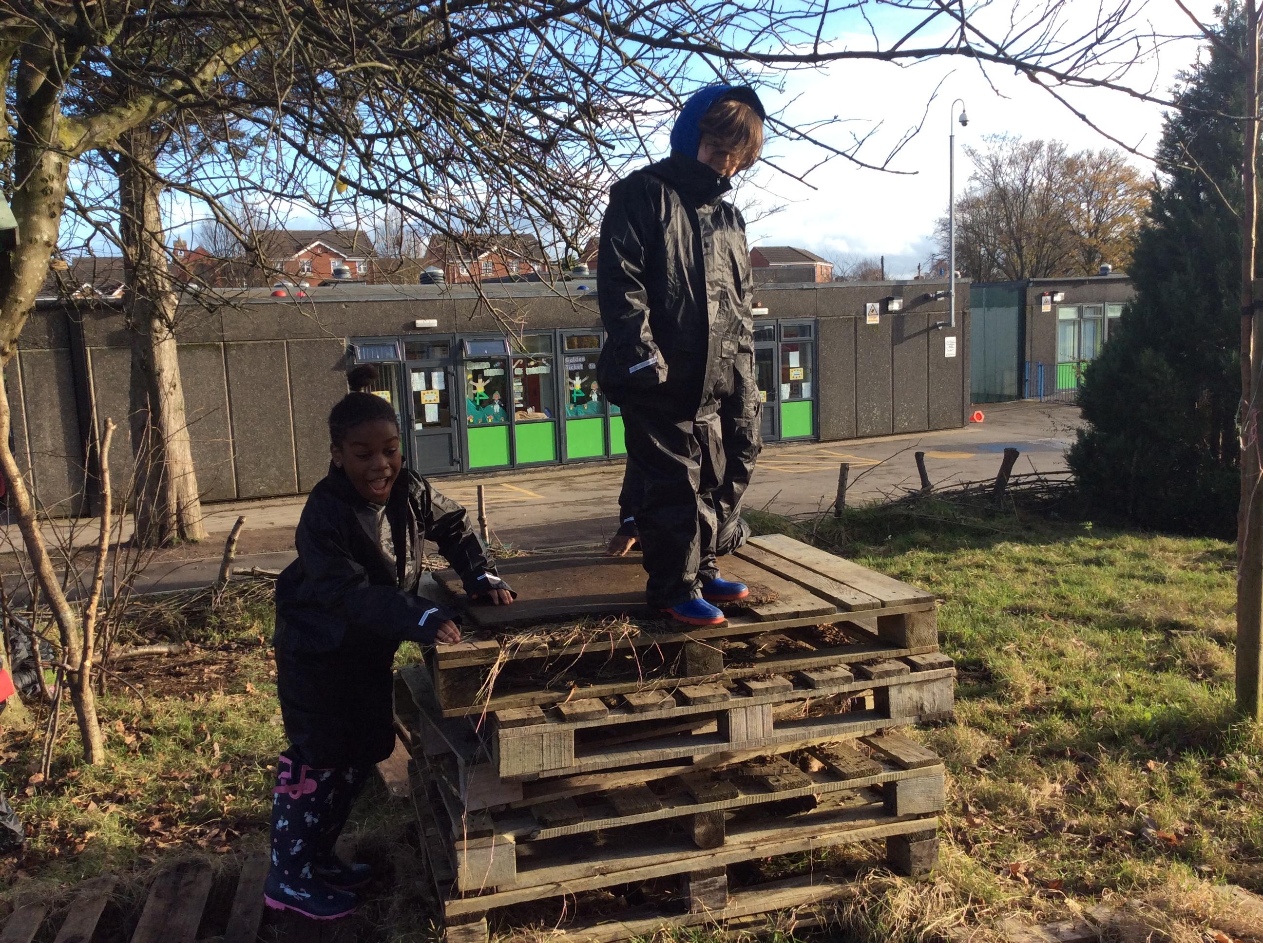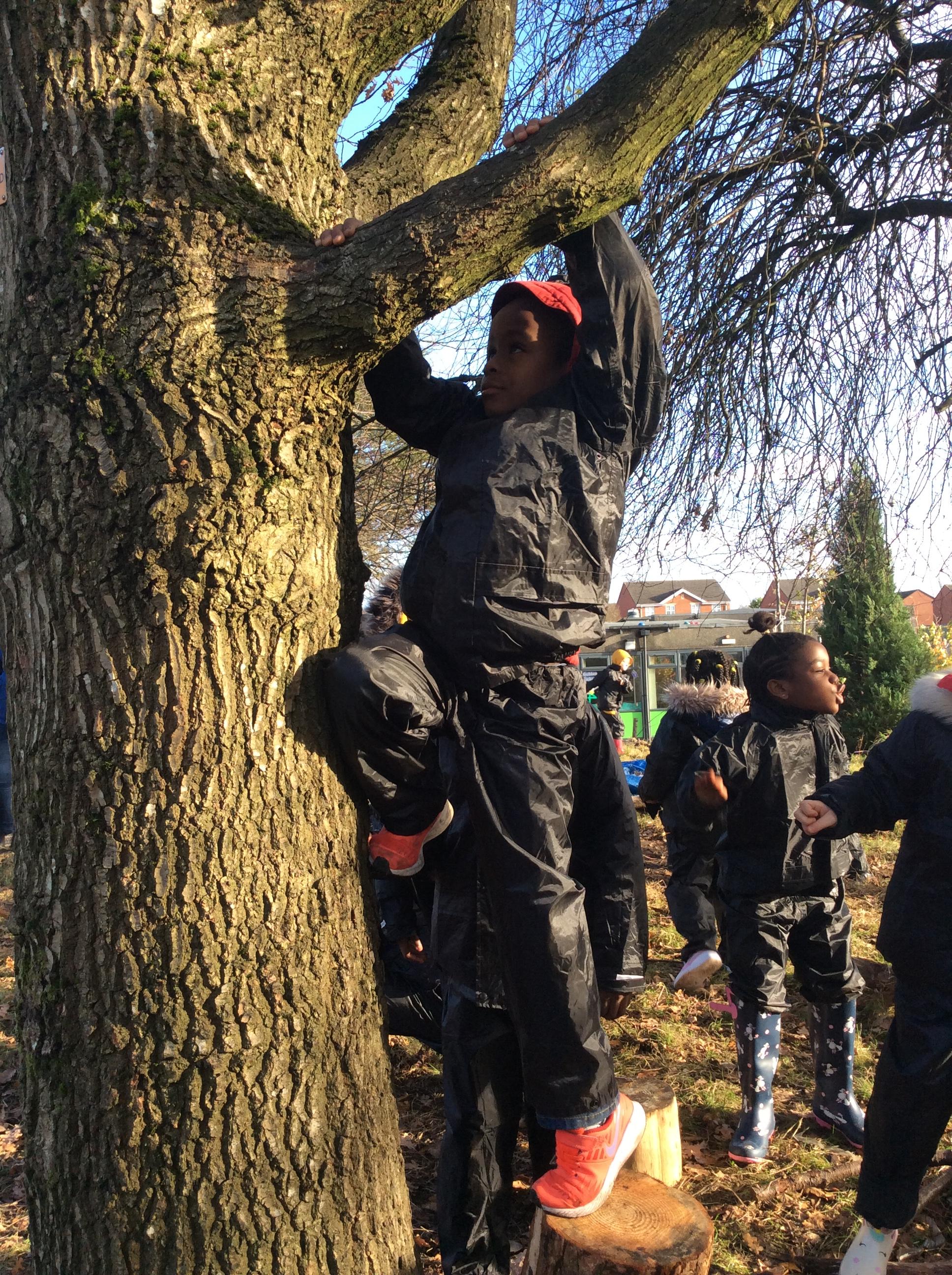 This week we had our first Forest School session outside in the Forest School area (in between the 2 playgrounds). We had a great time and already started developing a range of skills. We had to investigate, adapt and explore the area and how we could use the resources. We also had to develop our team work skills and physical skills. We climbed trees, built shelters, made dens in the bushes and a few us even got chance to use the saw.